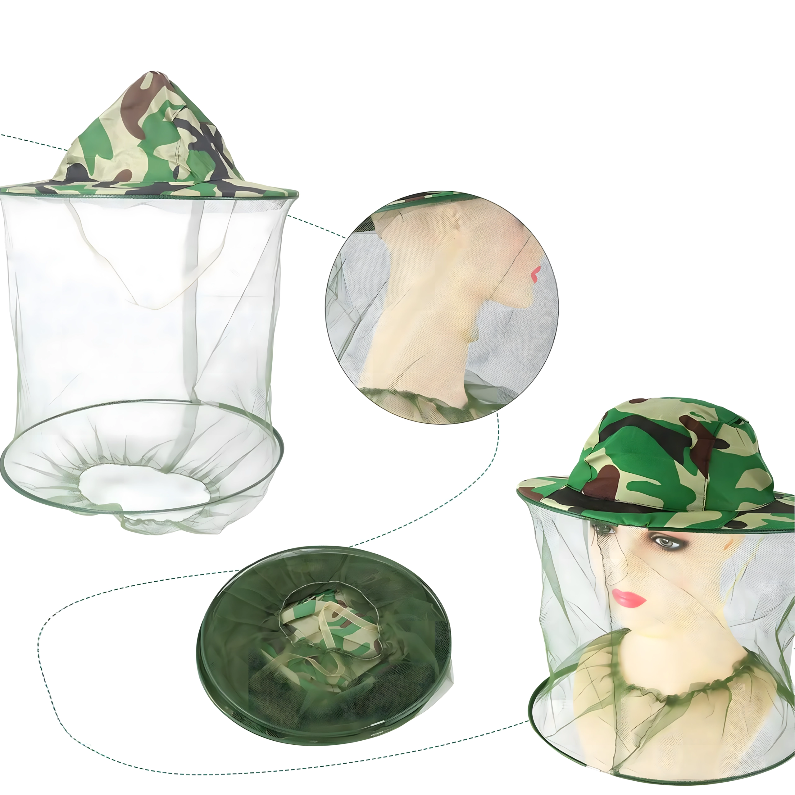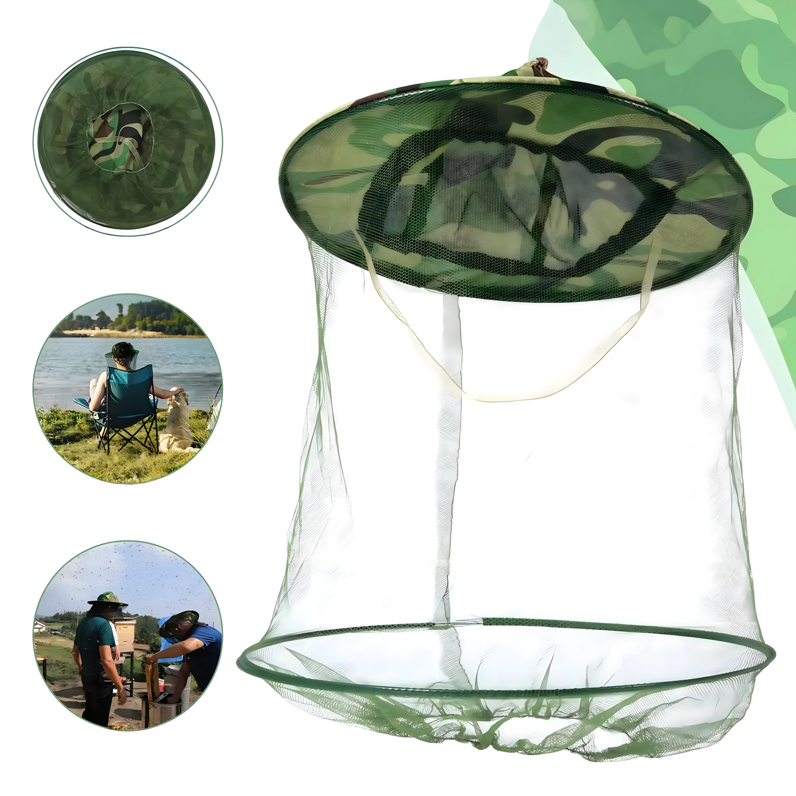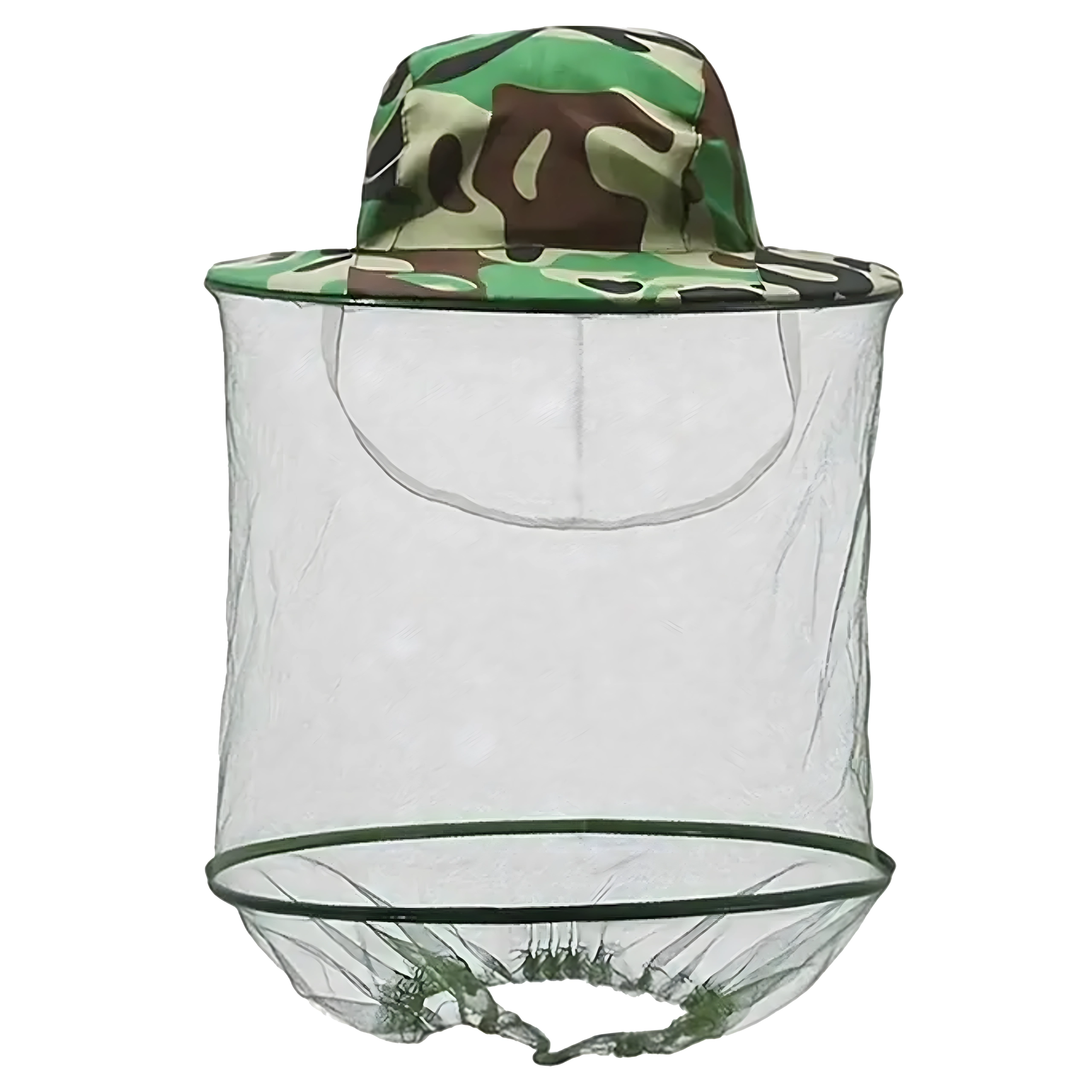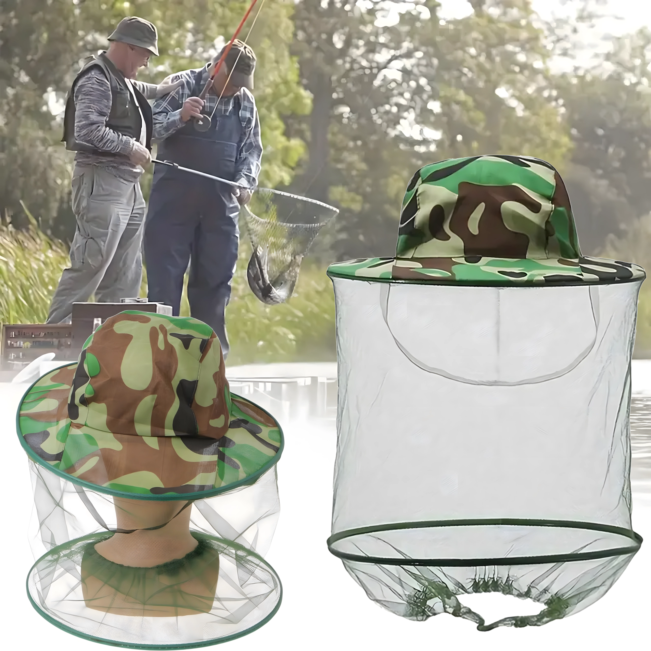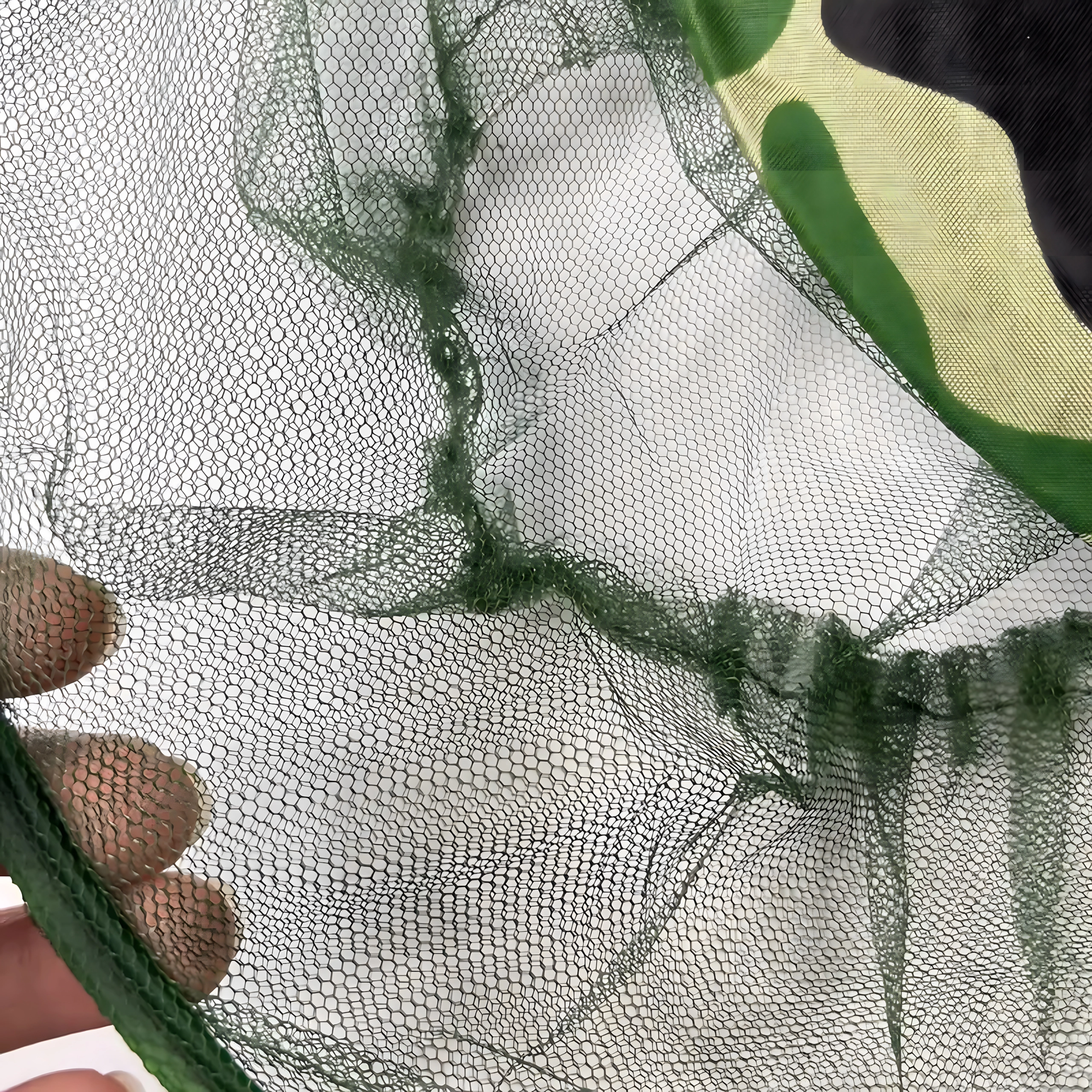 Širok krajček drži mrežo stran od obraza, kamuflažni vzorec pa je primeren za ribiče, lovce in outdoor navdušence.