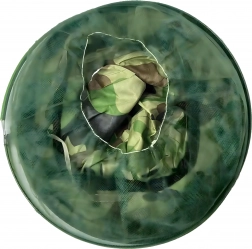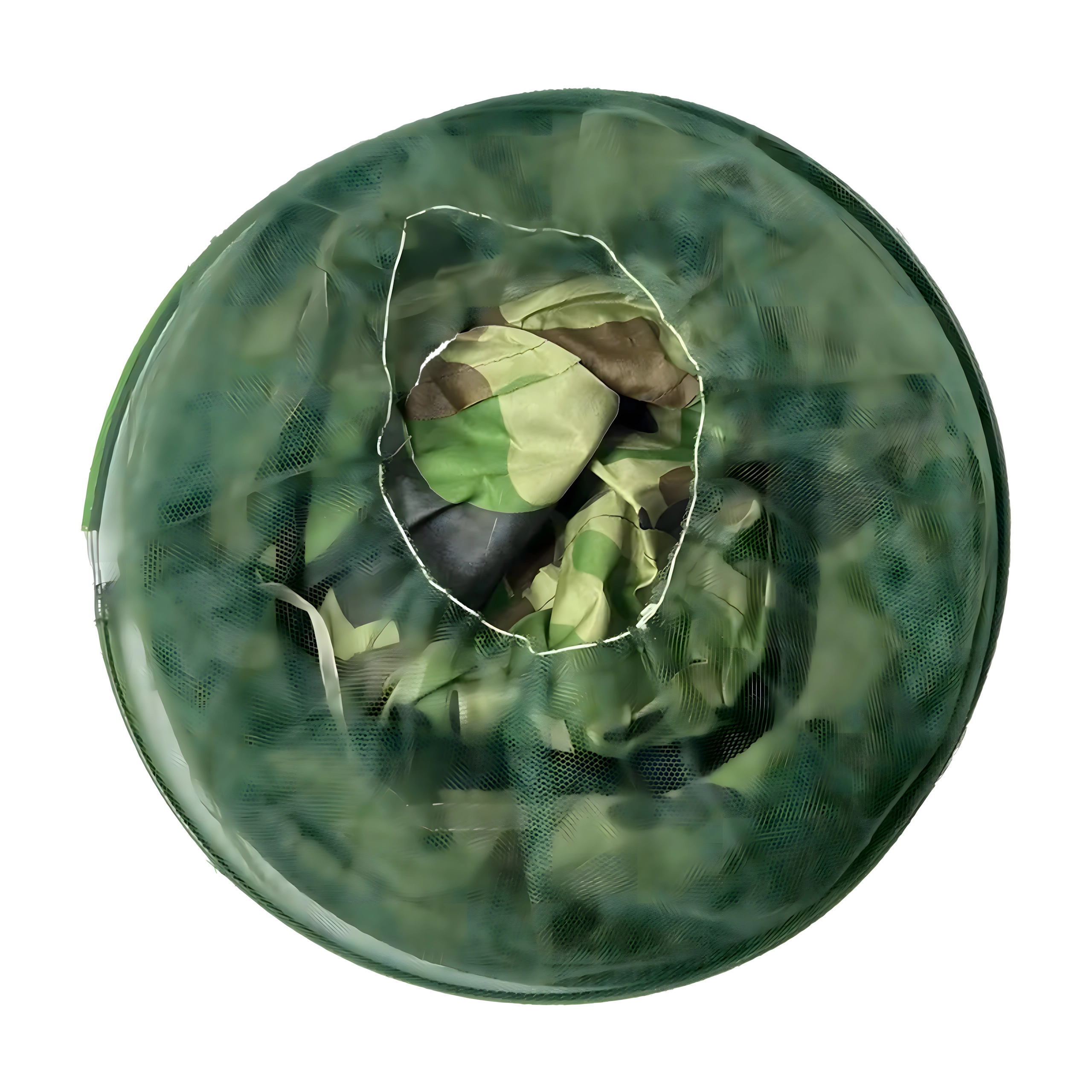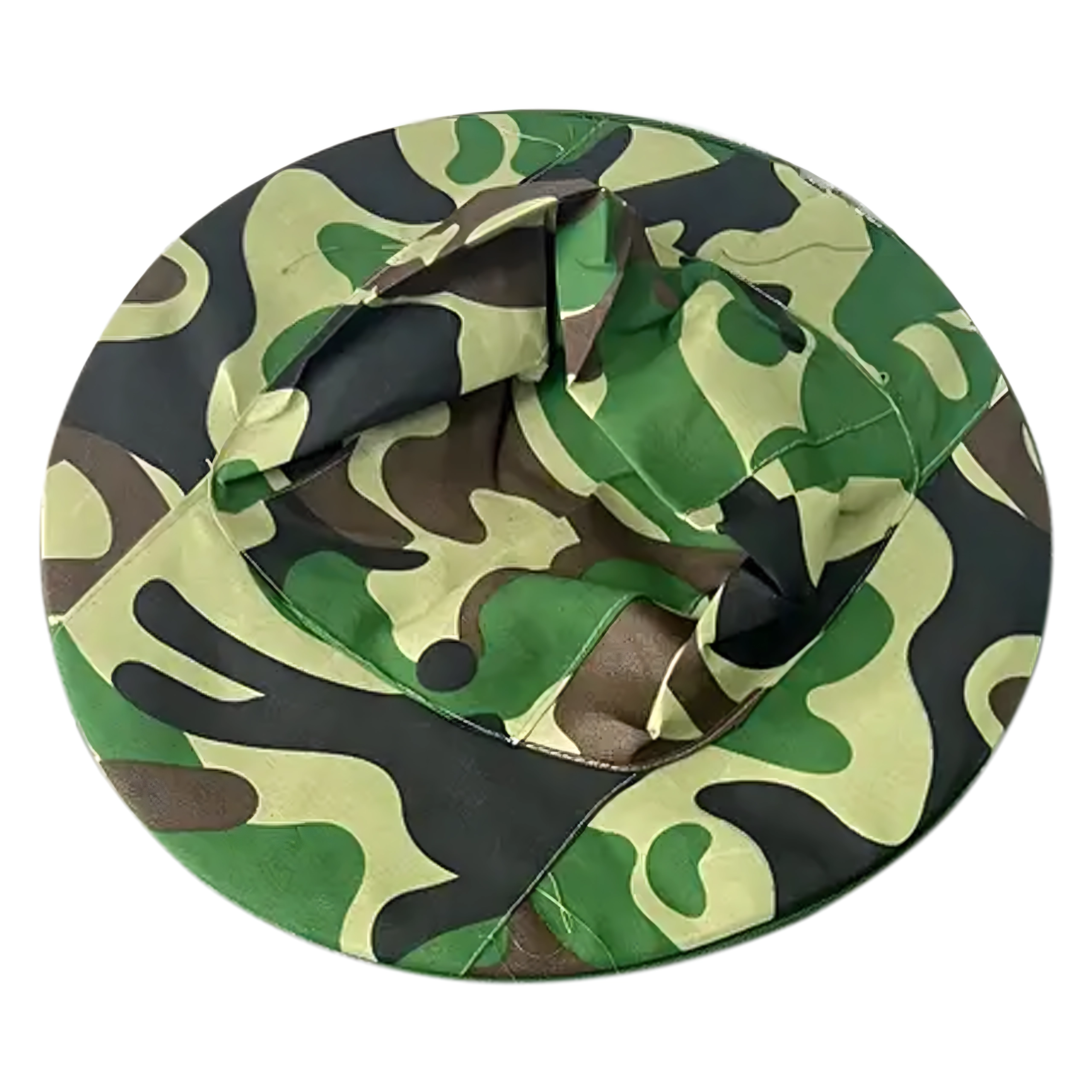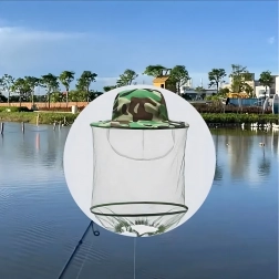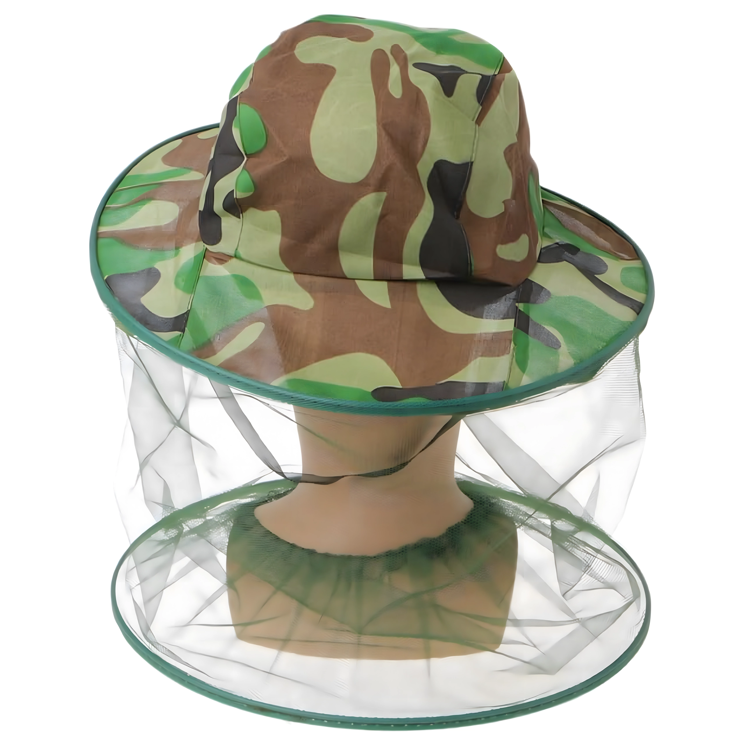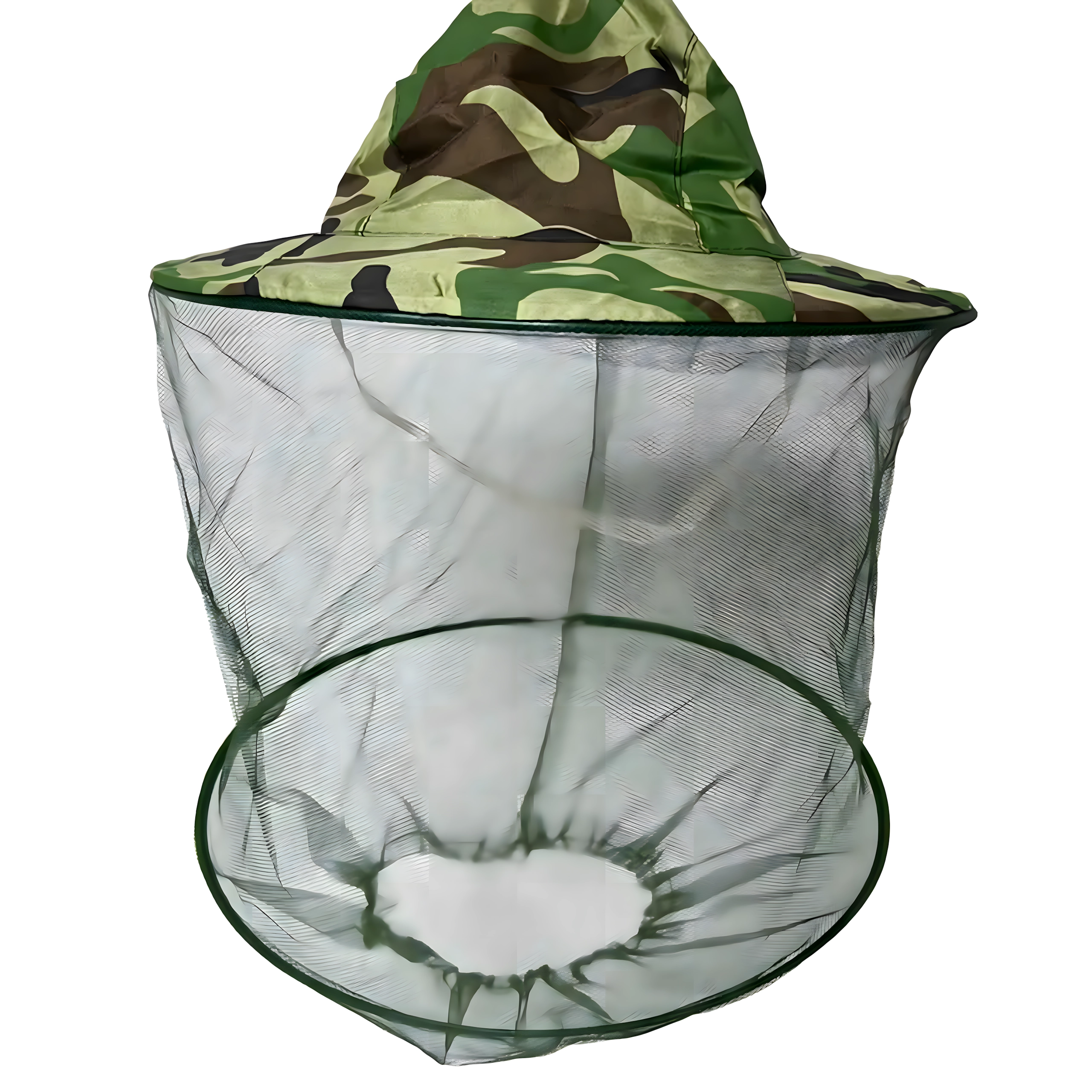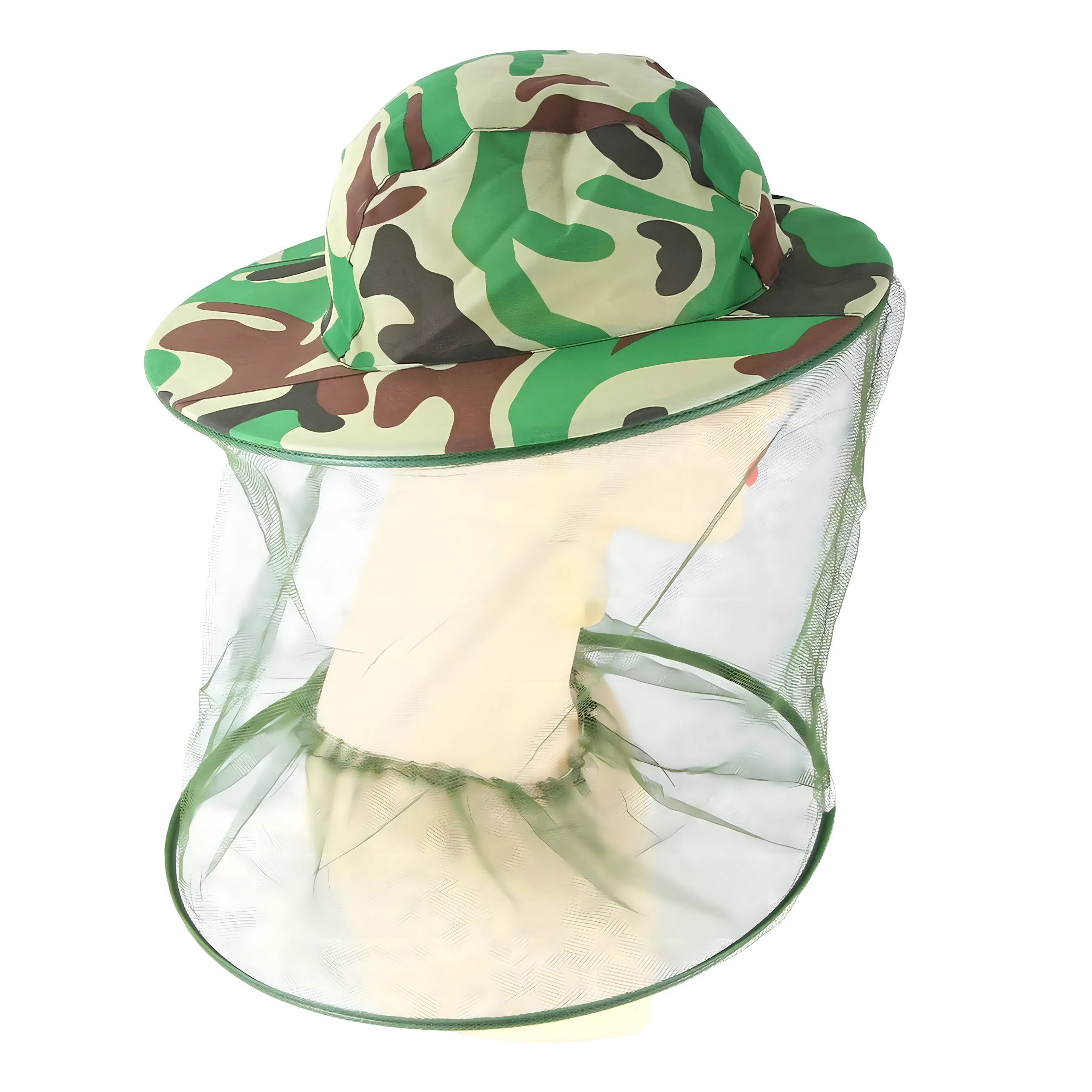 Širok krajček drži mrežo stran od obraza, kamuflažni vzorec pa je primeren za ribiče, lovce in outdoor navdušence.