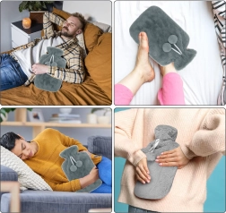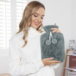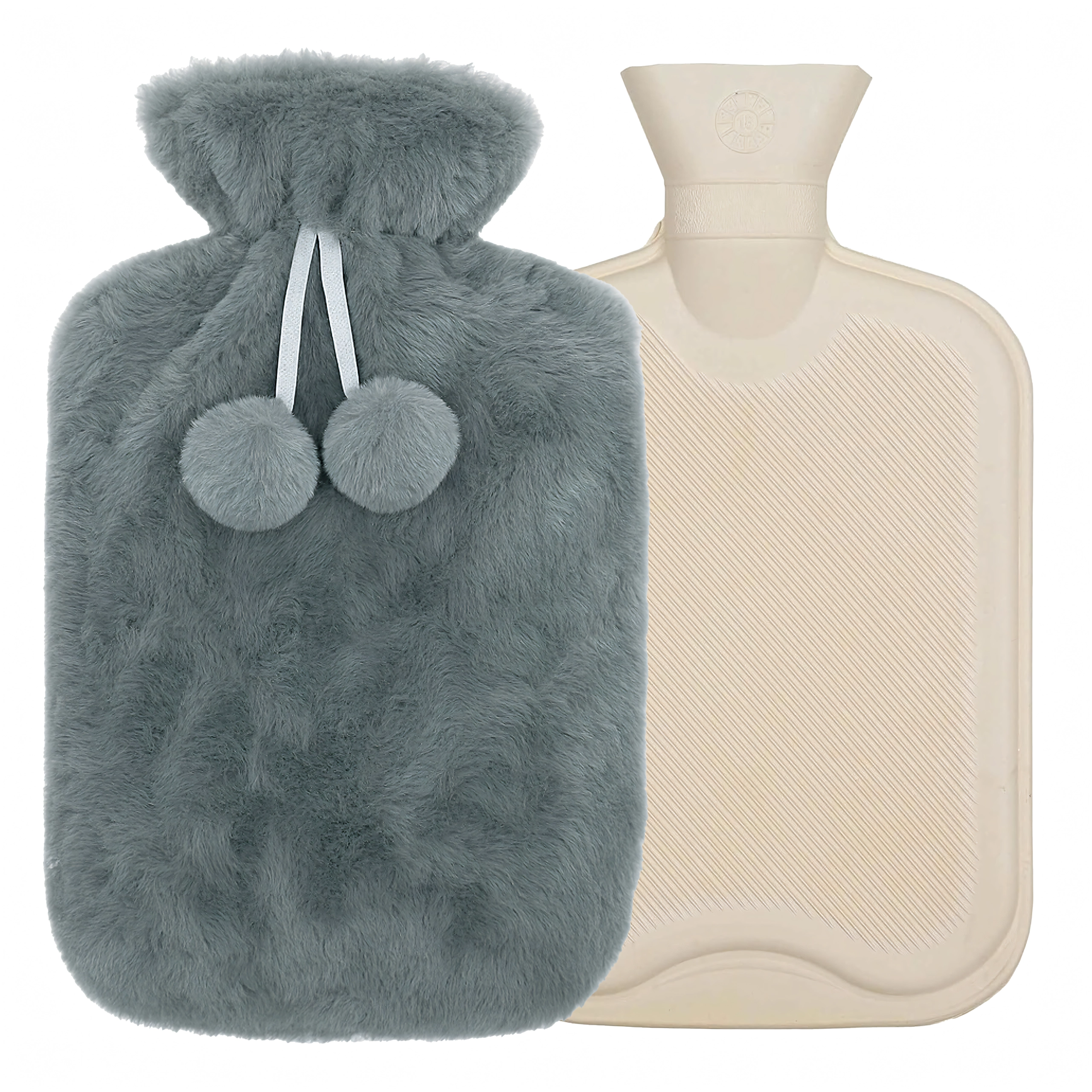 Praktičen prevlek z okrasnimi cofki zagotavlja boljšo izolacijo, čistočo in udobje pri stiku s telesom. Teksturirana gumijasta steklenica v notranjosti enakomerno razporeja toploto in zmanjšuje tveganje pregrevanja posameznih mest. Termofor je odličen za domačo sprostitev, pri menstrualnih bolečinah, mišičnih napetostih ter za ogrevanje v hladnem vremenu.