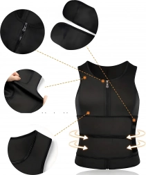 Ta moški kompresijski savna telovnik iz kakovostnega neoprena zviša telesno temperaturo med treningom, kar pospeši znojenje in učinkovito oblikuje pas. Zadrga po celotni dolžini olajša oblačenje, dve široki nastavljivi ježki pa omogočata natančno nastavitev stopnje stiska na trebuhu in v srednjem delu telesa.
