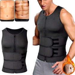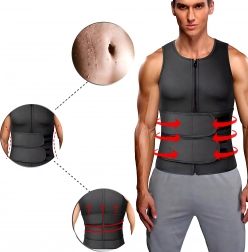 Ta moški kompresijski savna telovnik združuje elastičen material s praktično sprednjo zadrgo in dvojnimi zateznimi ježkastimi paščki. S povečanjem toplotnega učinka spodbuja intenzivnejše potenje in lahko podpira oblikovanje postave, medtem ko čvrsta konstrukcija zagotavlja stabilizacijo trupa in hrbta.