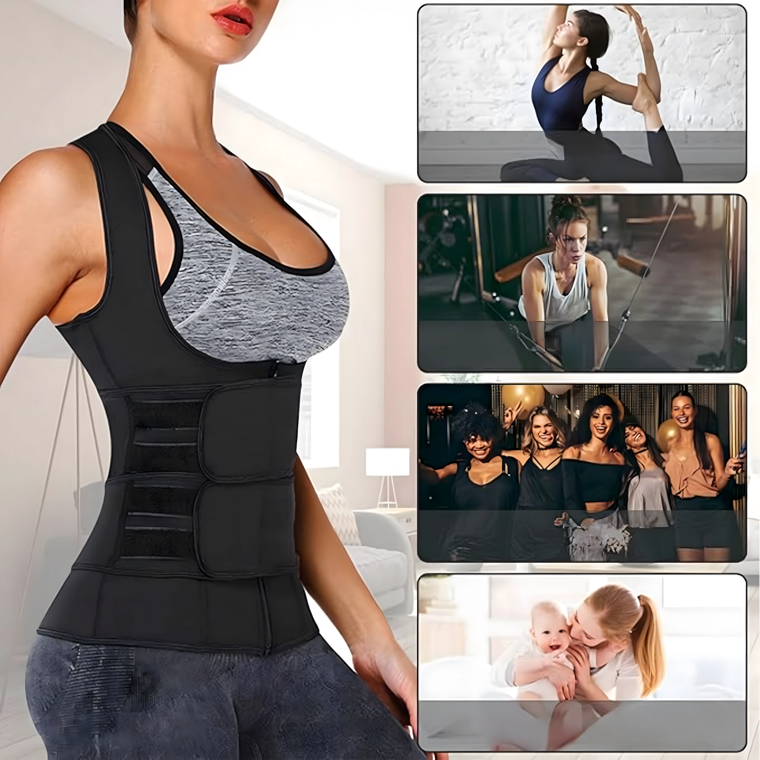 Ženski neoprenov fitnes jopič zvišuje telesno temperaturo med gibanjem ter tako spodbuja hitrejše potenje in učinkovito kurjenje maščob. Zahvaljujoč elastičnemu materialu se odlično prilagodi postavi, utrdi srednji del telesa in pomaga oblikovati vitkejšo silhueto brez omejevanja obsega gibanja.