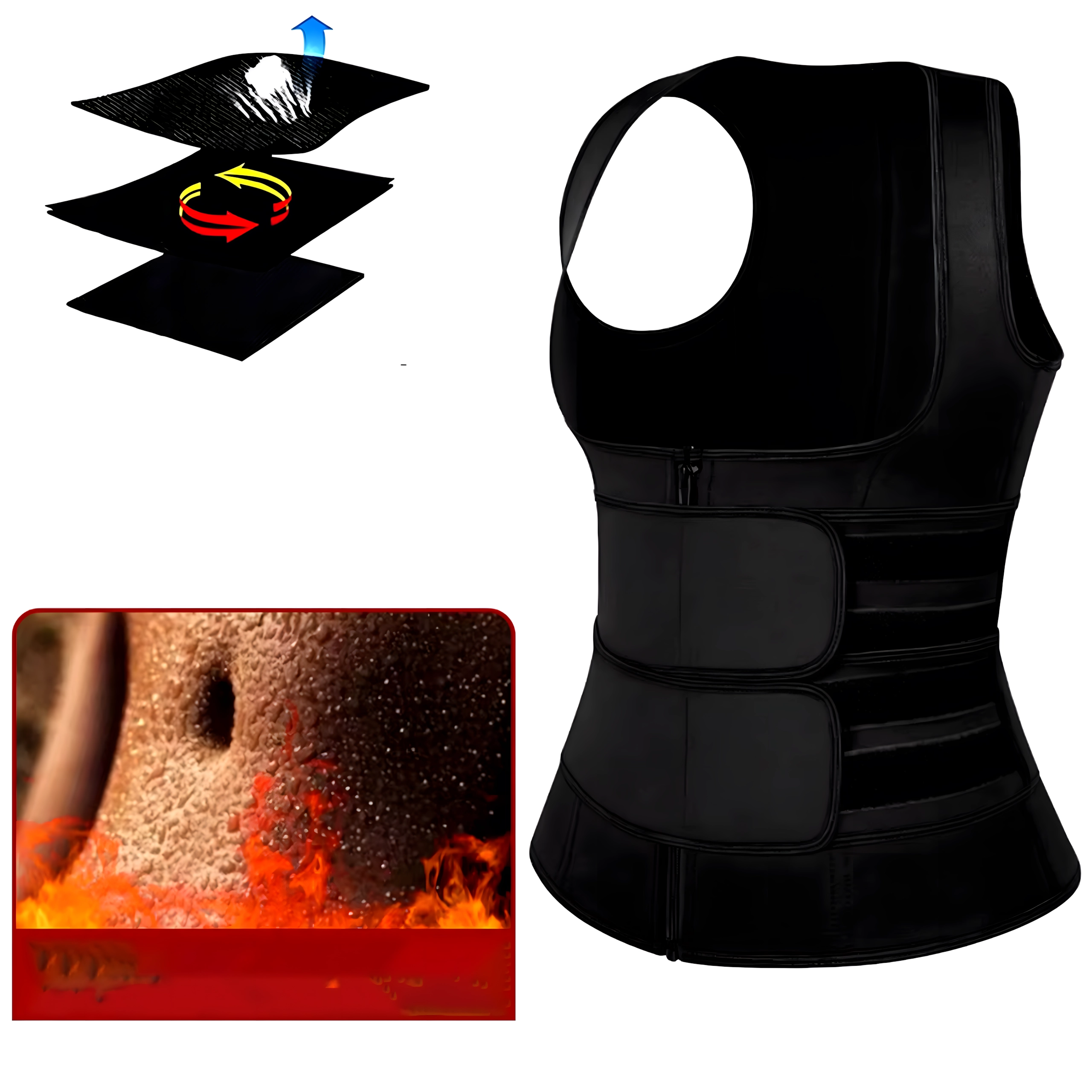 Povišana temperatura med vadbo spodbuja potenje ter pomaga učinkoviteje porabljati kalorije in zmanjševati maščobo na predelu trebuha in pasu.