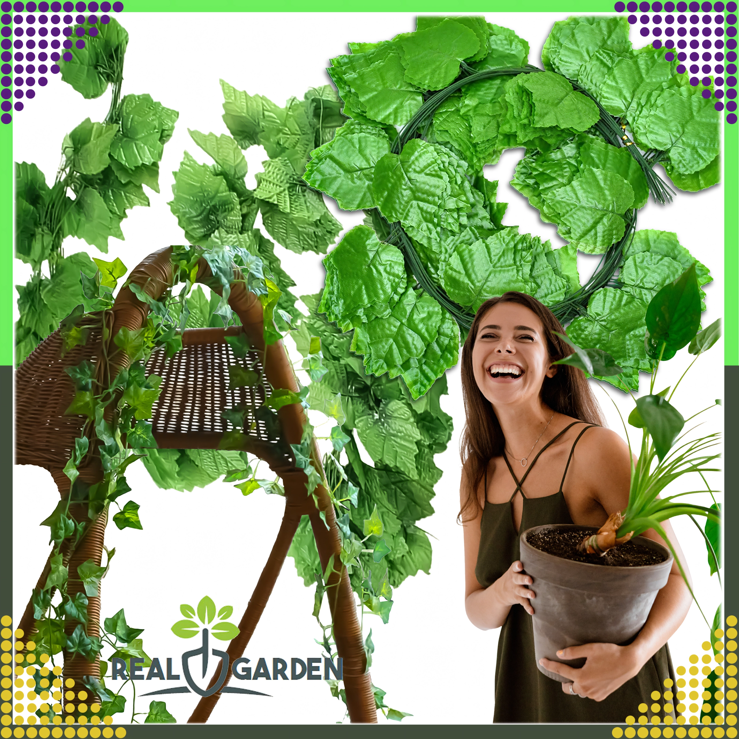 Ustvarite doma in na prostem zeleno vzdušje brez vzdrževanja s setom 12 kosov umetnega bršljana. Vsak pramen meri 2,3 m, skupaj pa dobite 27,6 m dekorativne girlande za stene, balkone, ograje ali za aranžmaje v cvetličnih dekoracijah in venčkih. Deluje naravno, je enostavno kombinirati in je primeren za notranjo in zunanjo uporabo.