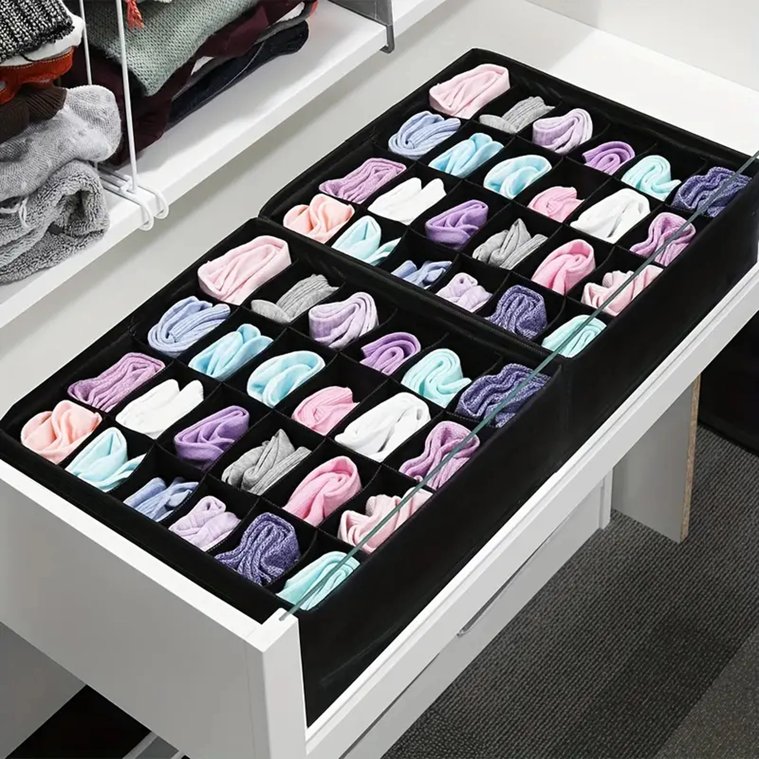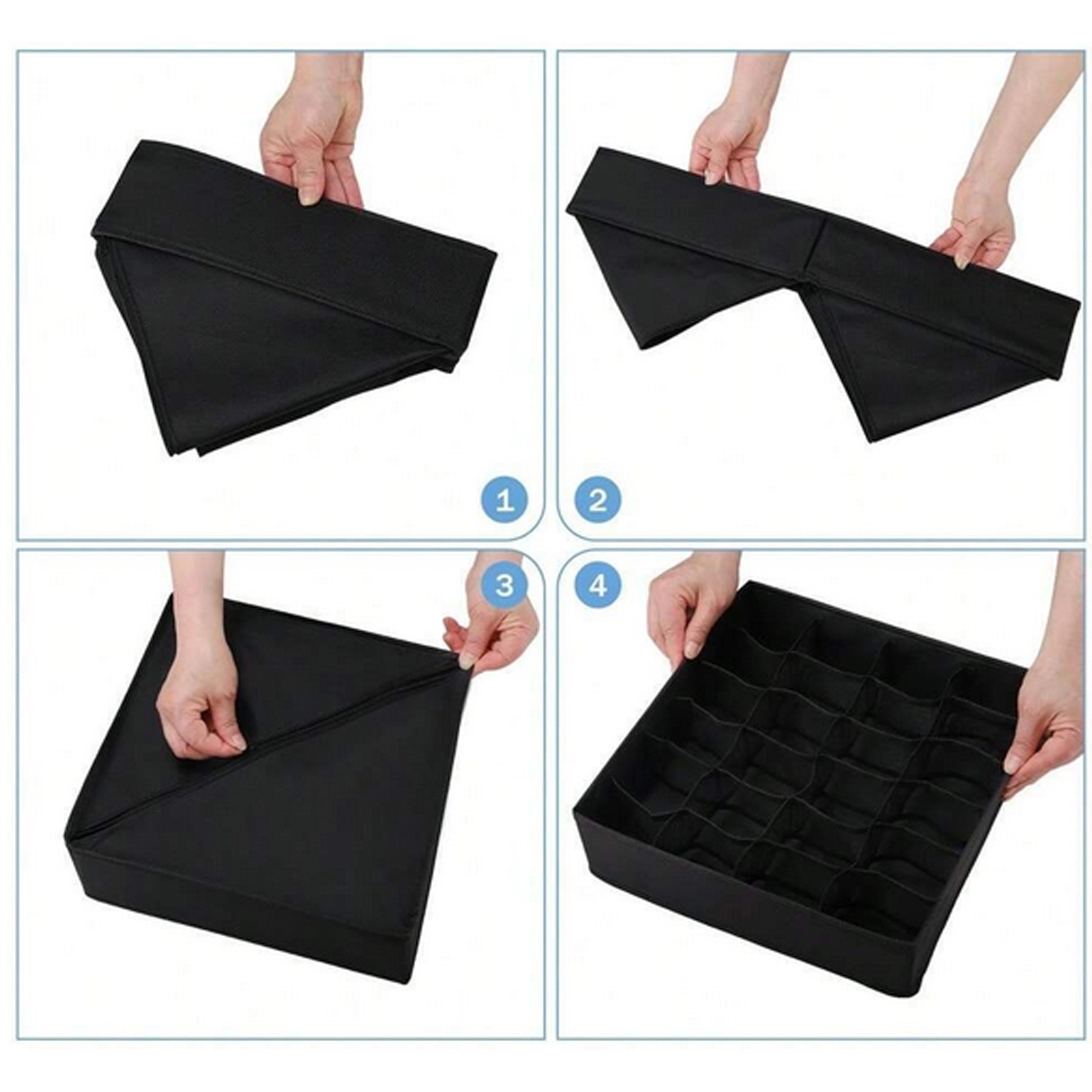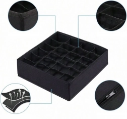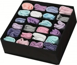 Mere 32 × 32 × 10 cm se prilegajo večini običajnih predalov in odprtih polic. Organizator je odlična izbira za nogavice, hlačke, nedrčke, hlačne nogavice, kravate in dodatke. Montaža je hitra in preprosta – vse je pripravljeno v nekaj sekundah.