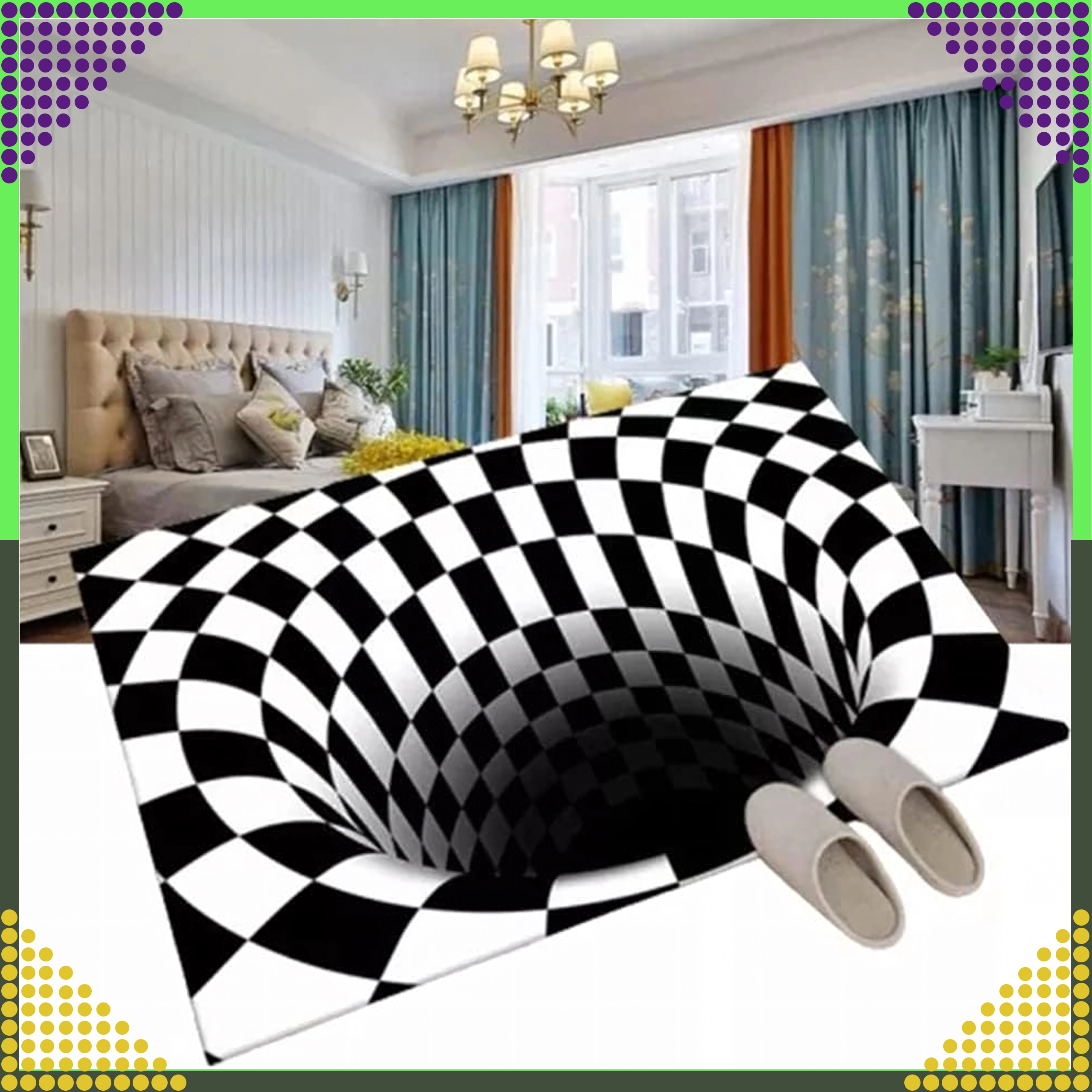 - Optična 3D iluzija – »Bela luknja« (črno-bela šahovnica z vrtincem)