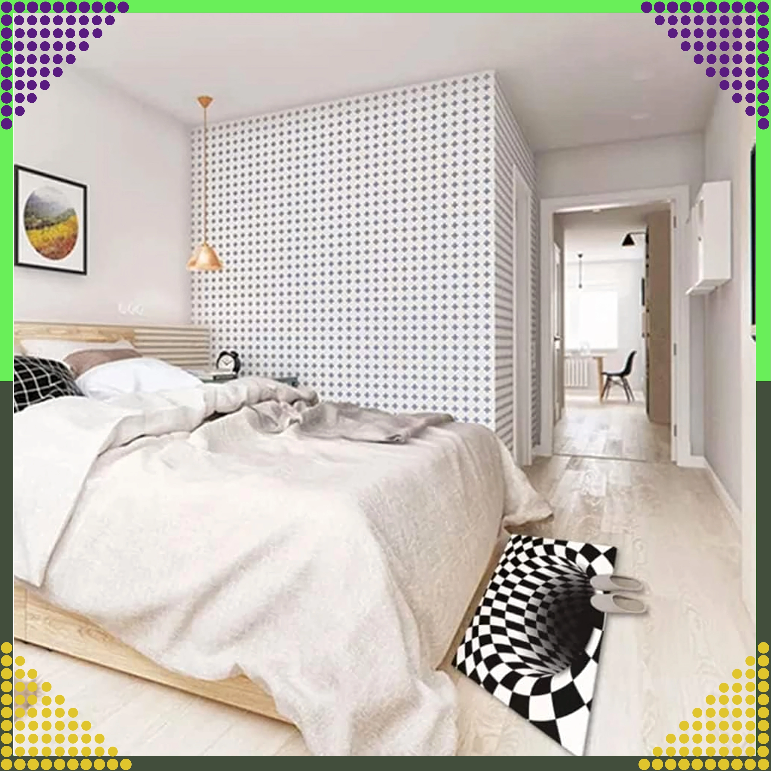 Optična iluzija »bele luknje« ustvarja globino in vašemu prostoru doda drzen oblikovalski poudarek.