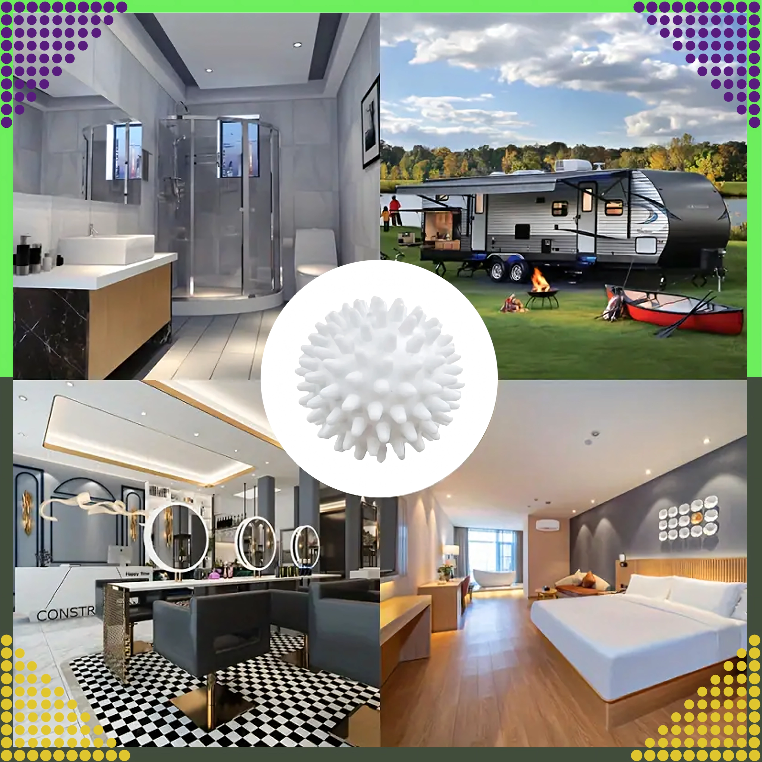 Žogice z nežnimi izboklinami pomagajo pri sproščanju dlačic, las in muck iz tekstila ter hkrati zmanjšujejo mečkanje. So večkrat uporabne, lahke in trpežne – odlična izbira za gospodinjstva, ki želijo prihraniti čas, energijo in denar.