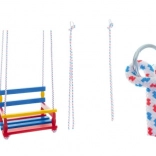 Stilska barvita lesena gugalnica za otroke od 3 let prinaša veliko zabave doma in na vrtu. Ponuja stabilno in varno izvedbo, udoben sedež 38 × 30 cm ter nosilnost 80 kg.