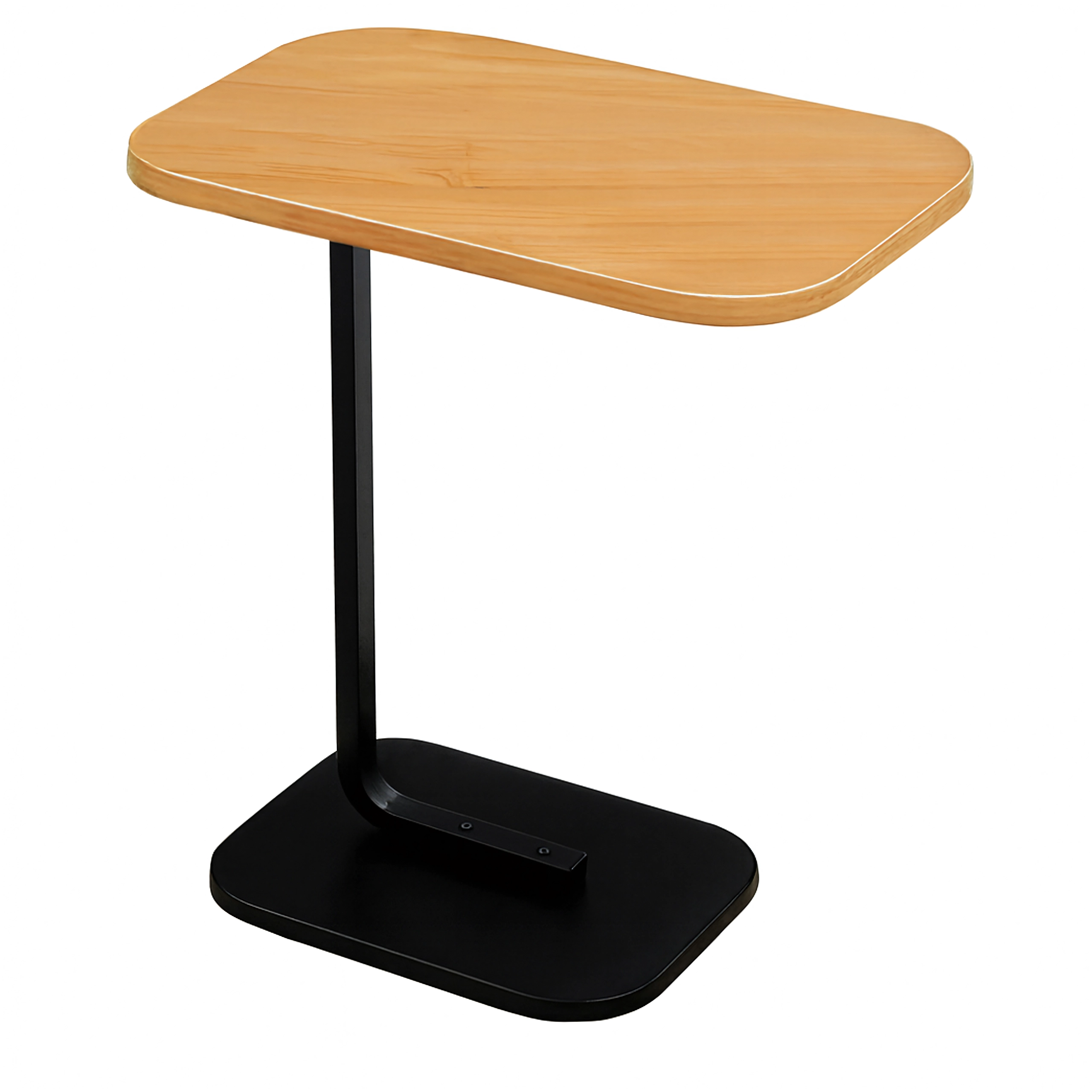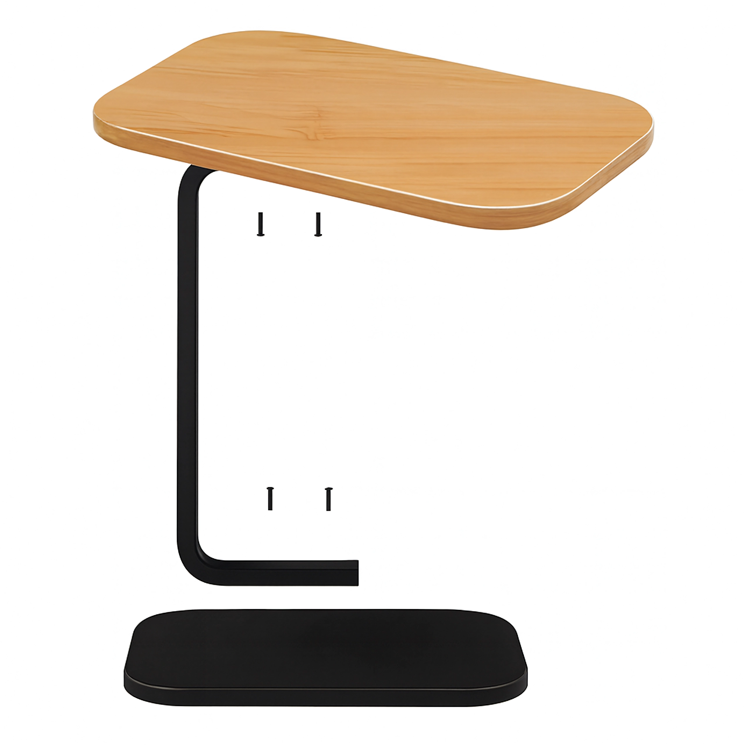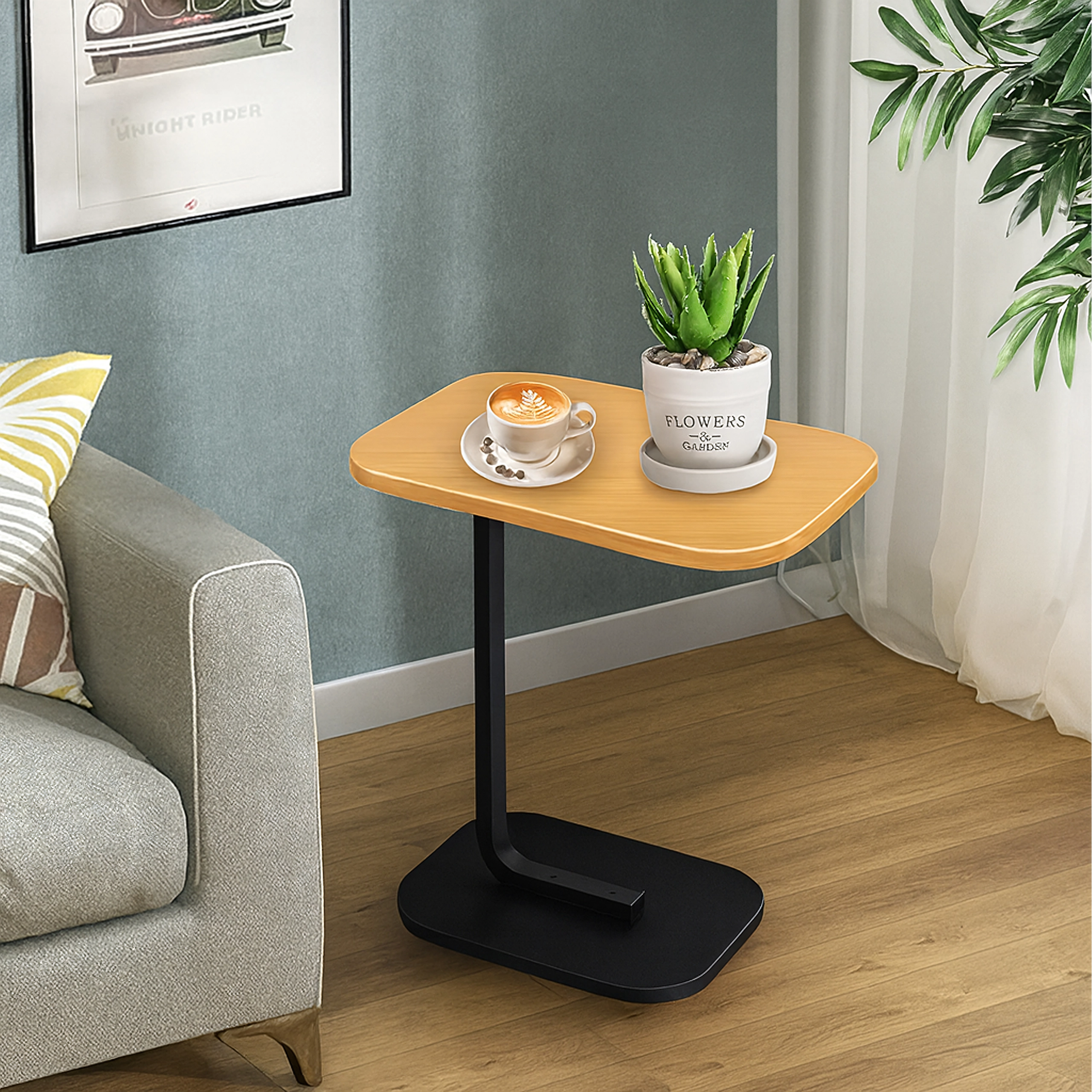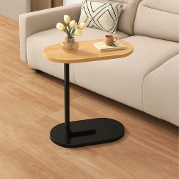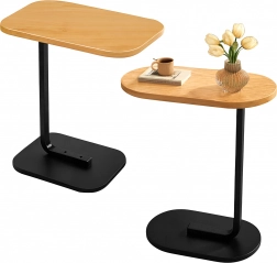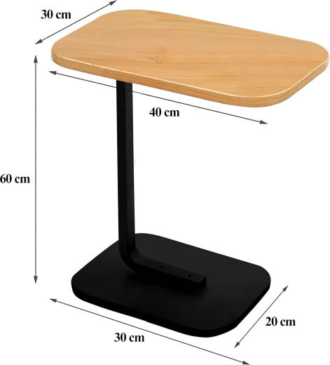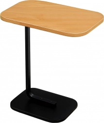 Elegantna mizica v obliki črke C združuje ploščo v svetlem lesnem dekorju z vzdržljivo črno kovinsko konstrukcijo. Idealna kot stranska mizica ob sedežni garnituri, nočna omarica ob postelji ali mobilna osnova za delo s prenosnikom. Zaradi ozke baze jo zlahka potisnete pod pohištvo in prihranite prostor.
