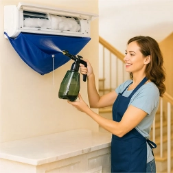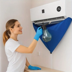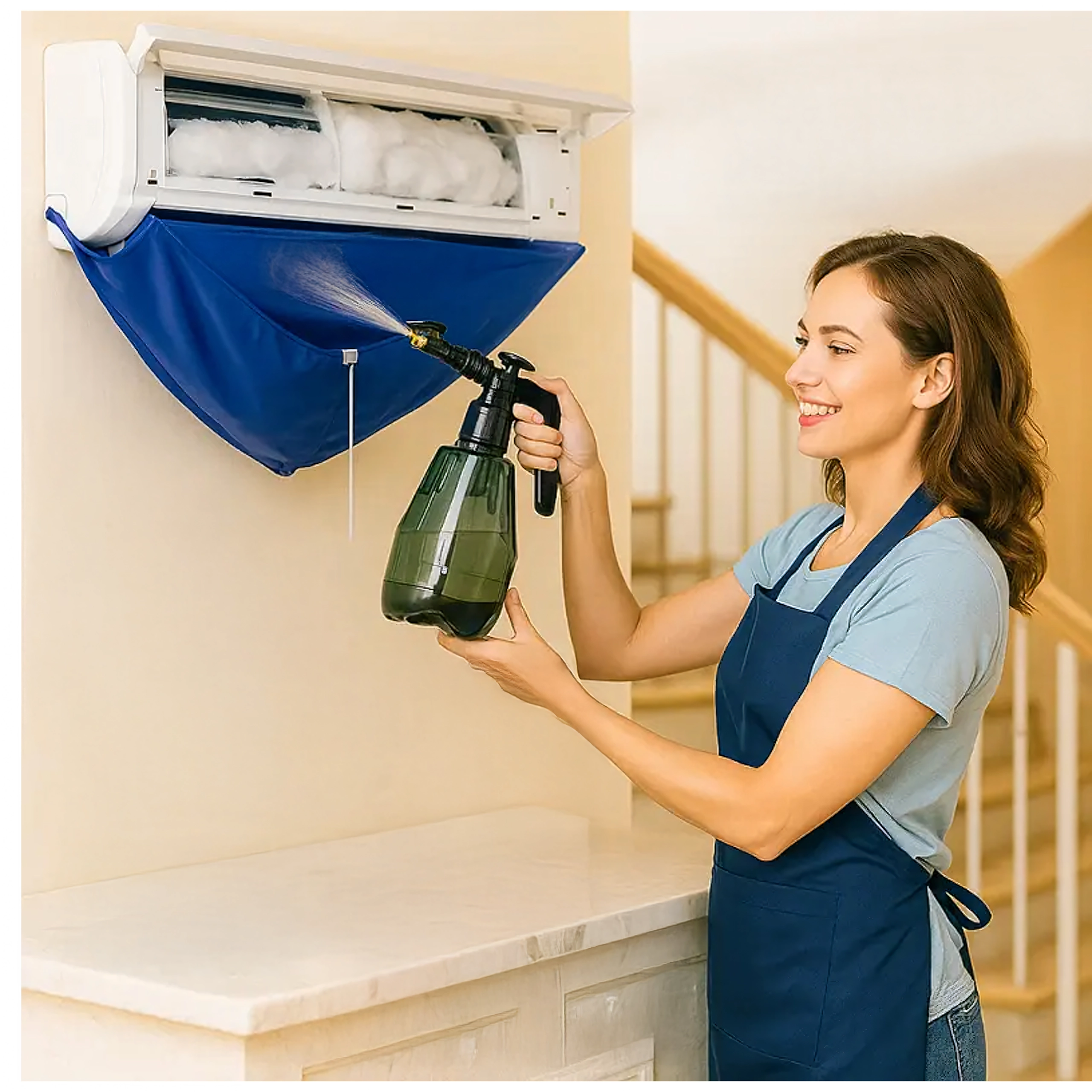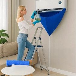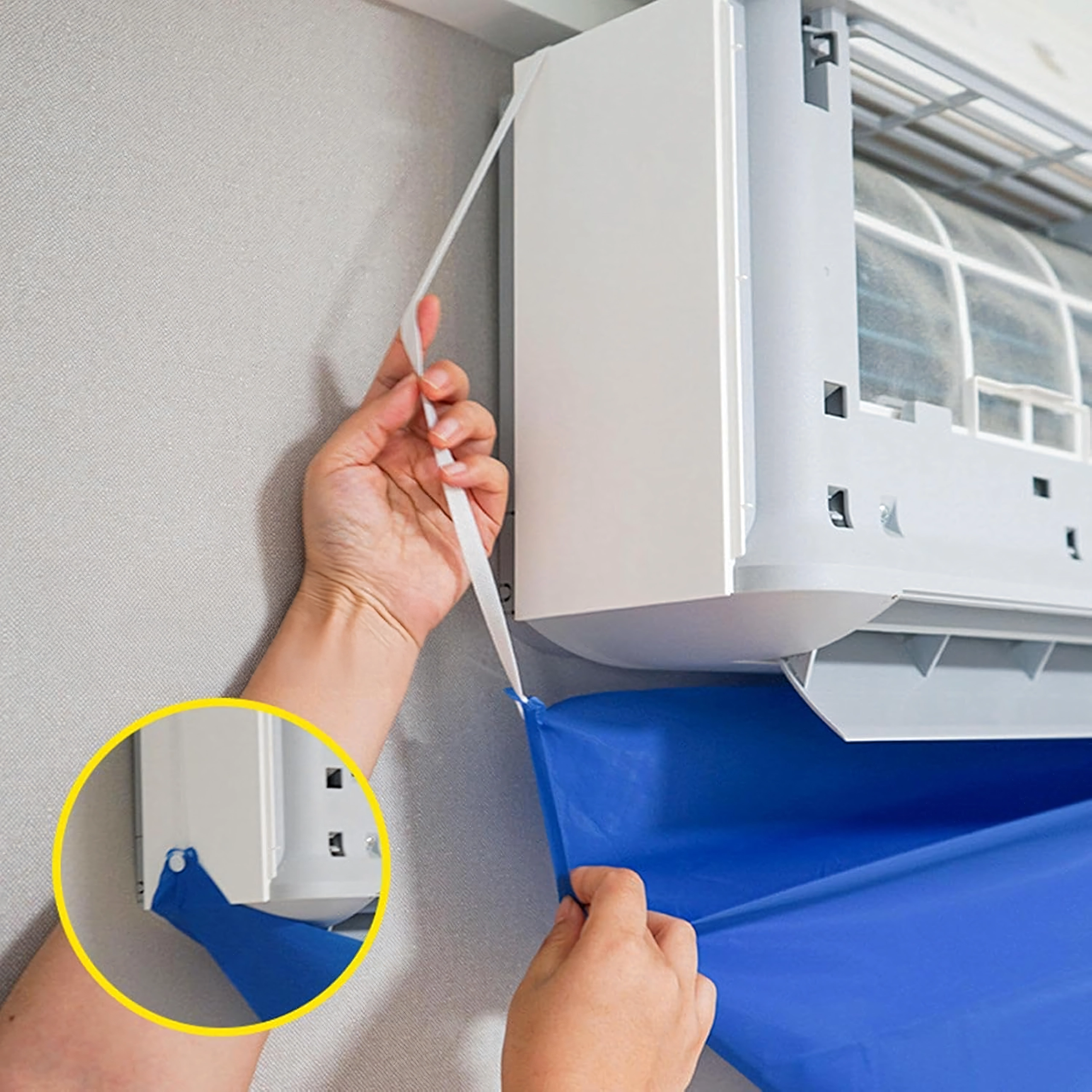 Olajšajte si vzdrževanje stenskih klimatskih naprav z vodoodporno pokrivno vrečo, ki zanesljivo ujame umazano vodo, čistilno raztopino in nečistoče. Integrirana 2 m odtočna cev varno odvaja tekočino v vedro ali odtok, elastični zatezni trak pa pomaga zatesniti prostor okoli enote za čisto in hitro delo.
