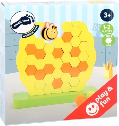 Motorična balansirna igrača čebelji panj Small Foot spremeni vsak dan v ves vesel izziv. Čebelica sedi na zgornjem robu panja, igralci pa izmenično vlečejo lesene celice tako, da ohranjajo ravnotežje. Kdo bo čebelico najdlje zadržal v panju, zmaga!
