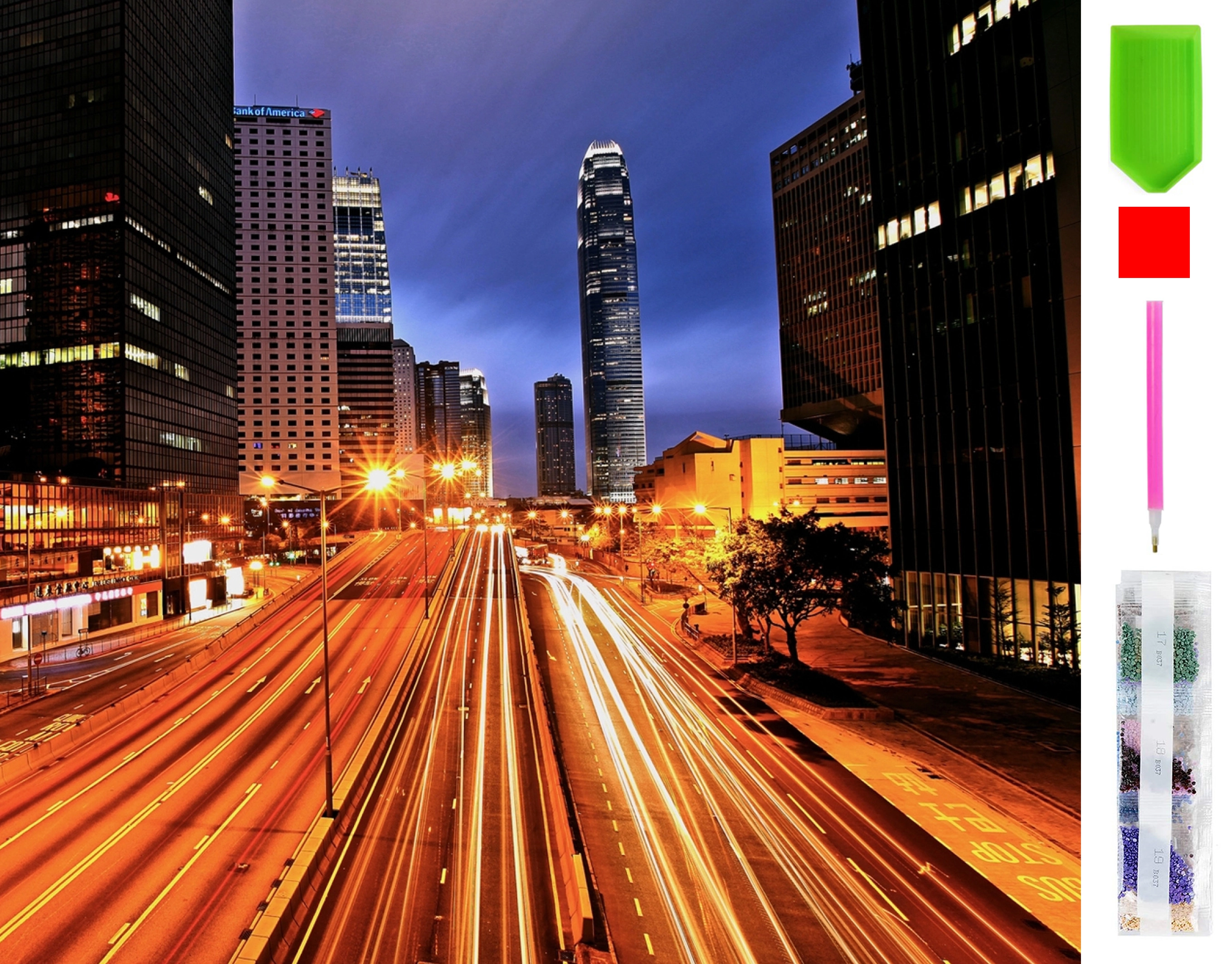 Motiv mesto ponoči prinaša impresiven učinek svetlobe in senc, ki se čudovito sveti na dnevni in umetni svetlobi. Končana slika je lahko izvirna dekoracija doma ali darilo za ljubitelje ročnih del vseh starosti.
