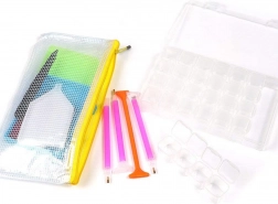 Organizator s predelki, nalepke za označevanje in prozorna mrežasta torbica z zadrgo ohranijo vse barve in orodja odlično urejene doma in na poti. Komplet je primeren za začetnike in napredne ter predstavlja relaksacijsko, kreativno dejavnost za otroke in odrasle.