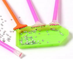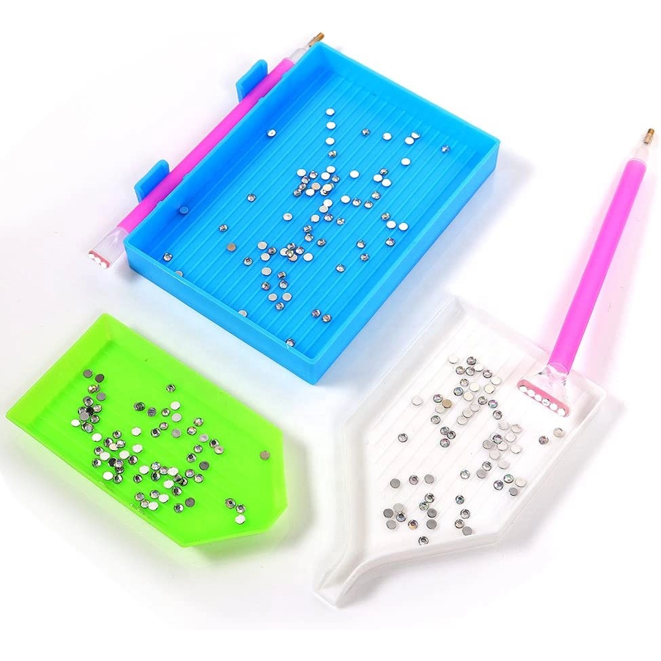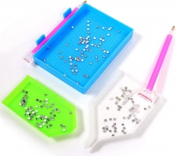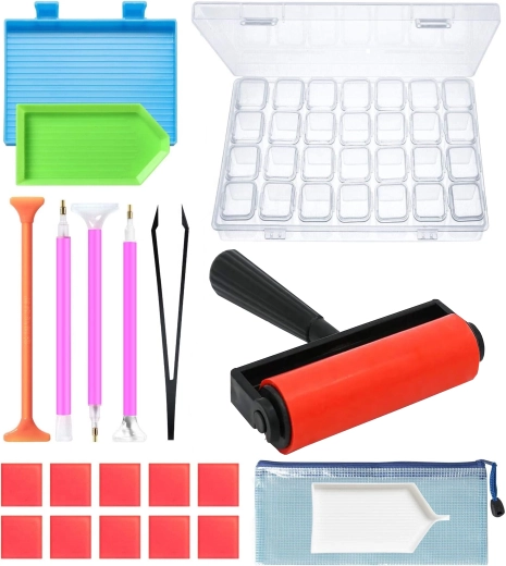 Ustvarjajte bleščeče slike s kompletnim setom orodij za diamond painting. Zahvaljujoč natančnemu valjčku dosežete enakomeren oprijem in gladko površino brez izstopajočih kamenčkov. Pladnji z žlebovi in aplikatorji z več konicami pospešijo delo in izboljšajo natančnost postavitve.