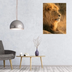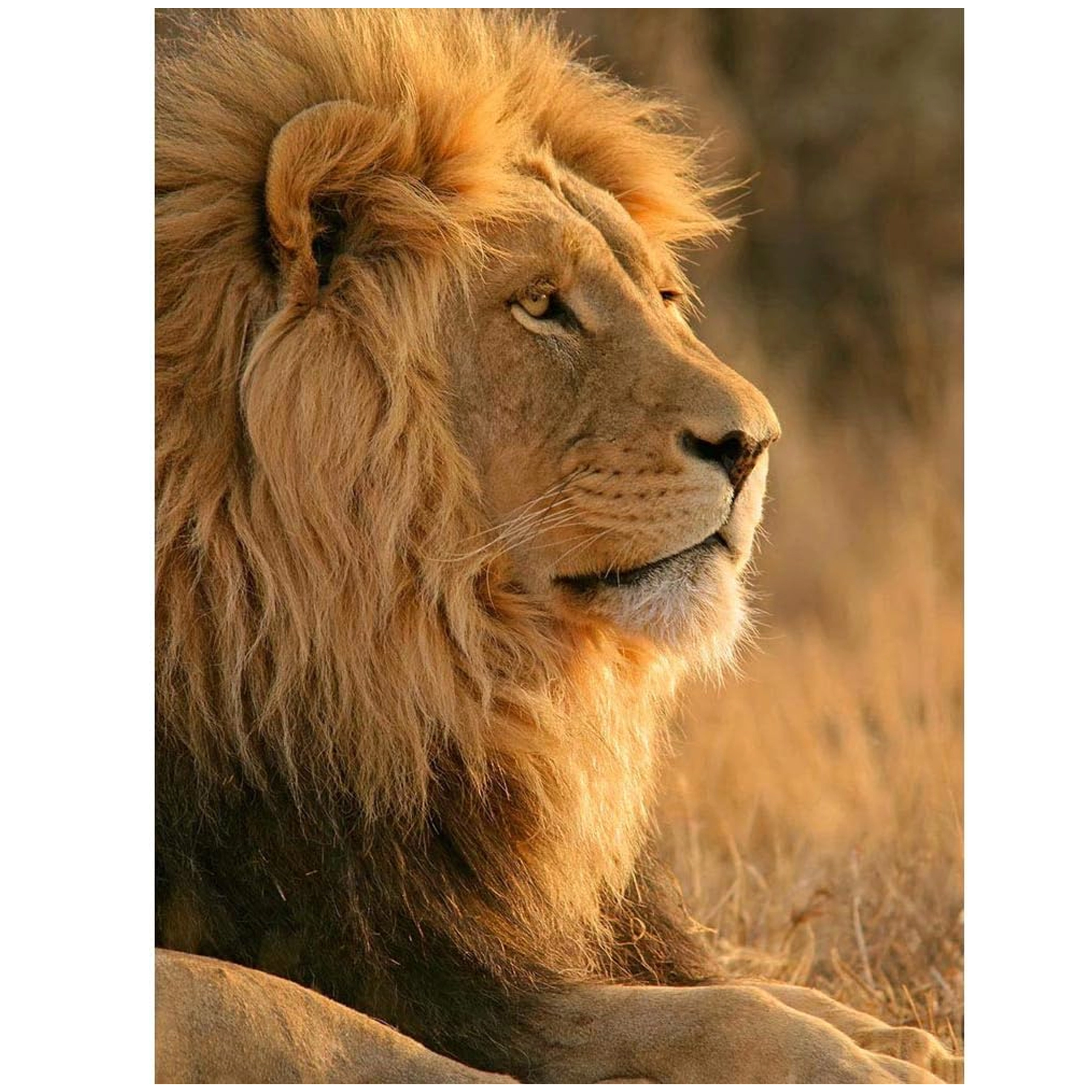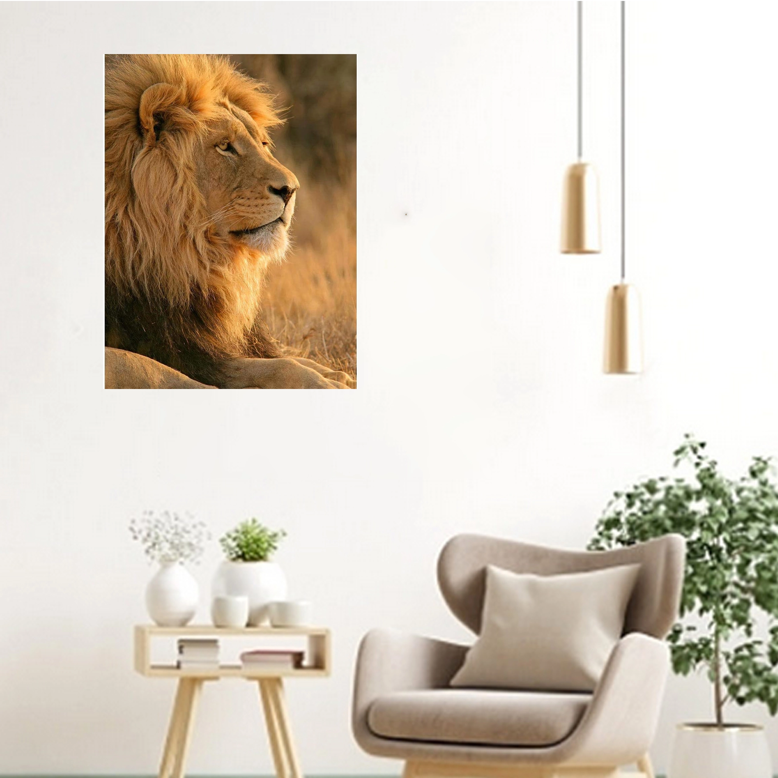 Eleganten motiv leva na platnu 40 × 50 cm je napet na lesenem okvirju, zato lahko končano sliko preprosto razstavite.