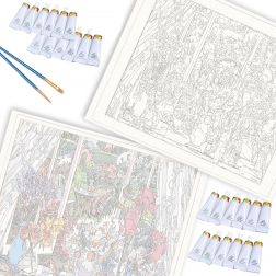 Platno je napeto na lesenem blind okvirju (blej okvirju), kar olajša slikanje in omogoča, da končano sliko takoj obesite. Komplet je odličen za sprostitev, razvoj kreativnosti in tudi kot darilo za otroke in odrasle.