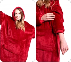 Praktičen velik sprednji žep sprejme telefon, daljinec in drobnarije, medtem ko kapuca doda dodatno toploto in občutek zavetja. Univerzalna velikost je idealna za ženske in moške ter odlična kot darilo. Elegantna rdeča barva se lepo poda domačemu udobju in zimskemu vzdušju.