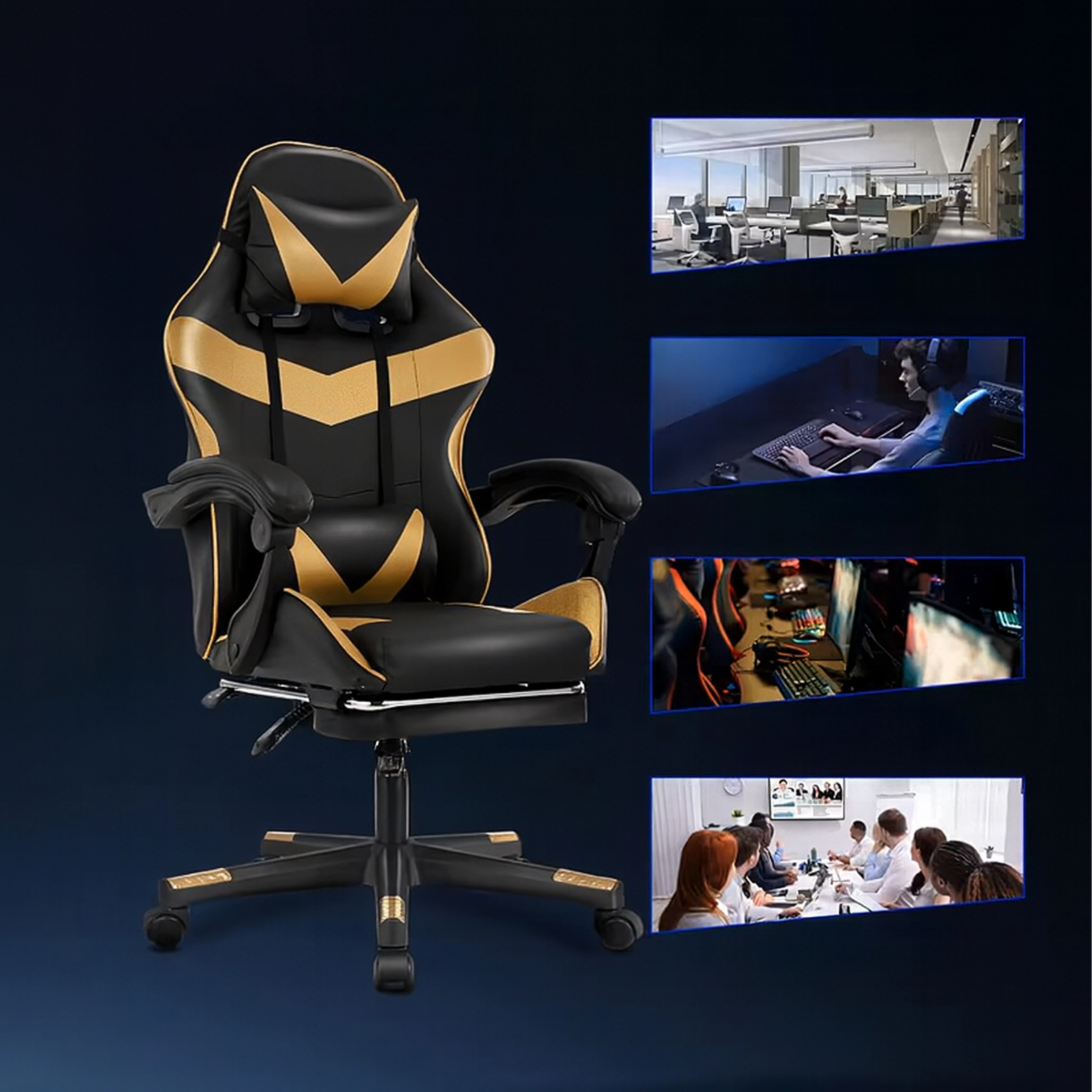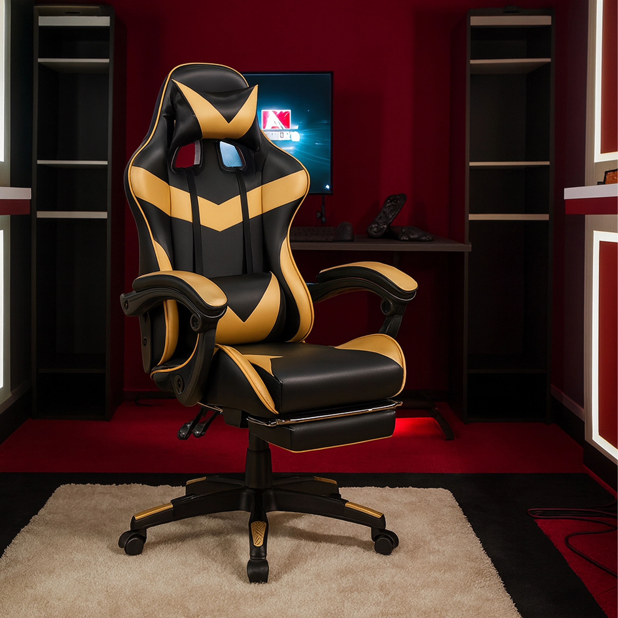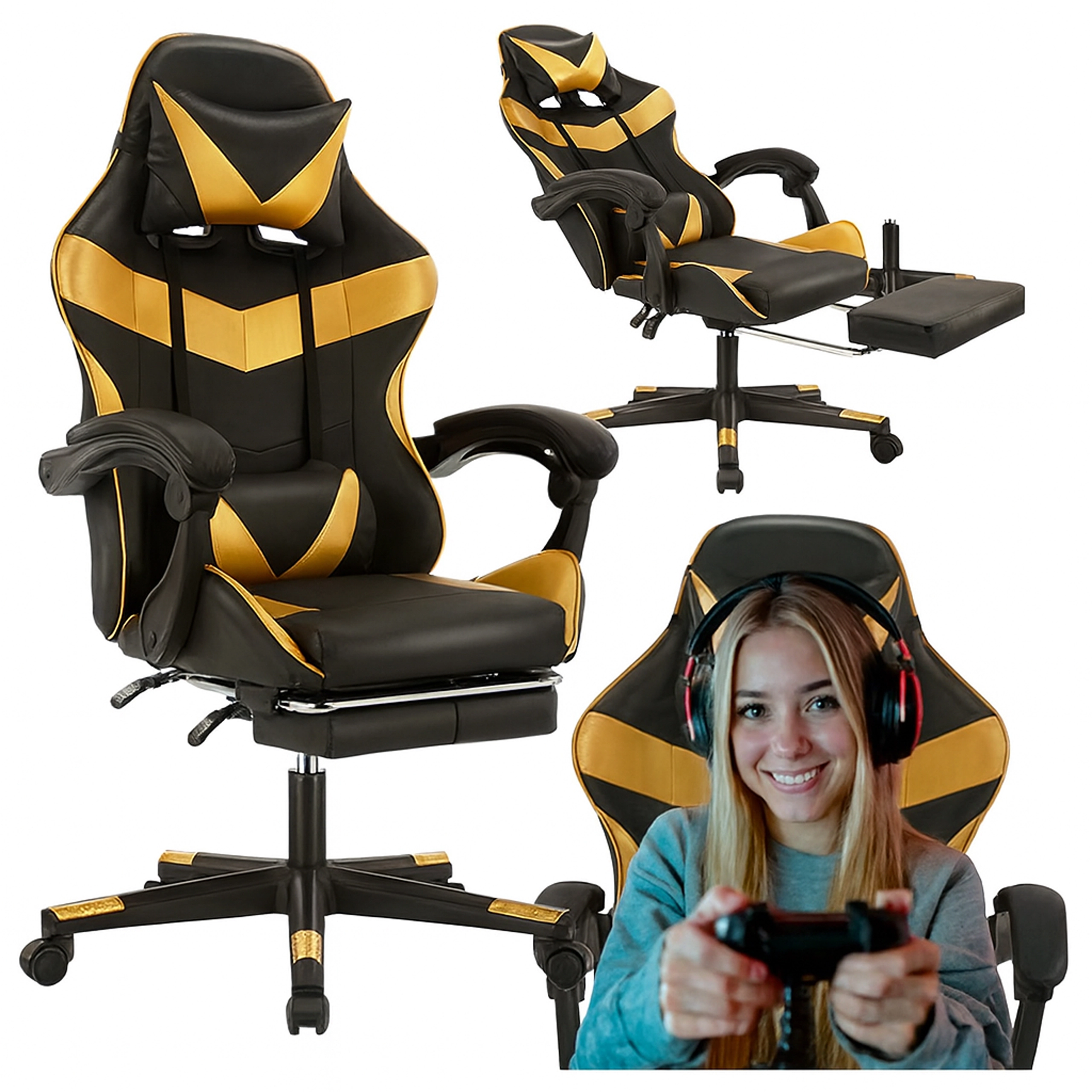 Podprite noge, sprostite stegna in spodnji del hrbta. Dovolj je, da izvlečete podnožnik in nagnite naslonjalo – idealno za odmor med nalogami ali med dolgimi igralnimi seansami.