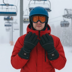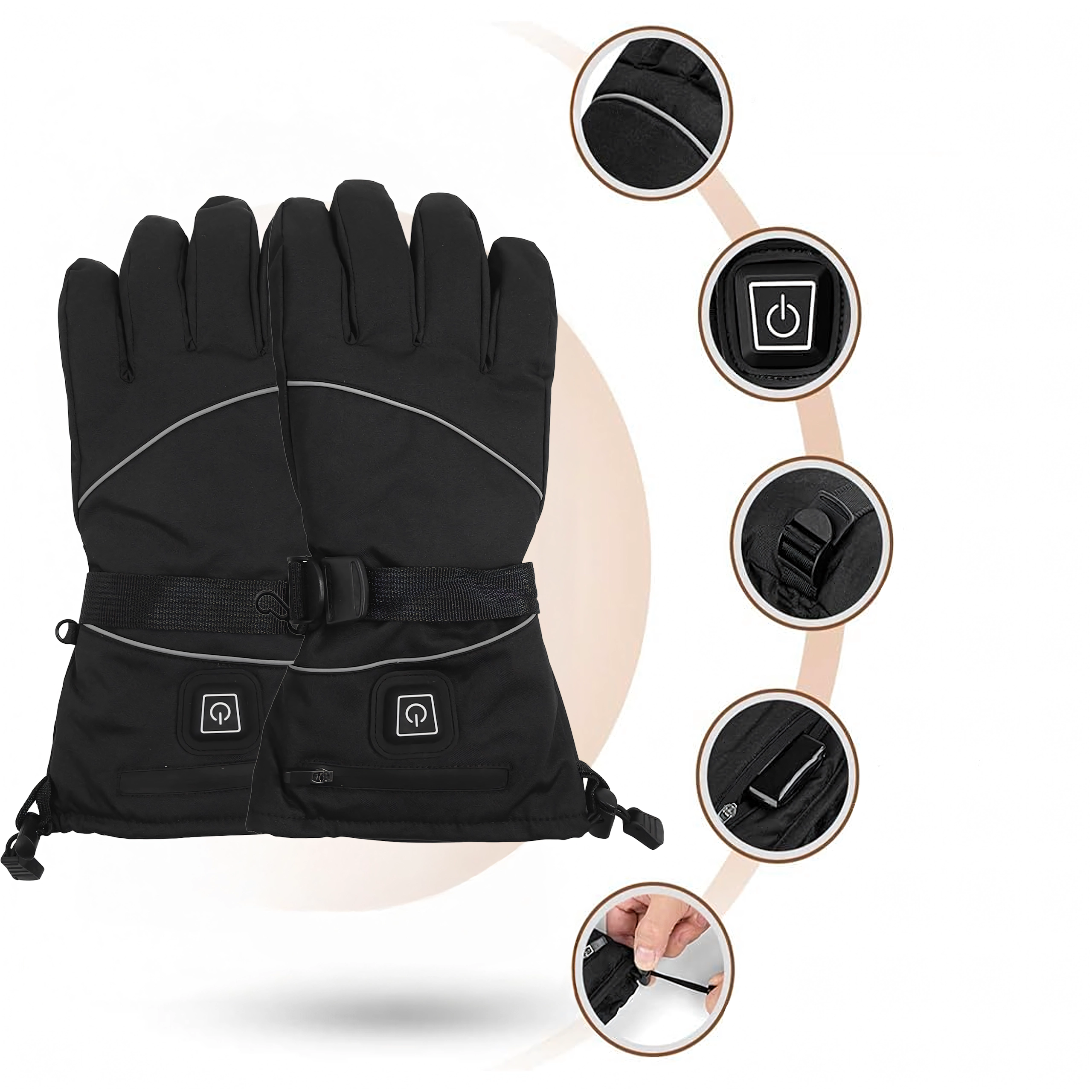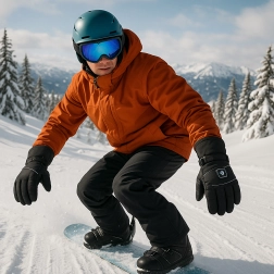 Upravljanje je intuitivno – en sam gumb omogoča preklapljanje med 3 temperaturnimi načini glede na razmere. Vodoodporni materiali, ojačane dlani in odsevni elementi povečujejo varnost in vzdržljivost pri zimskih športih ter delu na prostem.