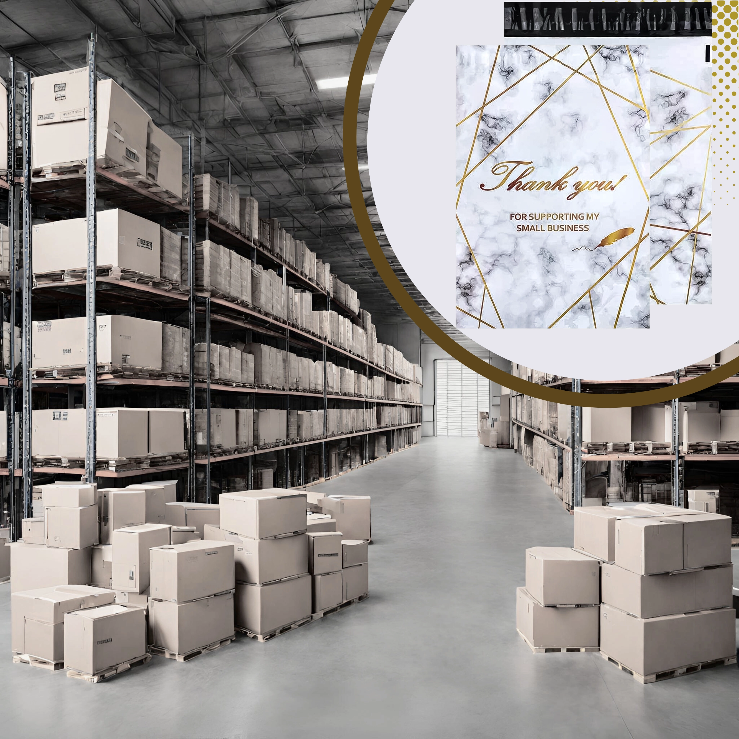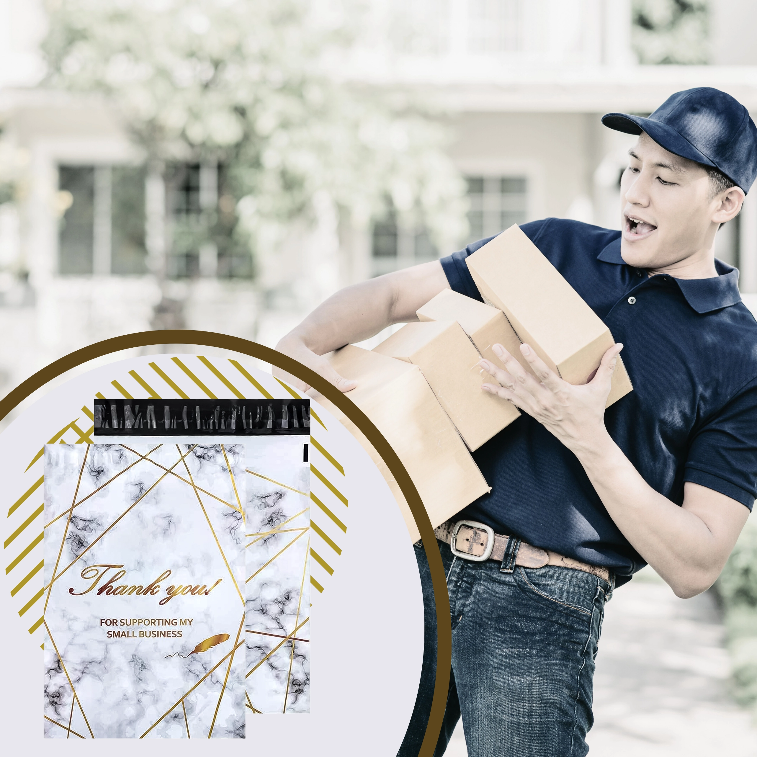 Iščete zanesljive ovitke za spletno trgovino ali redne pošiljke? Ti kurirski folio paketi združujejo trdnost, varnost in estetiko. Dimenzija 380 × 520 mm je idealna za manjše in srednje velike izdelke, tekstil ali dodatke. Dizajn zlatni marmor z zahvalnim Thank You vašim pošiljkam doda profesionalen in prijazen videz.