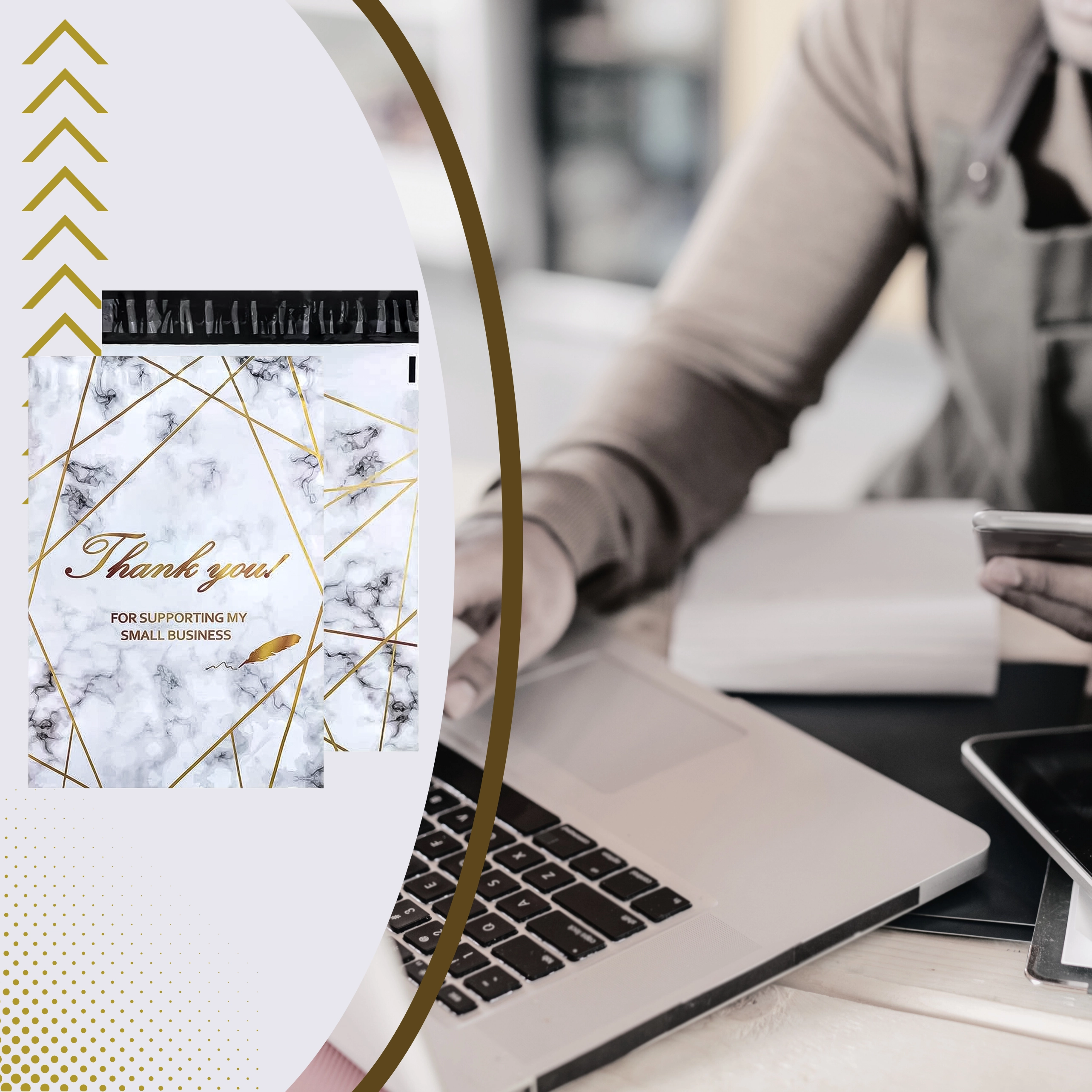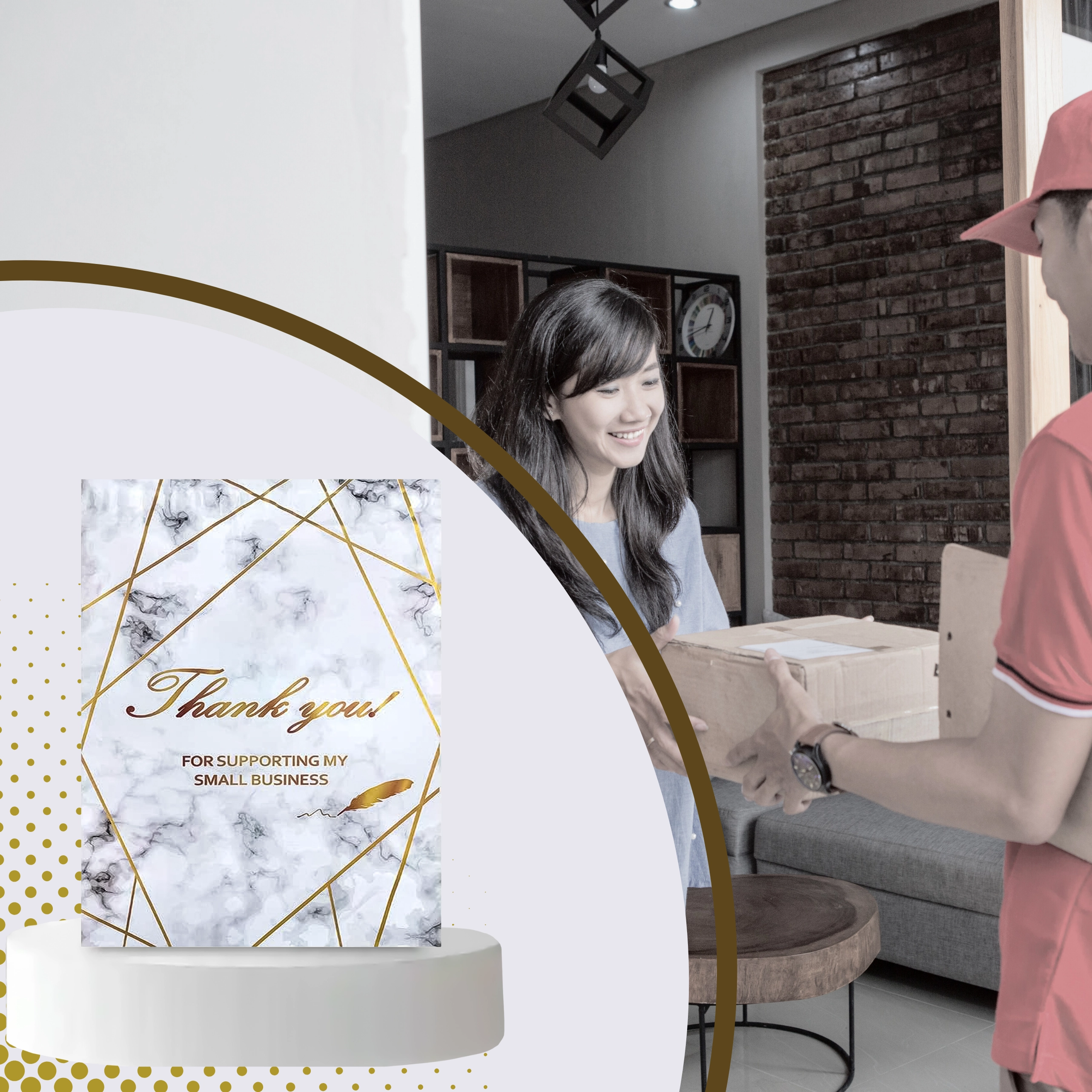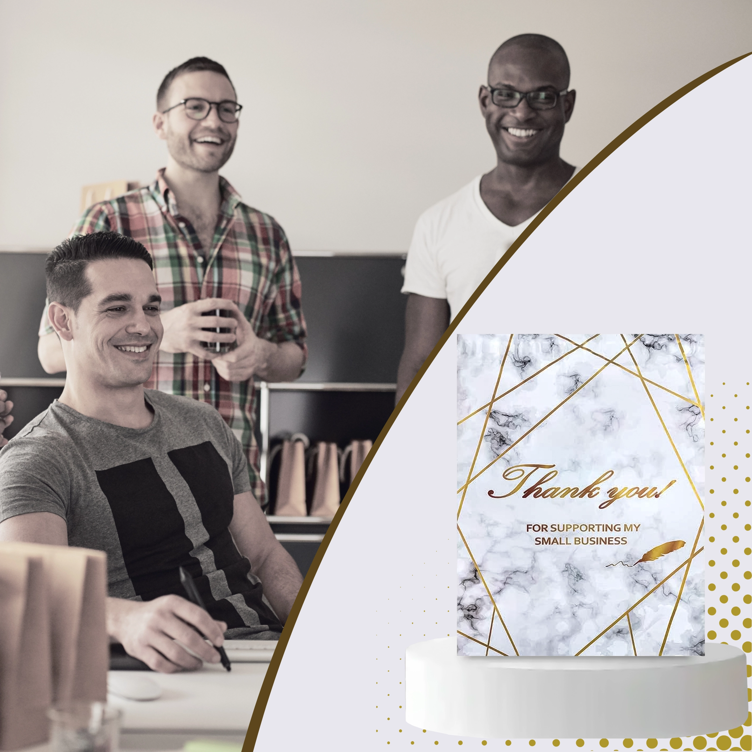 - Reprezentativen videz: zlatni marmor s potiskom Thank You za boljši vtis pri strankah.