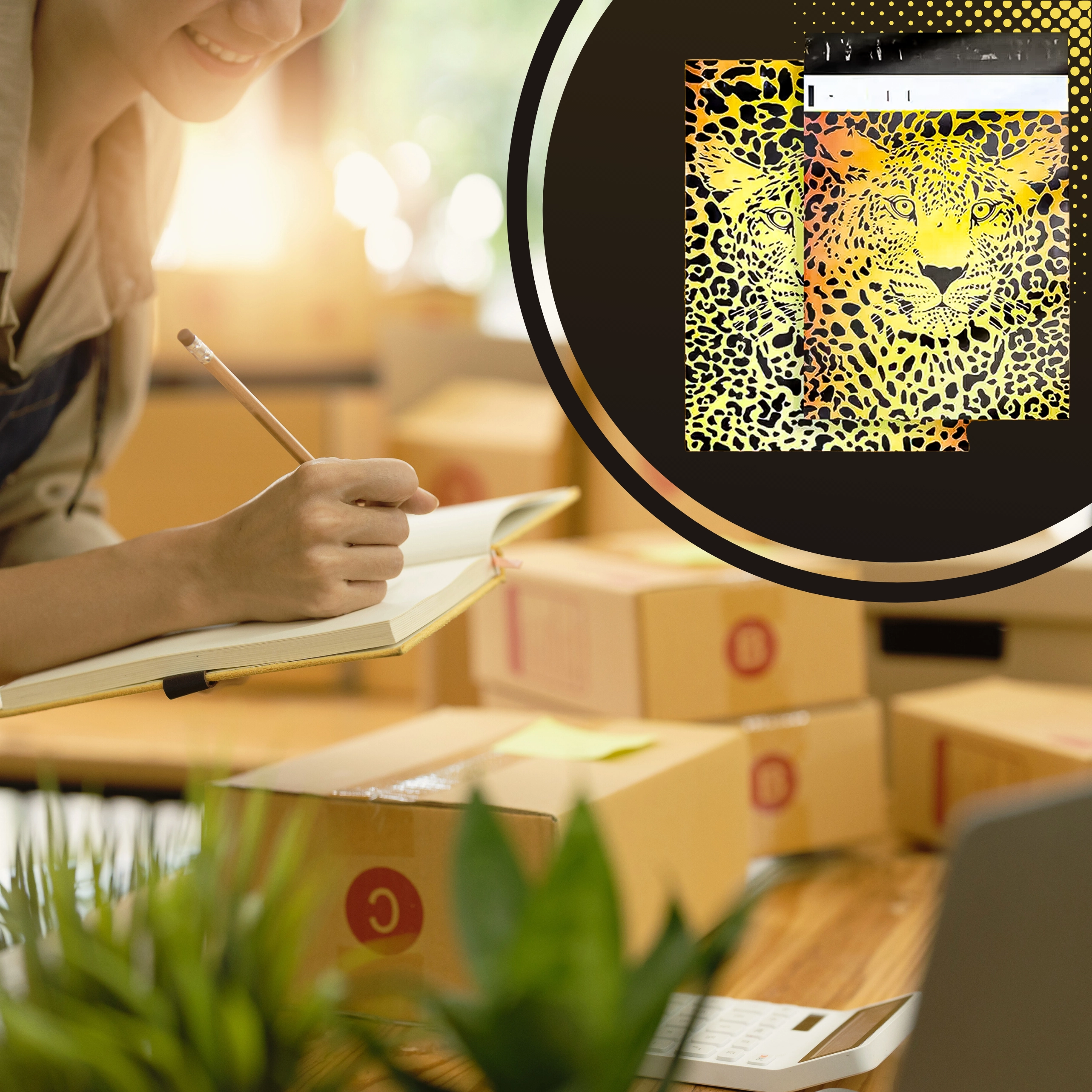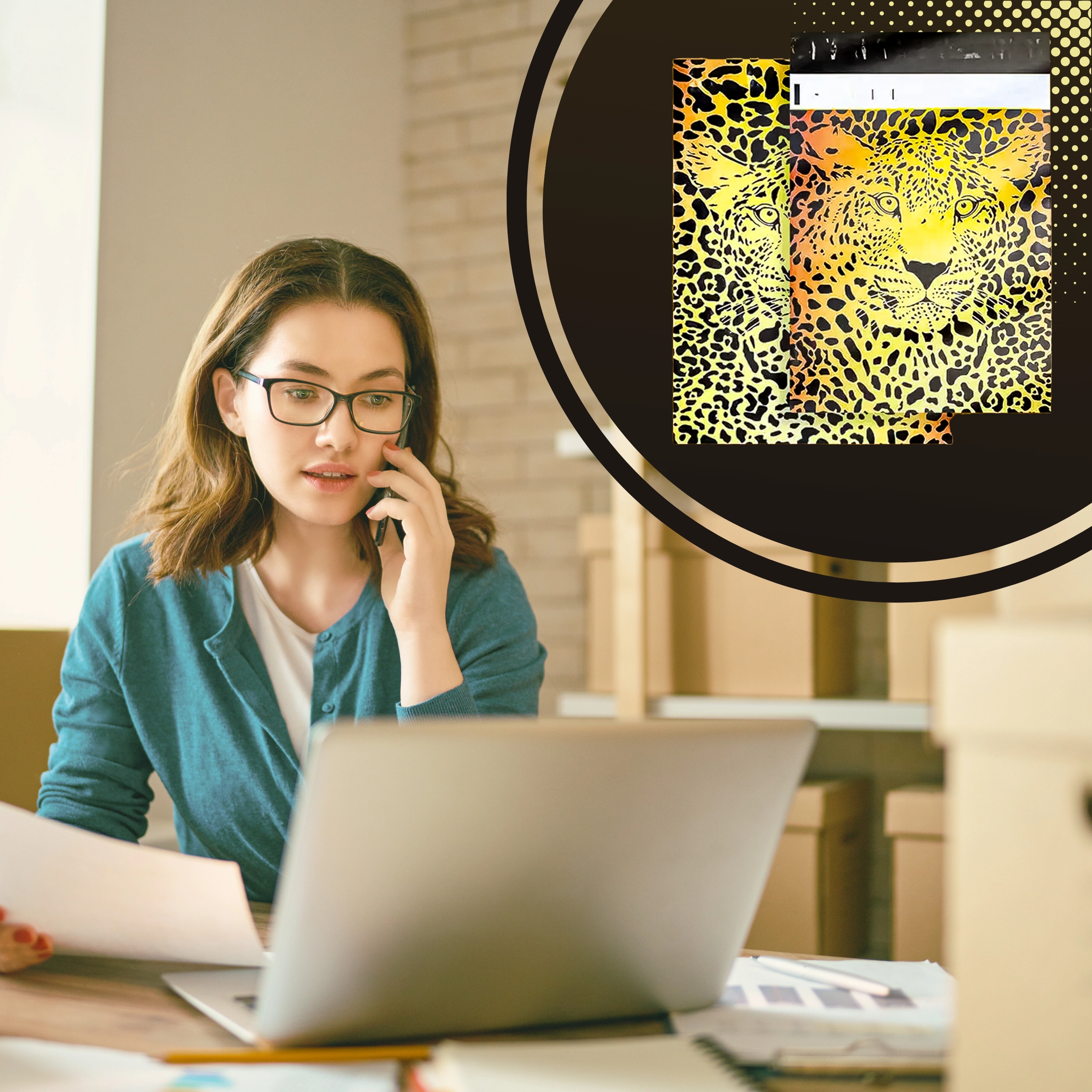 Izrazit potisk z motivom geparda pritegne pozornost strank in vaše pošiljke vizualno izstopijo.