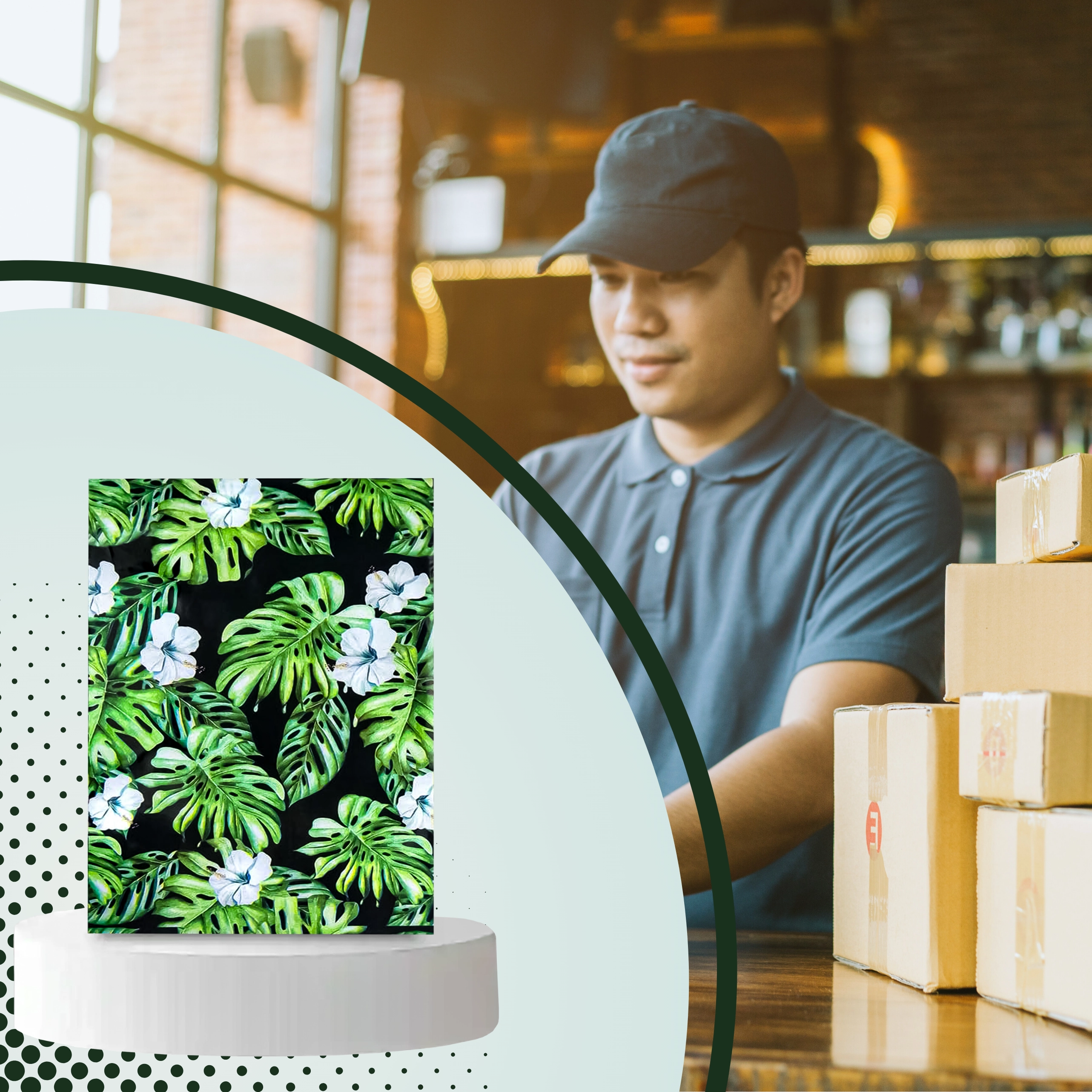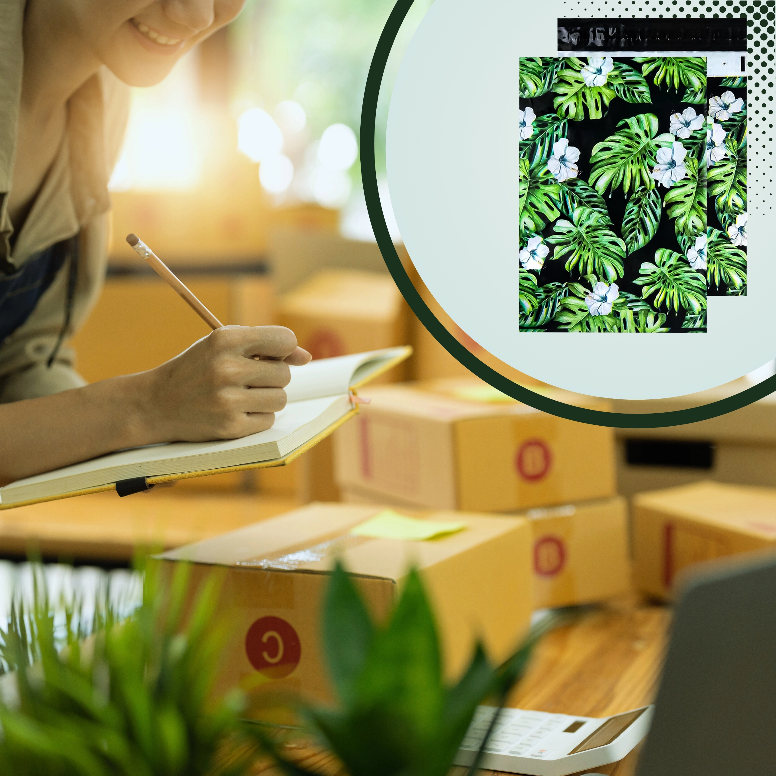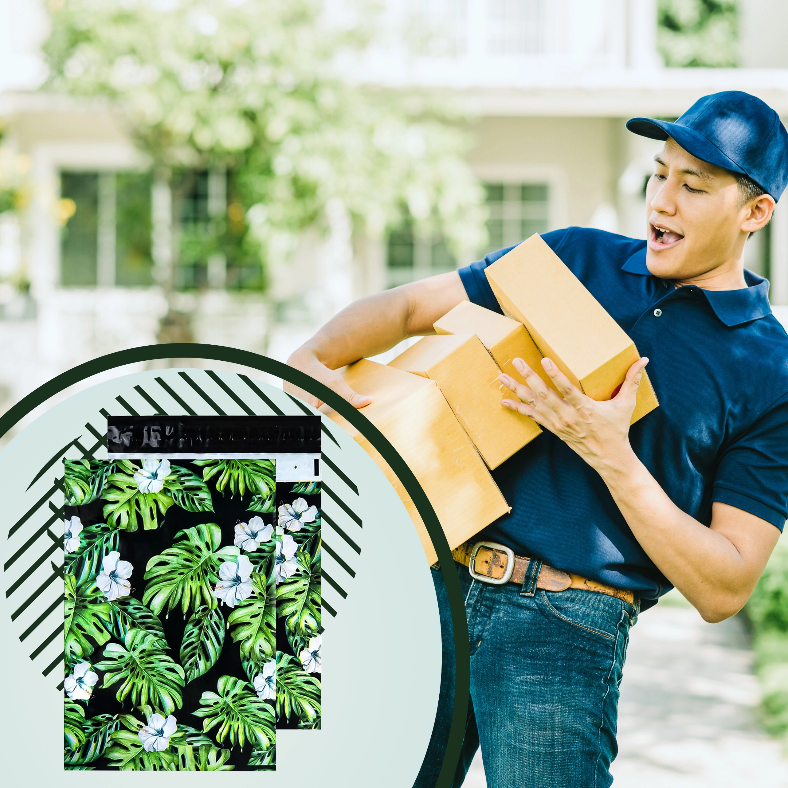 Idealni za spletne trgovine in zasebne pošiljatelje: oblačila, tekstil, škatlice, darila in druge lažje izdelke. Privlačen tropski potisk poudari branding in ustvari profesionalen vtis ob dostavi.