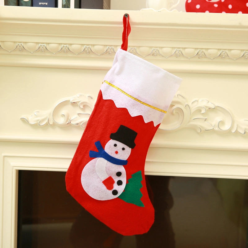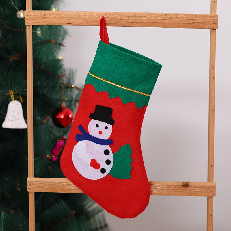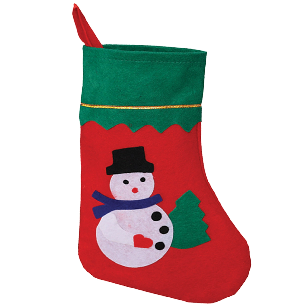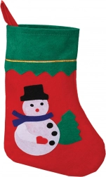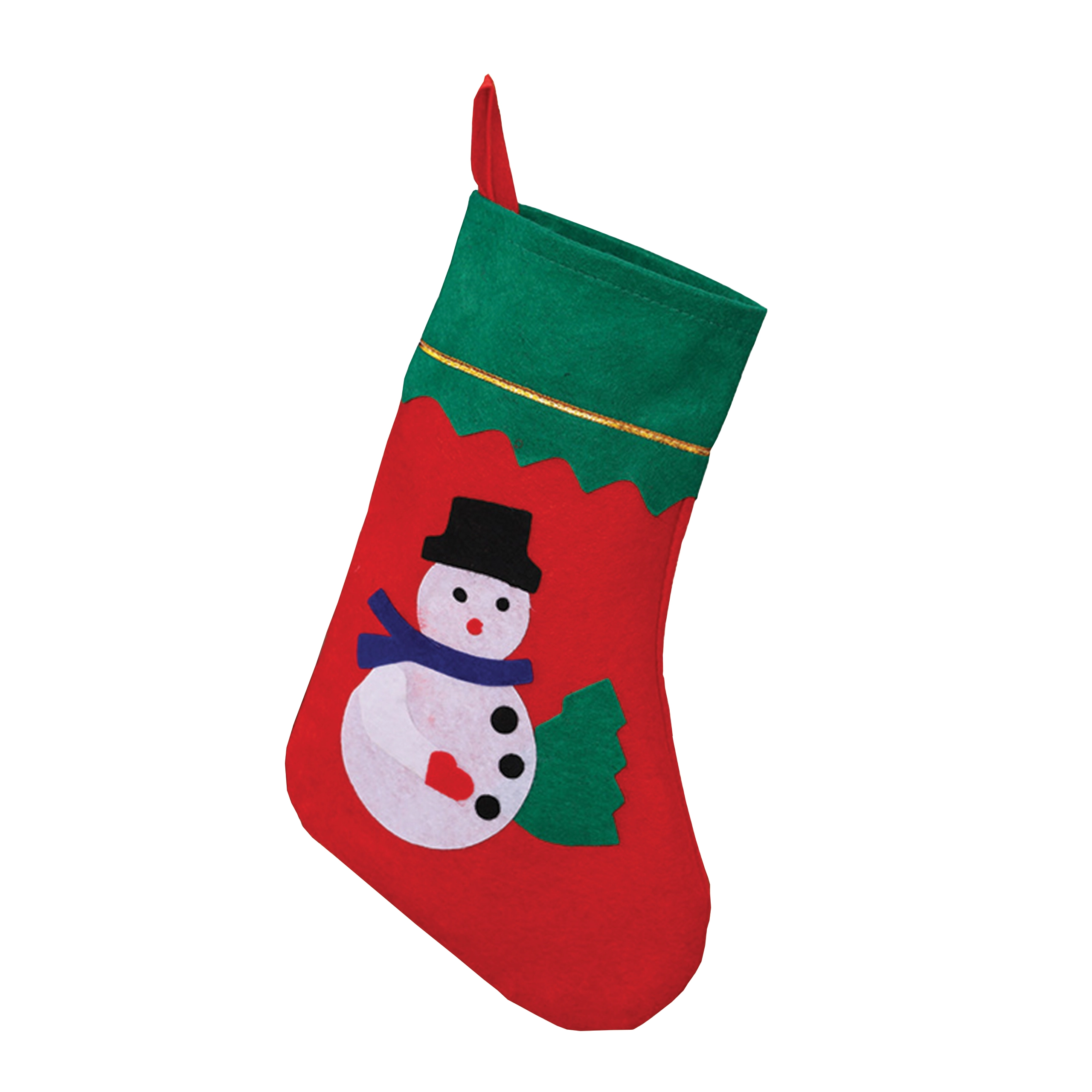 Vesel aplikiran snežak z detajli doda nogavici osebnost in poudari božično razpoloženje ob kaminu ali smrečici.