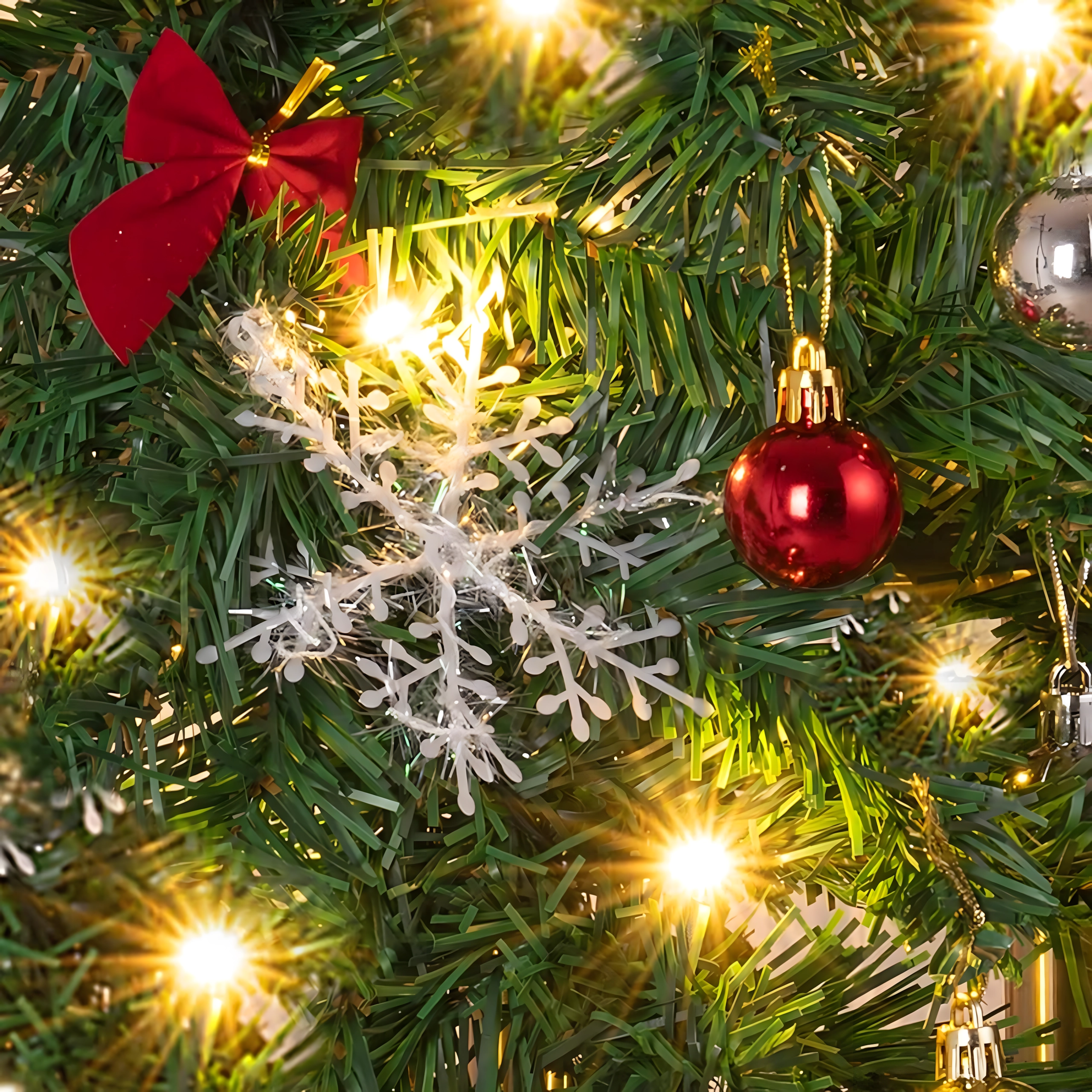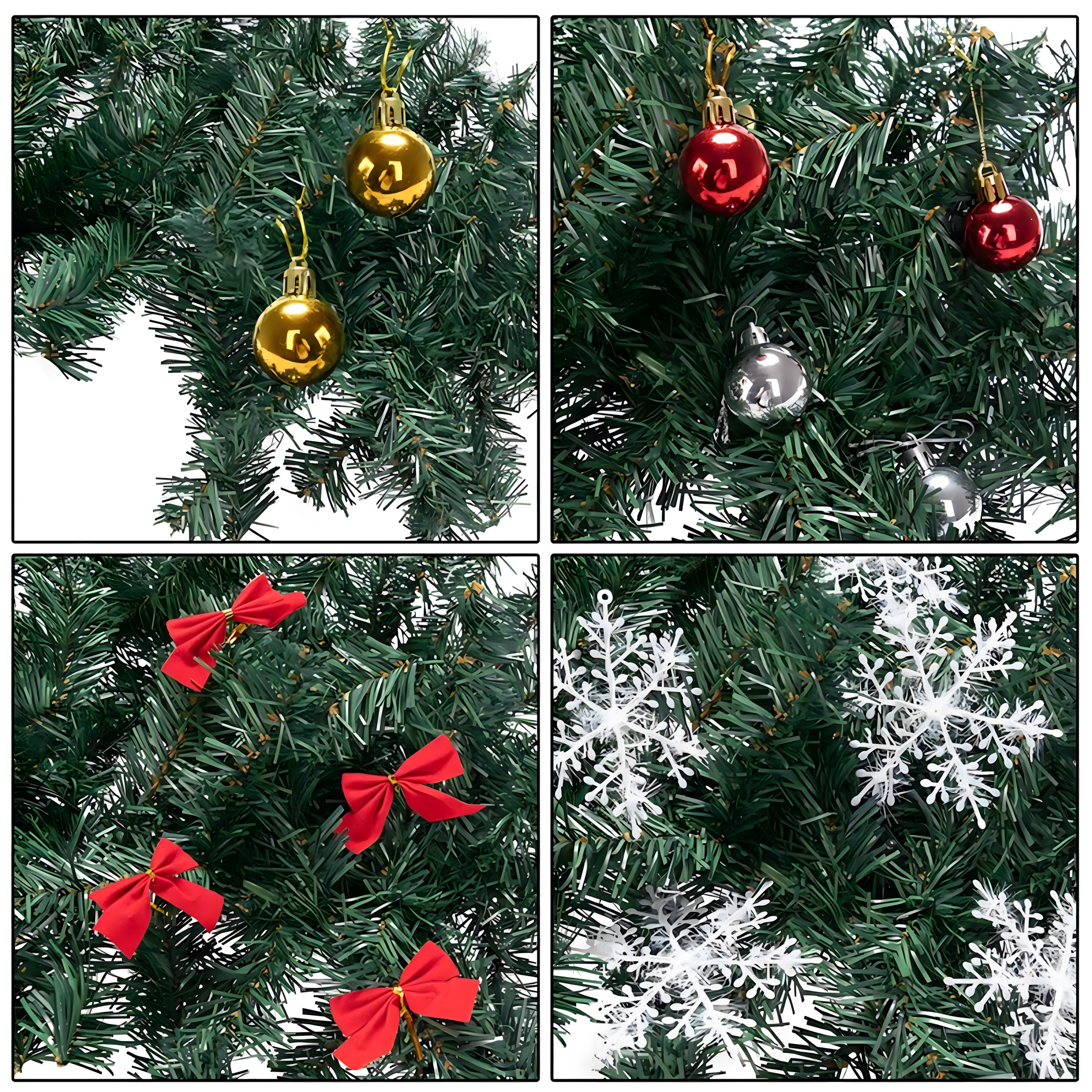 Kar 260 vejic z okraski – bunkice, pentlje in snežinke – za poln in reprezentativen videz brez potrebe po dodatnih dopolnitvah.