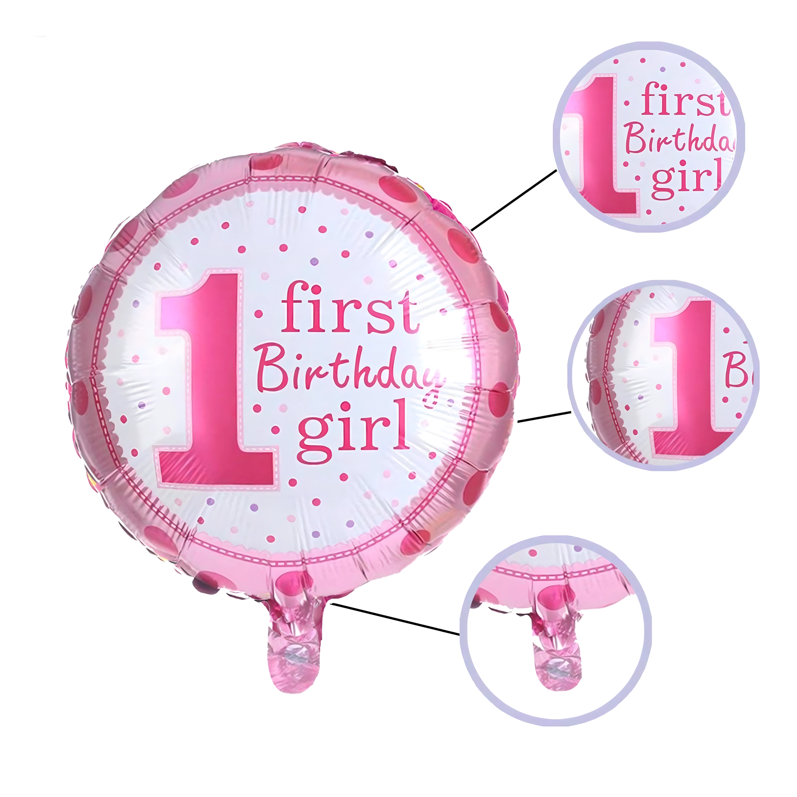 - 5 kosov balonov z motivom številke 1, zvezdic in napisom »First Birthday Girl«
