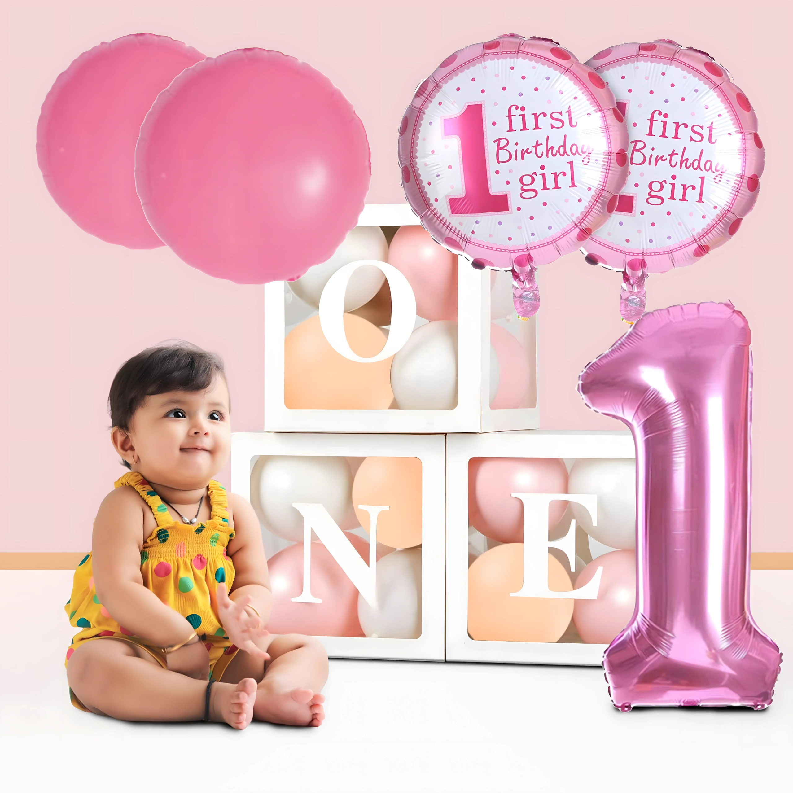 Ustvarite nepozabno dekoracijo za prvi rojstni dan vaše princeske. Ta komplet 5 balonov združuje nežne motive s številko 1, zvezdicami in napisom »First Birthday Girl«, ki so kot nalašč za rojstnodnevno zabavo, domače praznovanje in foto kotiček.
