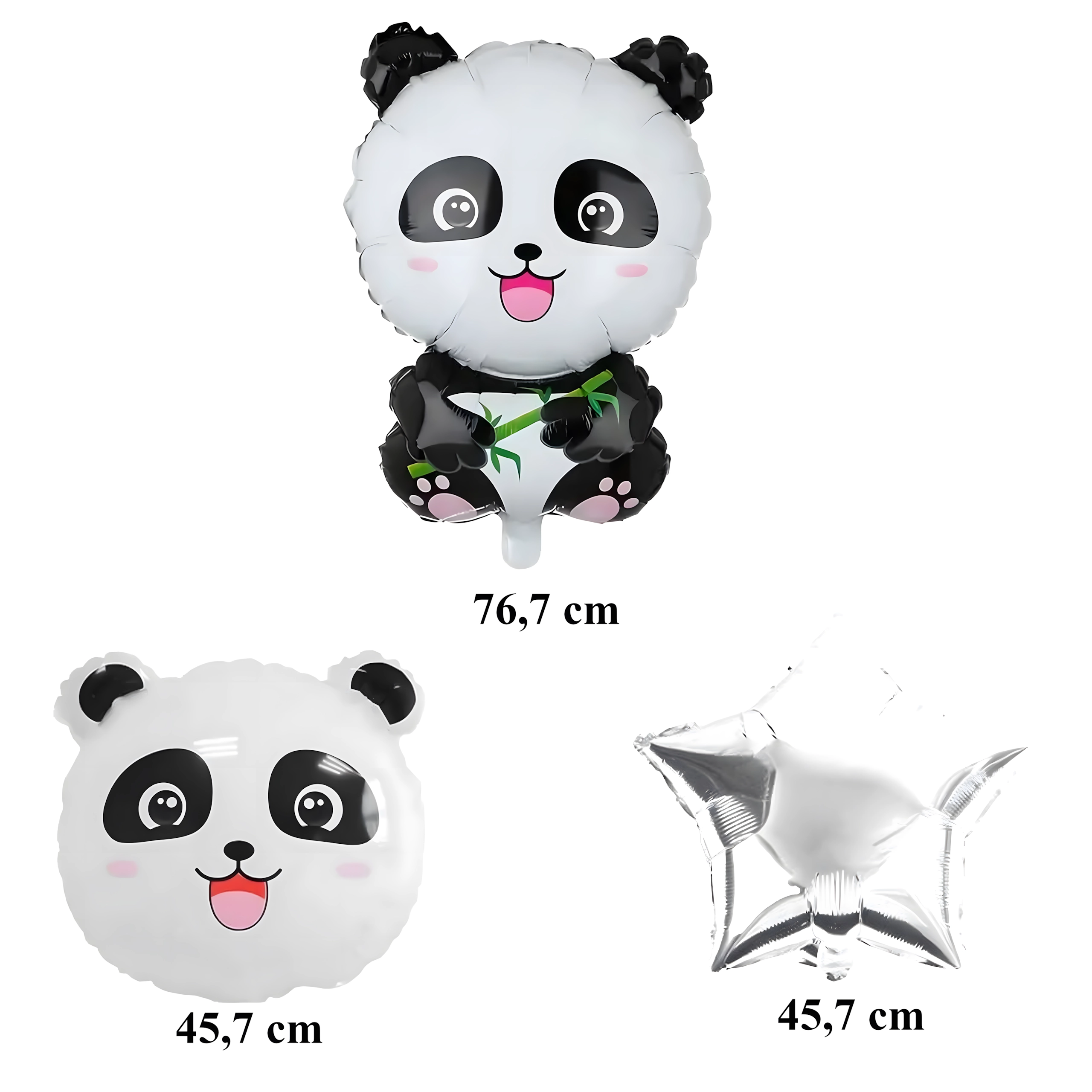 - 1× balon panda, 2× balon z napisom HAPPY BIRTHDAY, 2× srebrna zvezdica