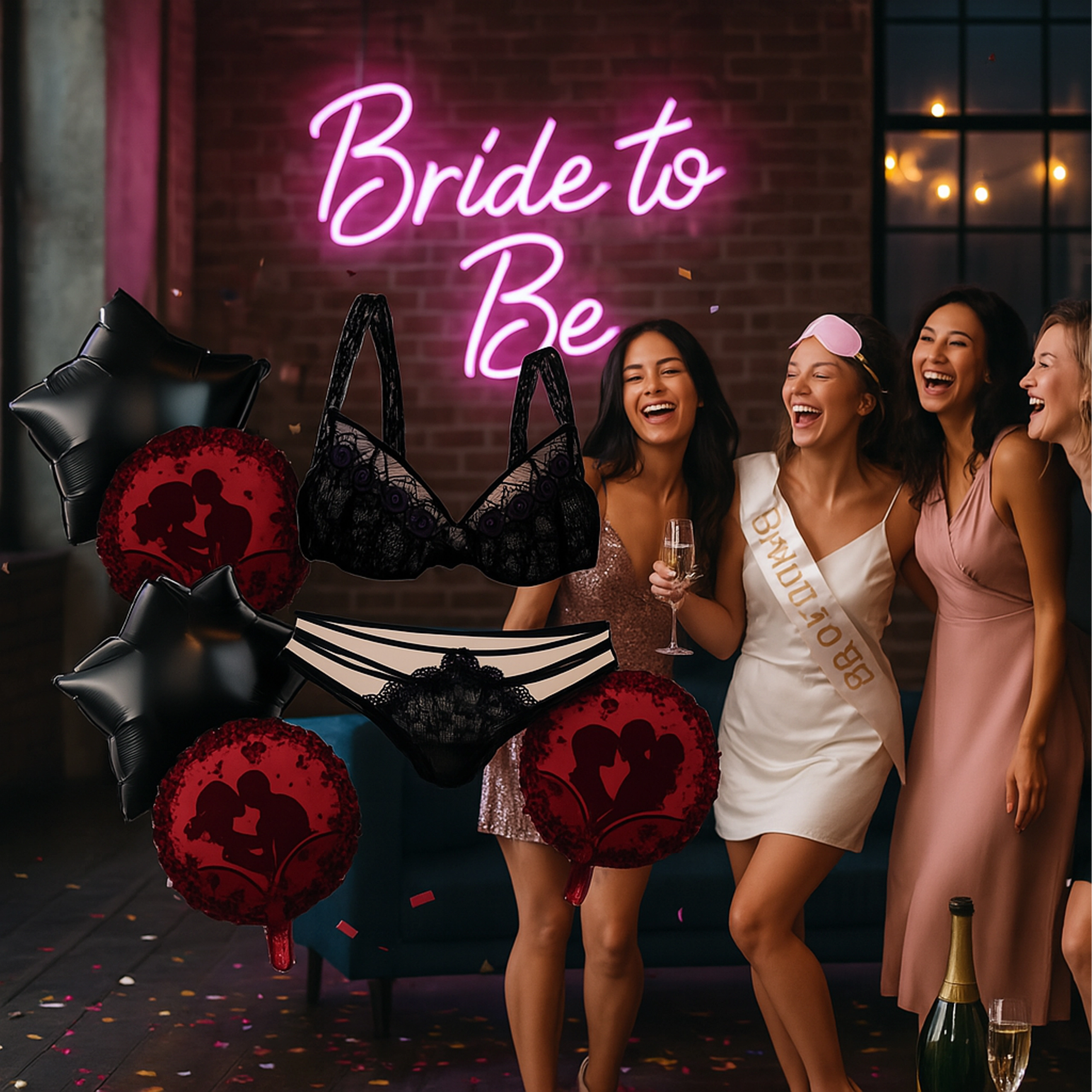 Ta stajliš in zabaven komplet balonov ustvari nepozabno vzdušje na vsaki dekliščini. Kombinacija oblik in potiskov je odlična za fotokotiček, mize in okrasitev prostora.