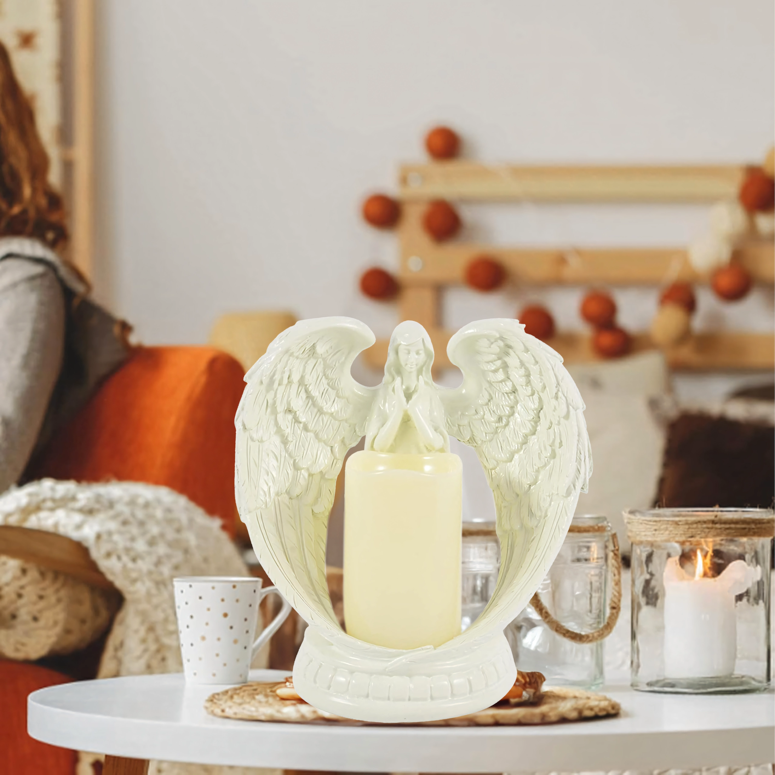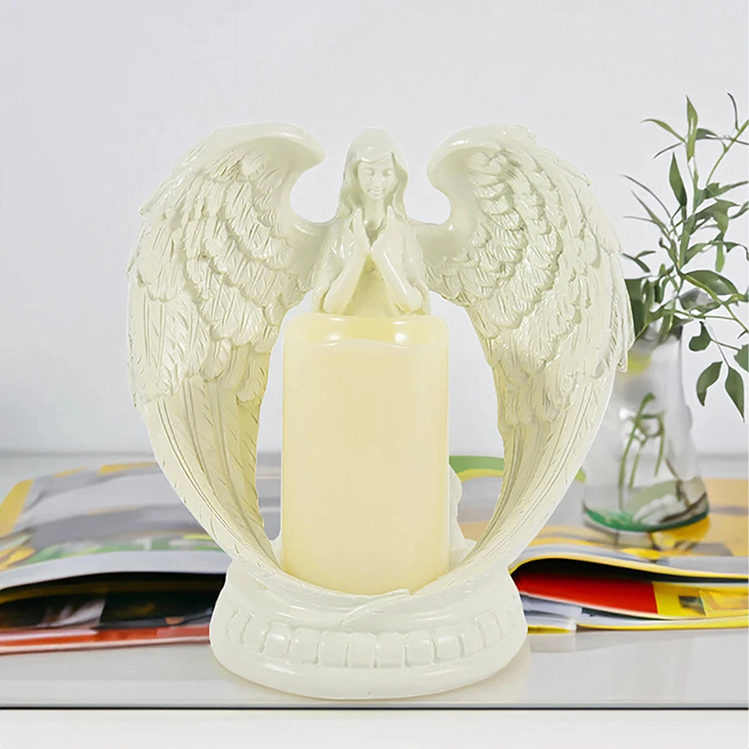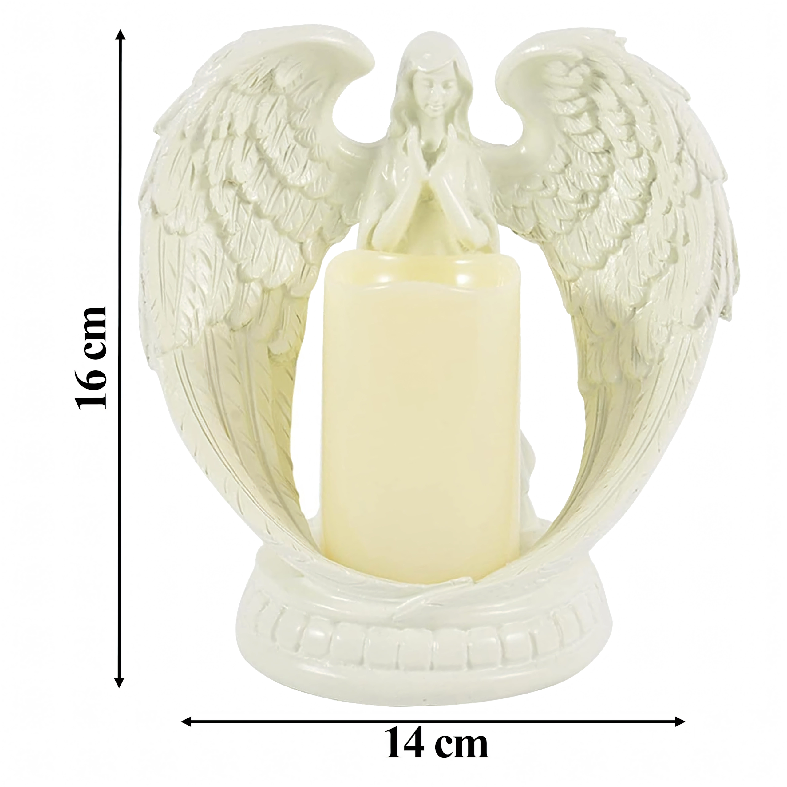 Elegantni angel z LED svetlobo v roki prinaša prijetne in realistične svetlobne učinke. Figurka iz mavca simbolizira mir, spomin in blagoslov. Idealno kot notranja dekoracija, za verske obrede, na grob in kot posebno darilo.