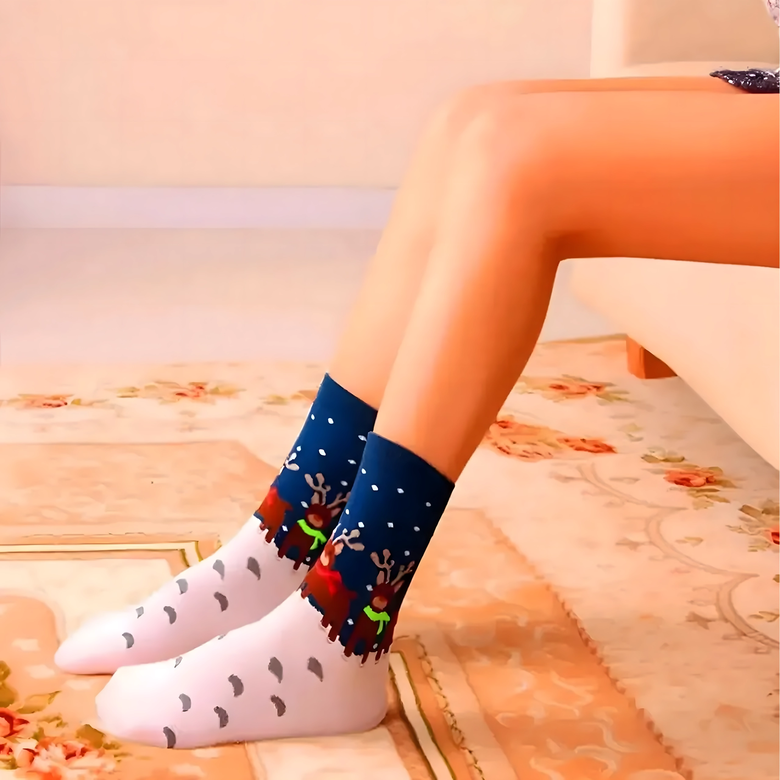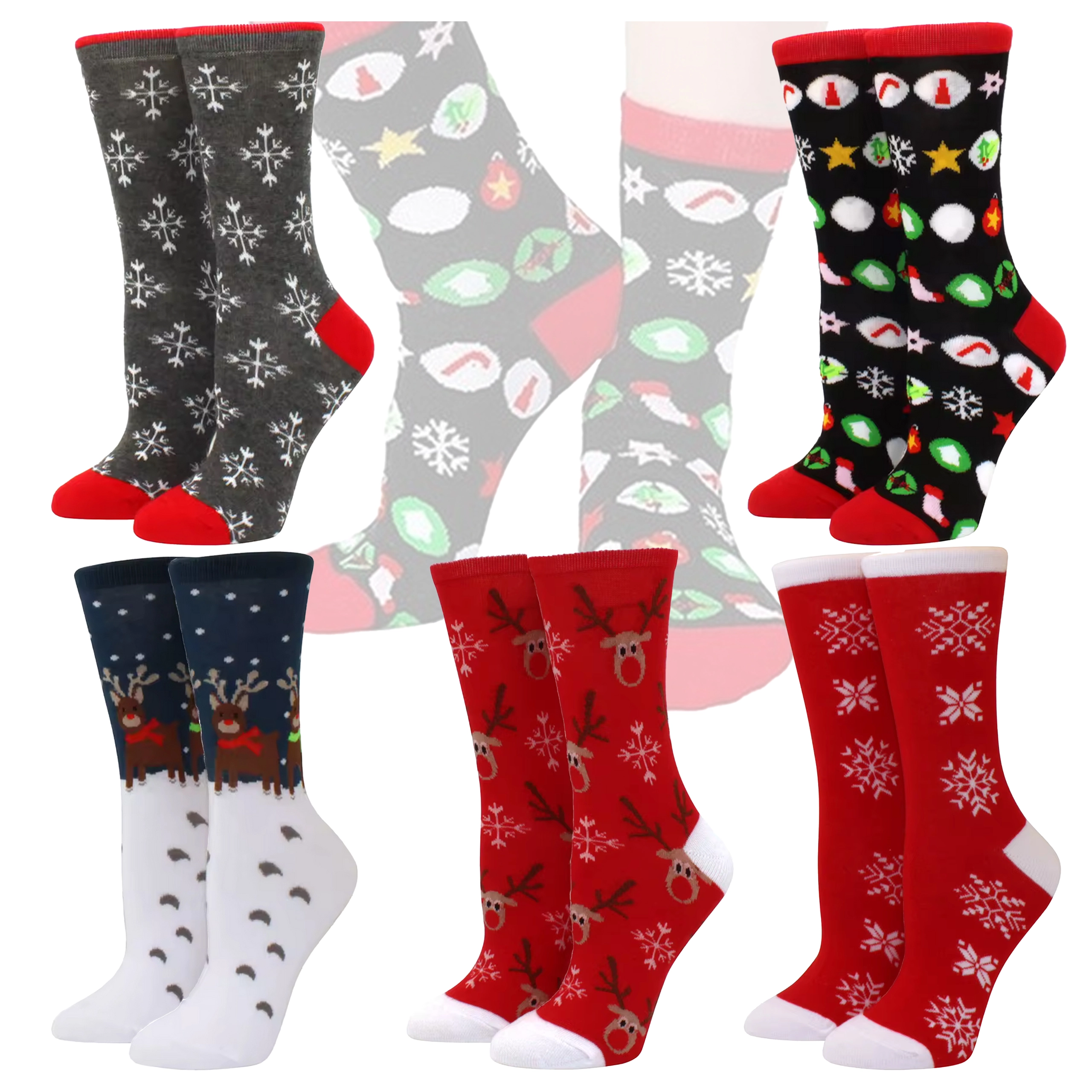 Stajliš set 5 parov božičnih bombažnih nogavic za udobje in veselje v zimskih dneh. Iz visokokakovostnega bombaža – mehke, zračne in prijetne na dotik. Veseli motivi, kot so jelenčki, jelke in snežinke, ustvarijo praznično vzdušje. Odlična darilna ideja za božič in Miklavža.