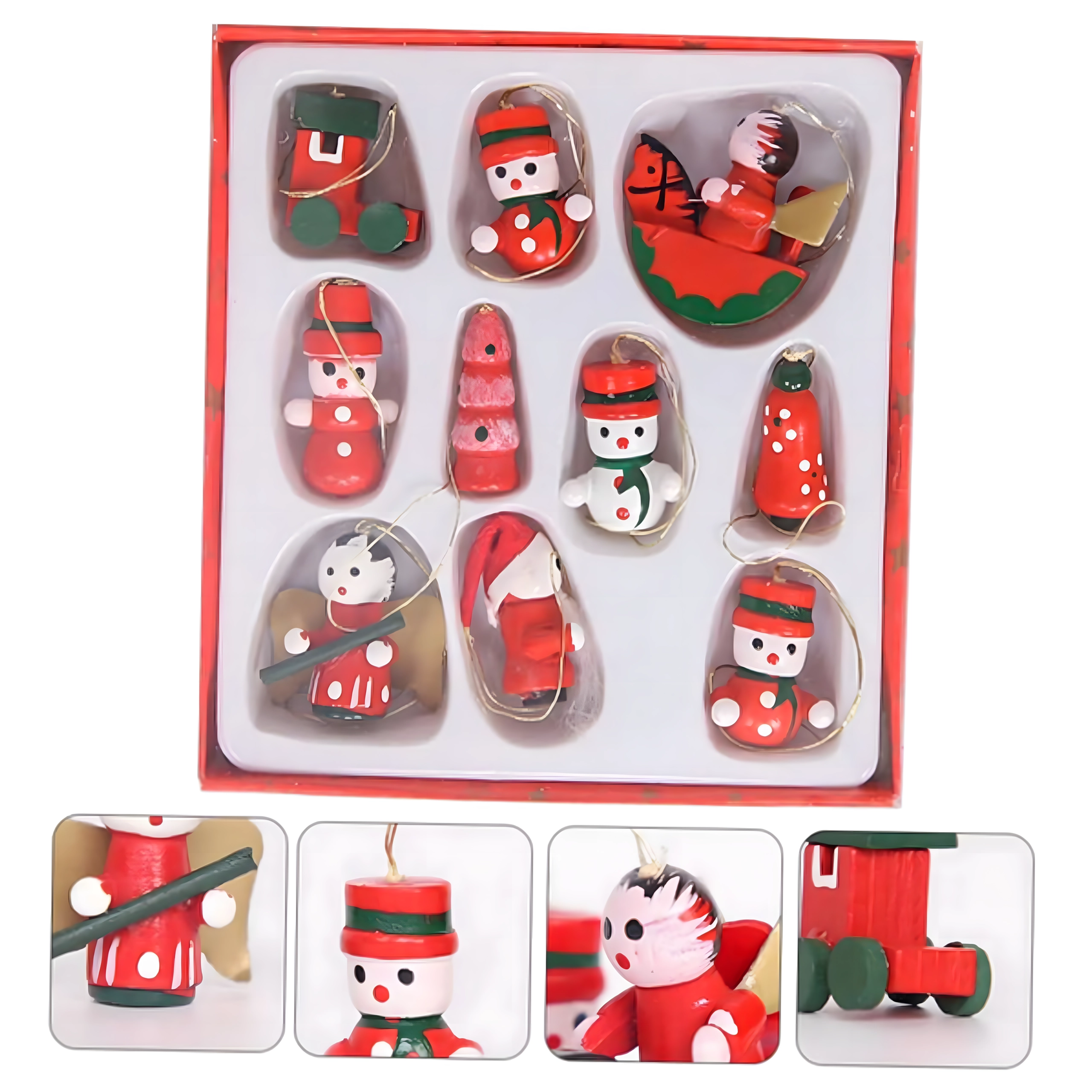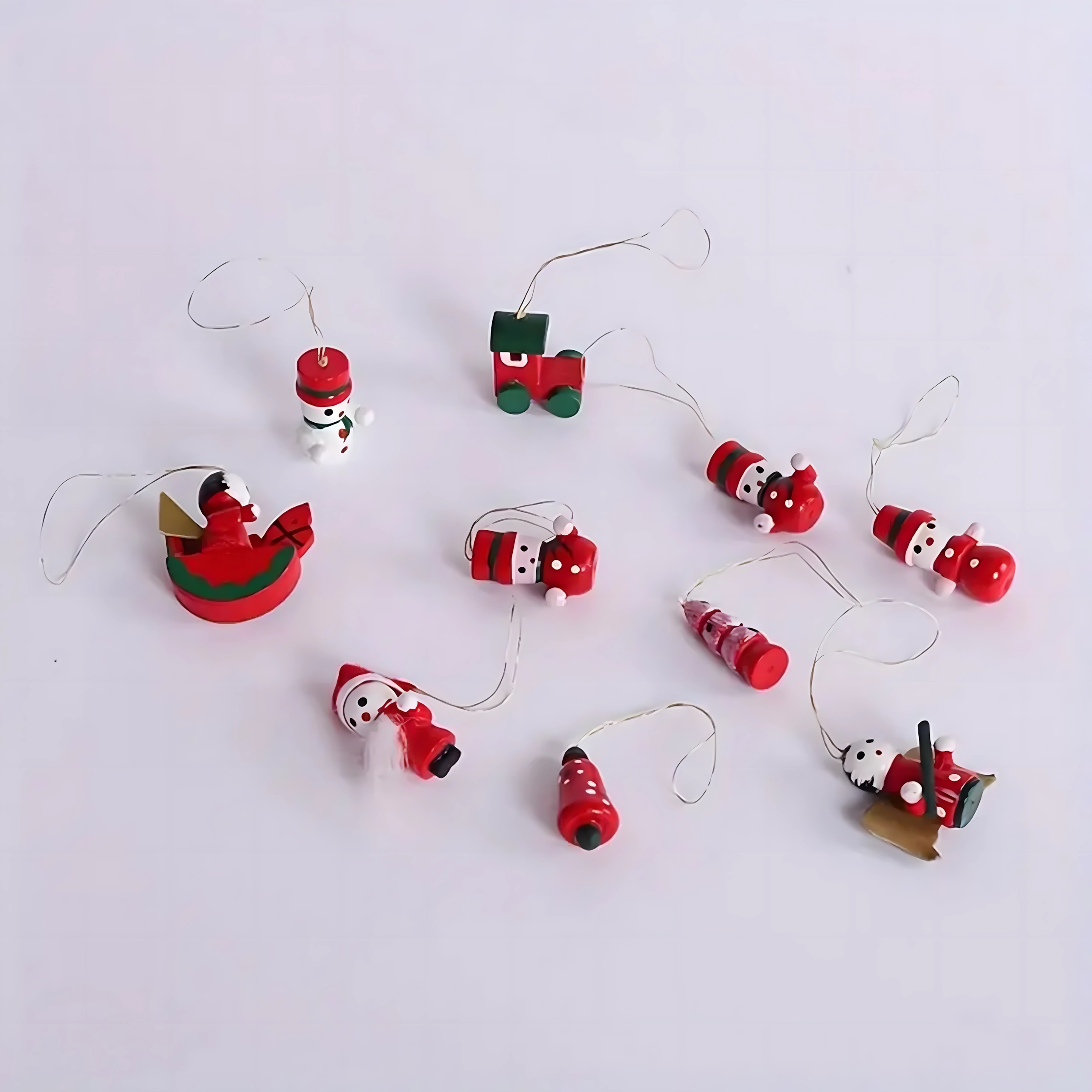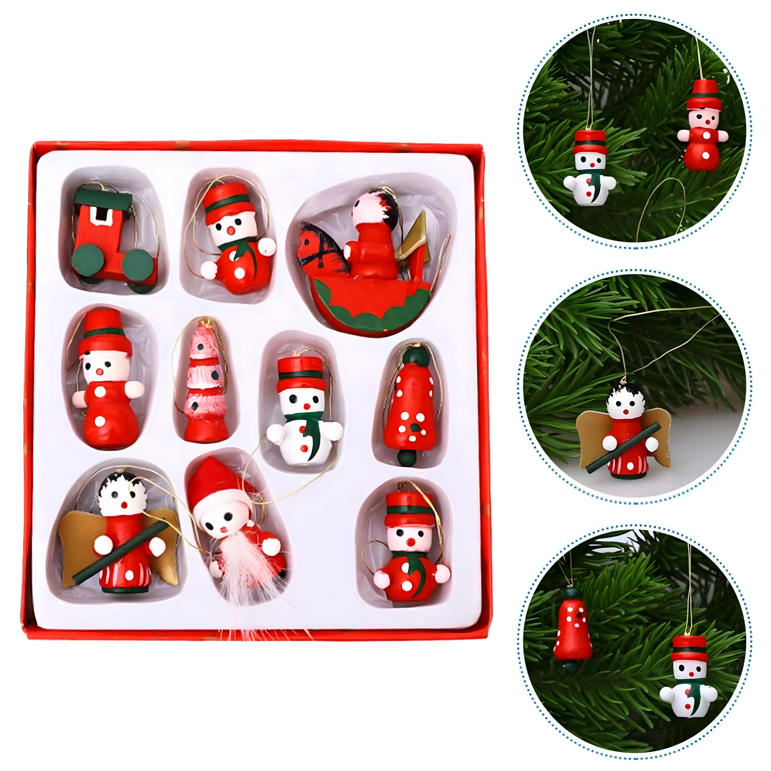 Leseni božični okraski za drevesce, viseče dekoracije – komplet 10 kosov