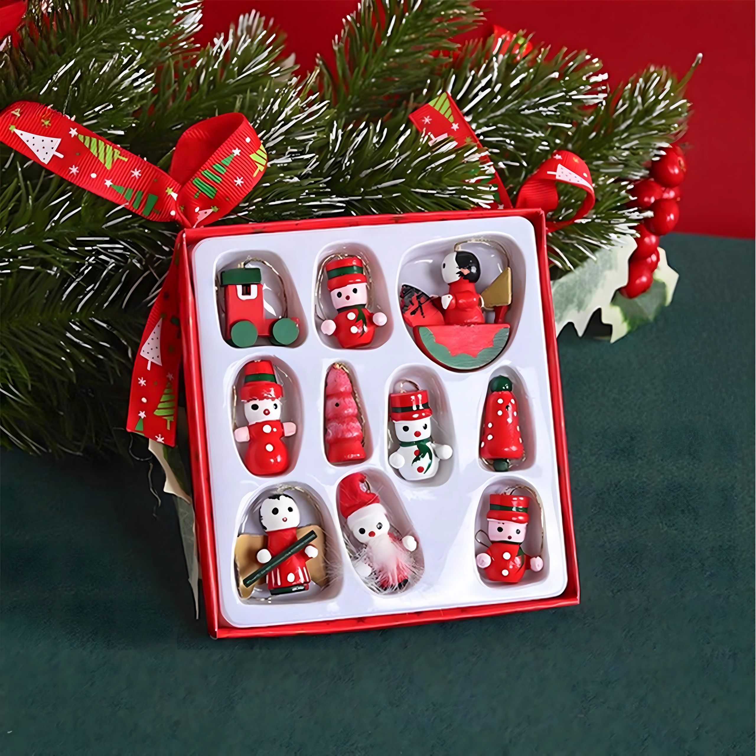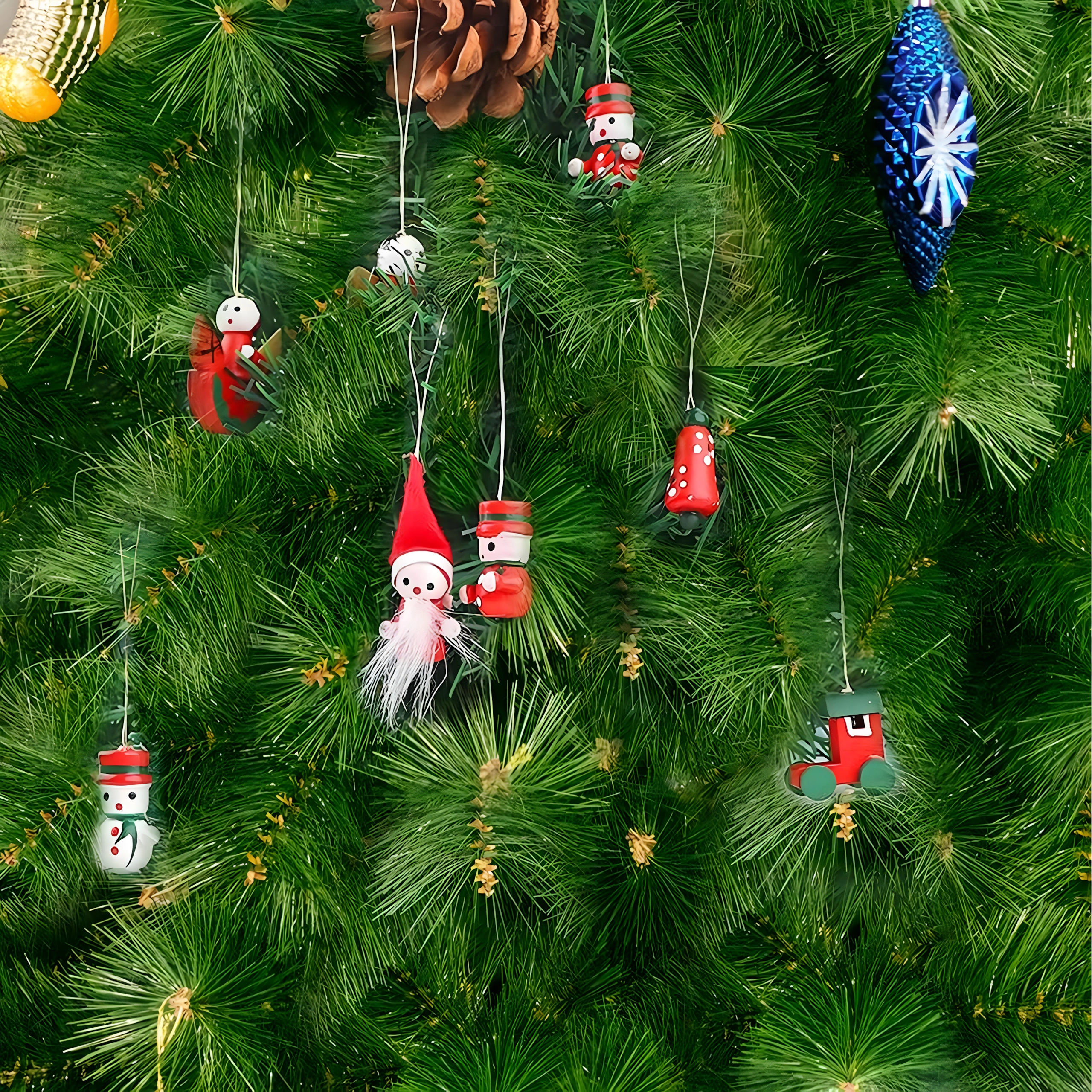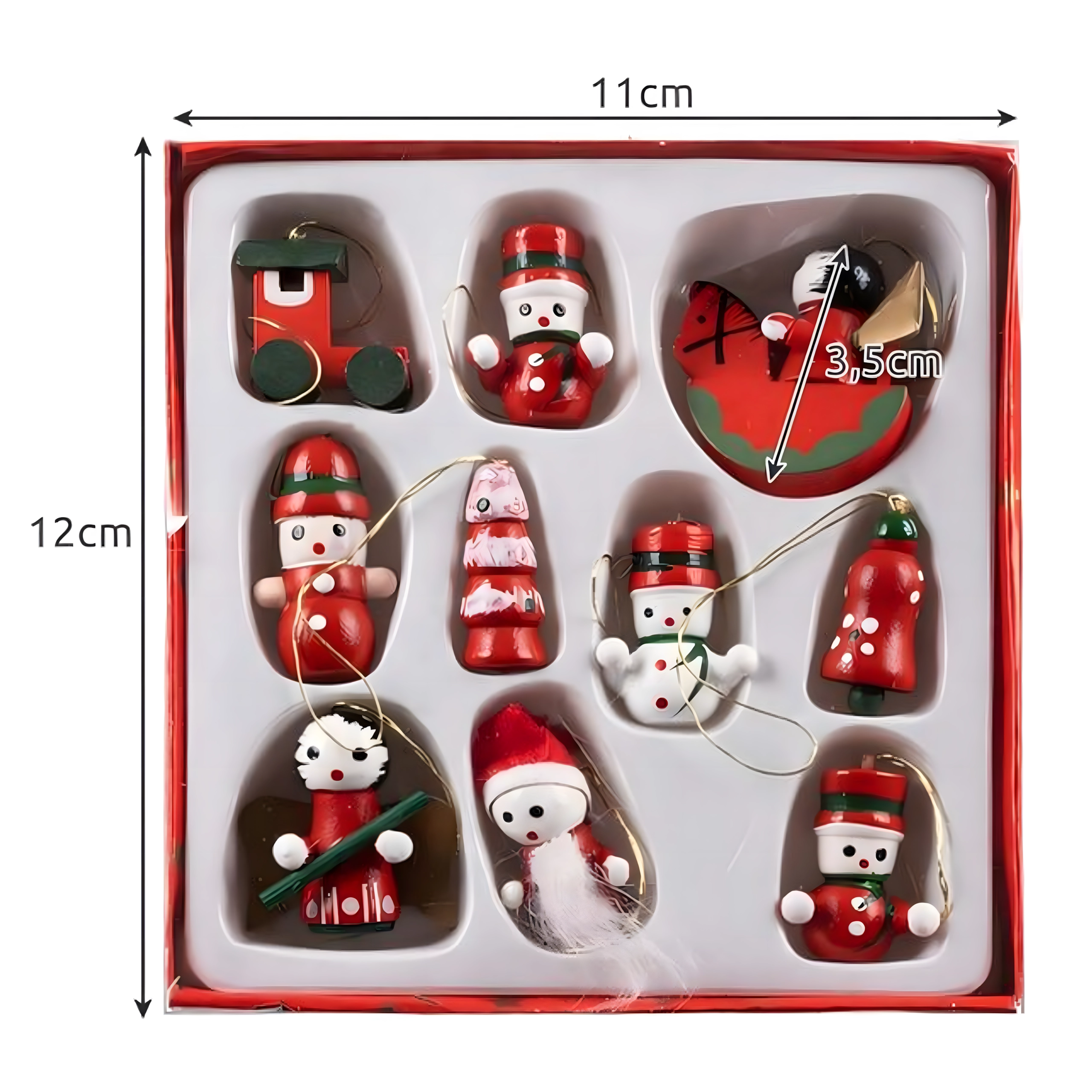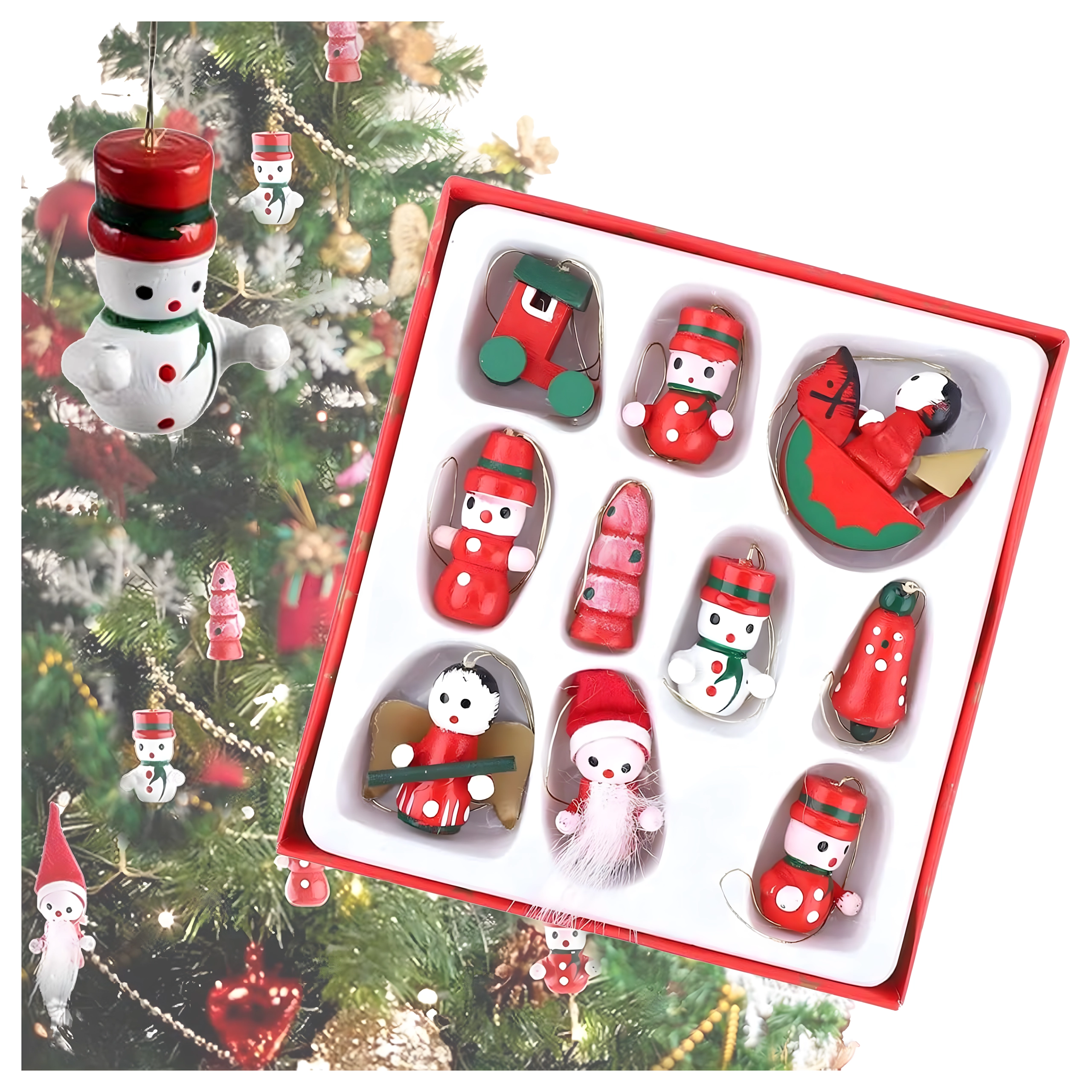 Leseni božični okraski za drevesce, viseče dekoracije – komplet 10 kosov
