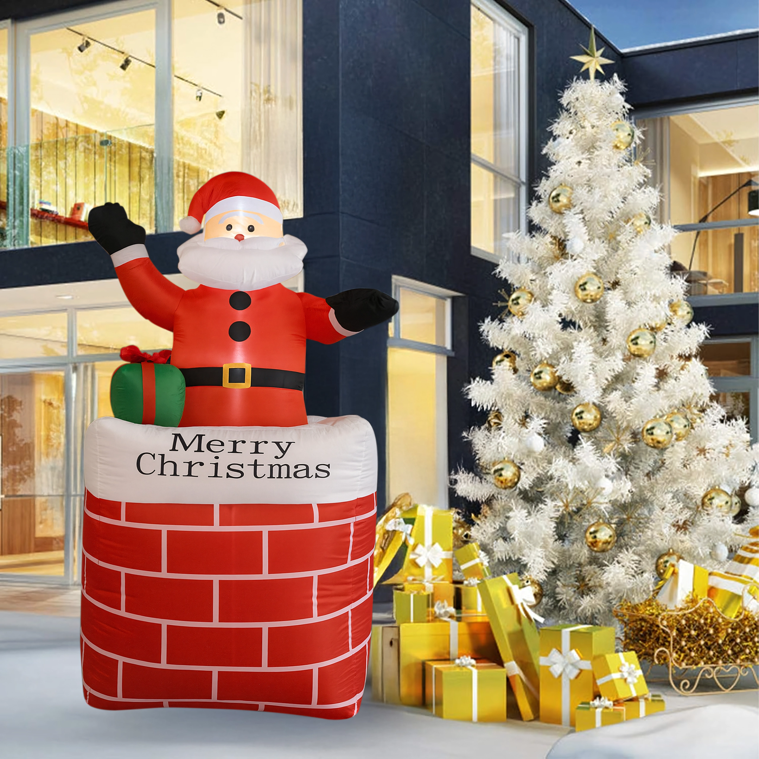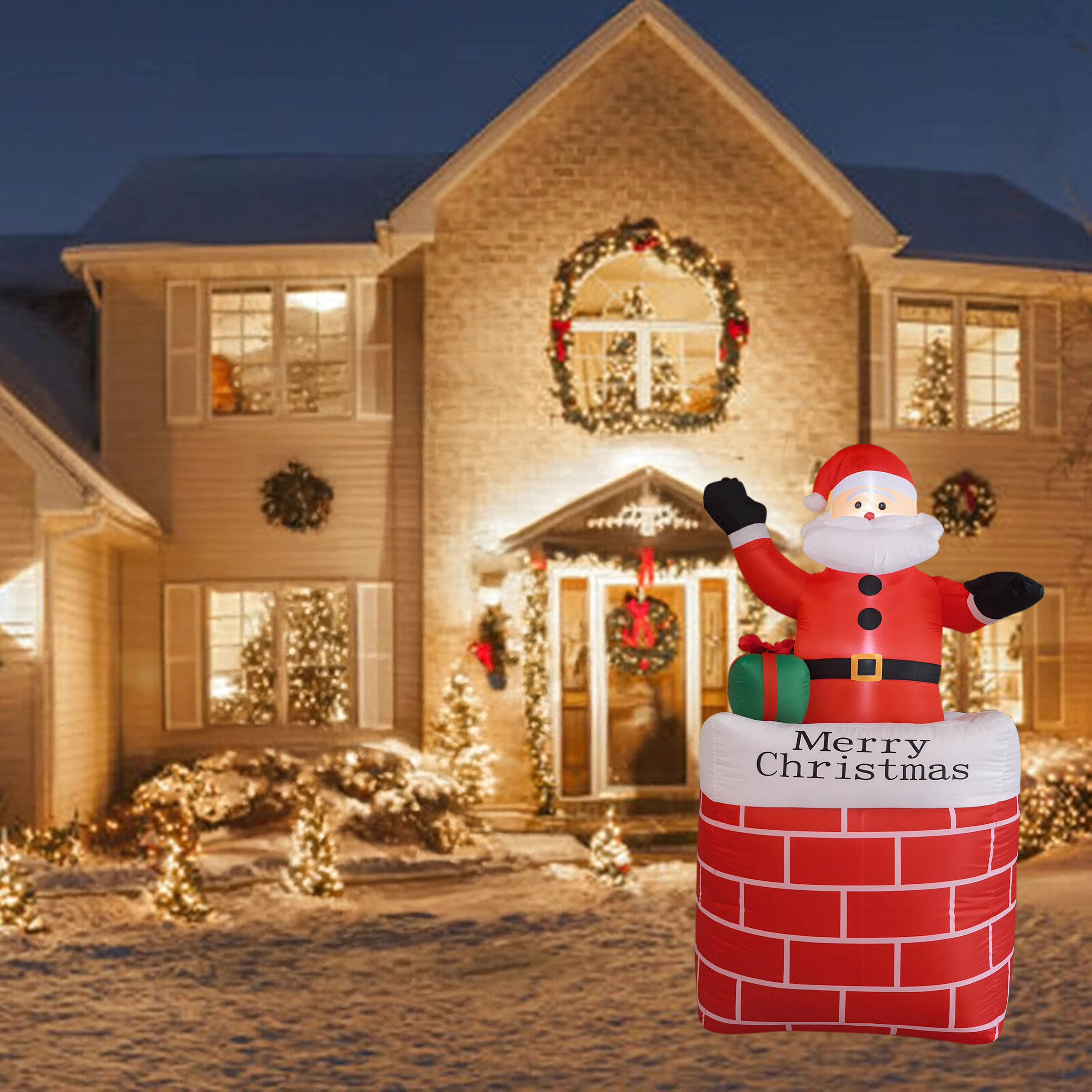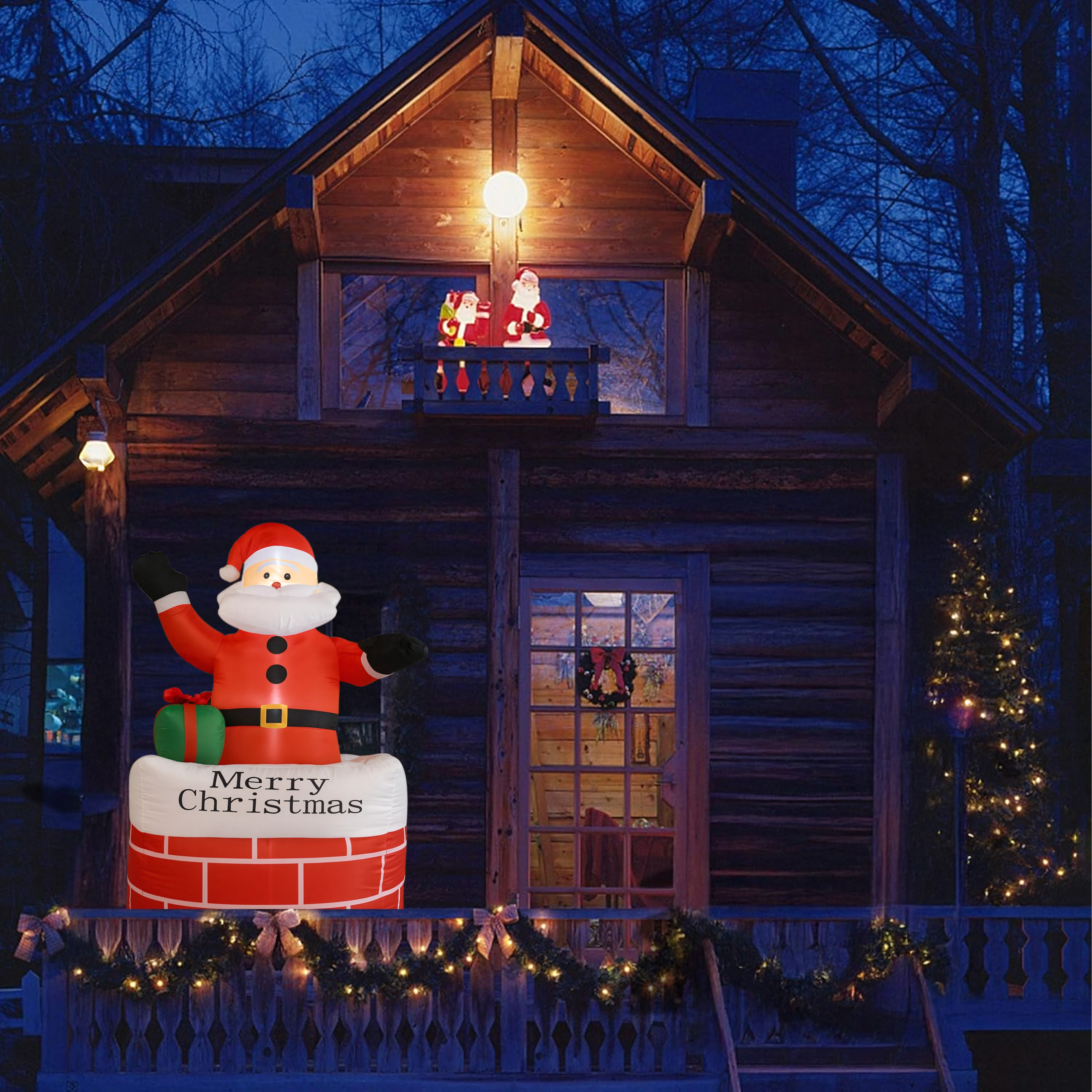 Ustvarite čarobno praznično vzdušje z dekoracijo napihljivi Božiček v dimniku v višini 150 cm. Zahvaljujoč vgrajeni LED osvetlitvi in samodejnemu napihovanju je ta okras učinkovit, varen in preprost za uporabo. Odlično se poda v dom, na vrt, v trgovino in na božične dogodke ter razveseli tako otroke kot odrasle.