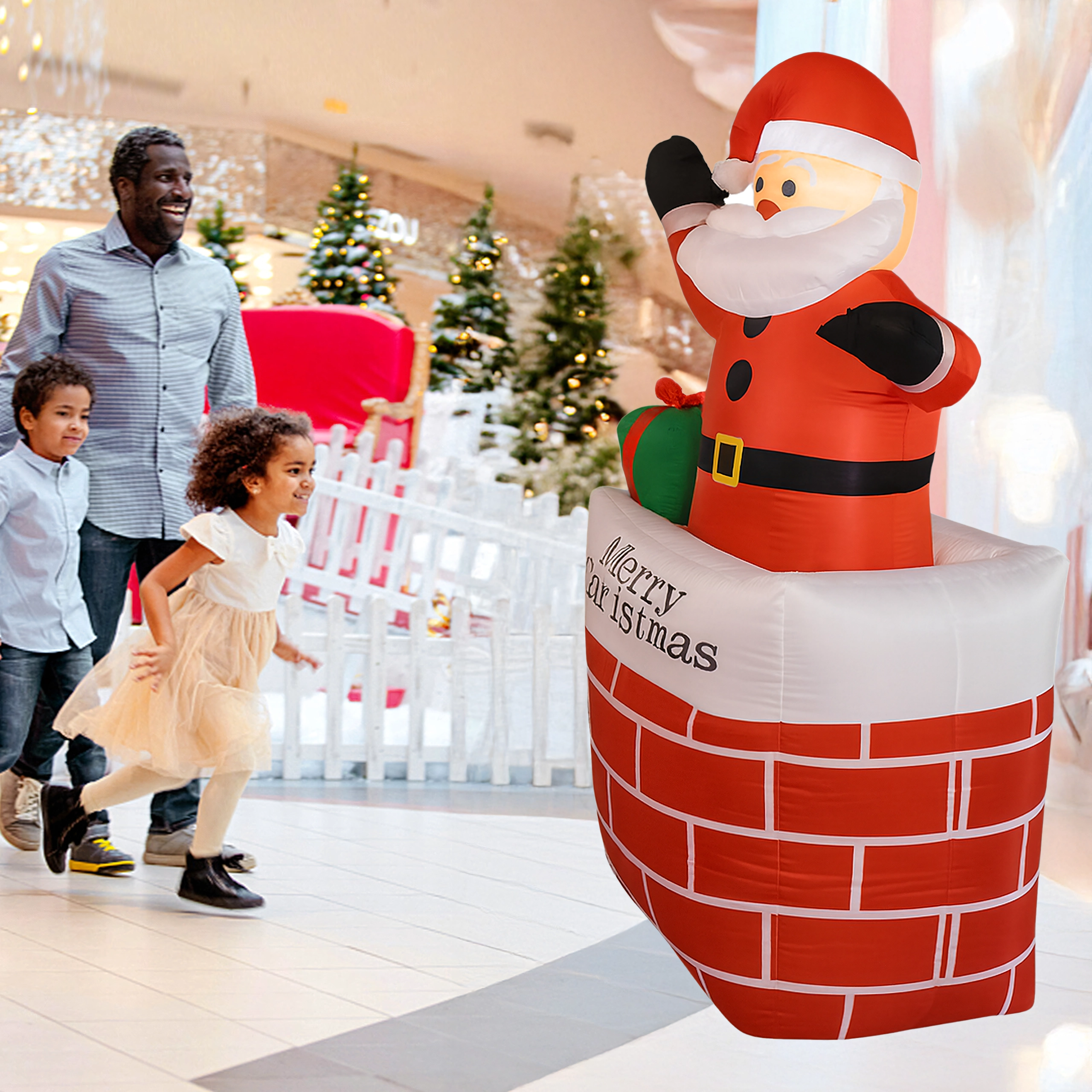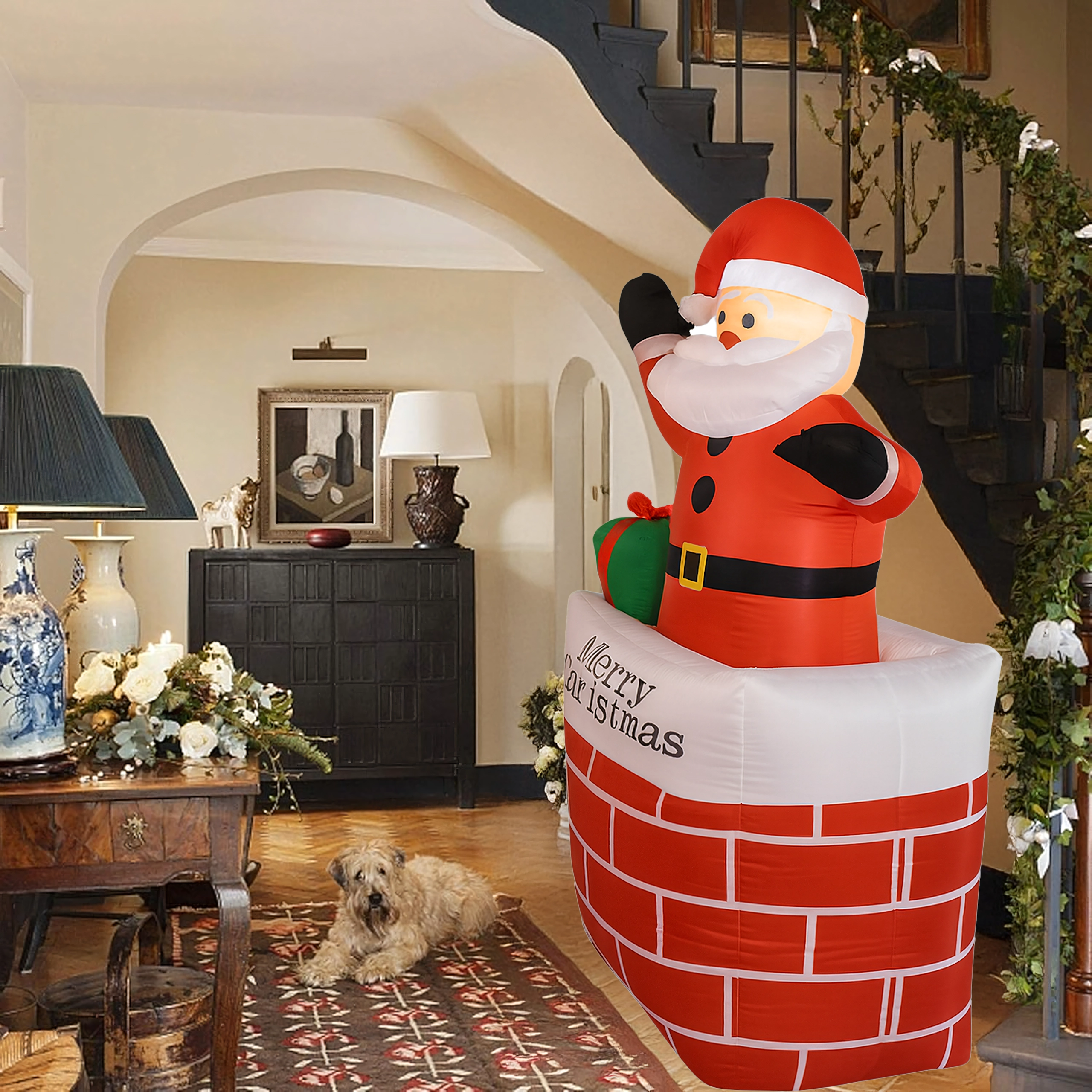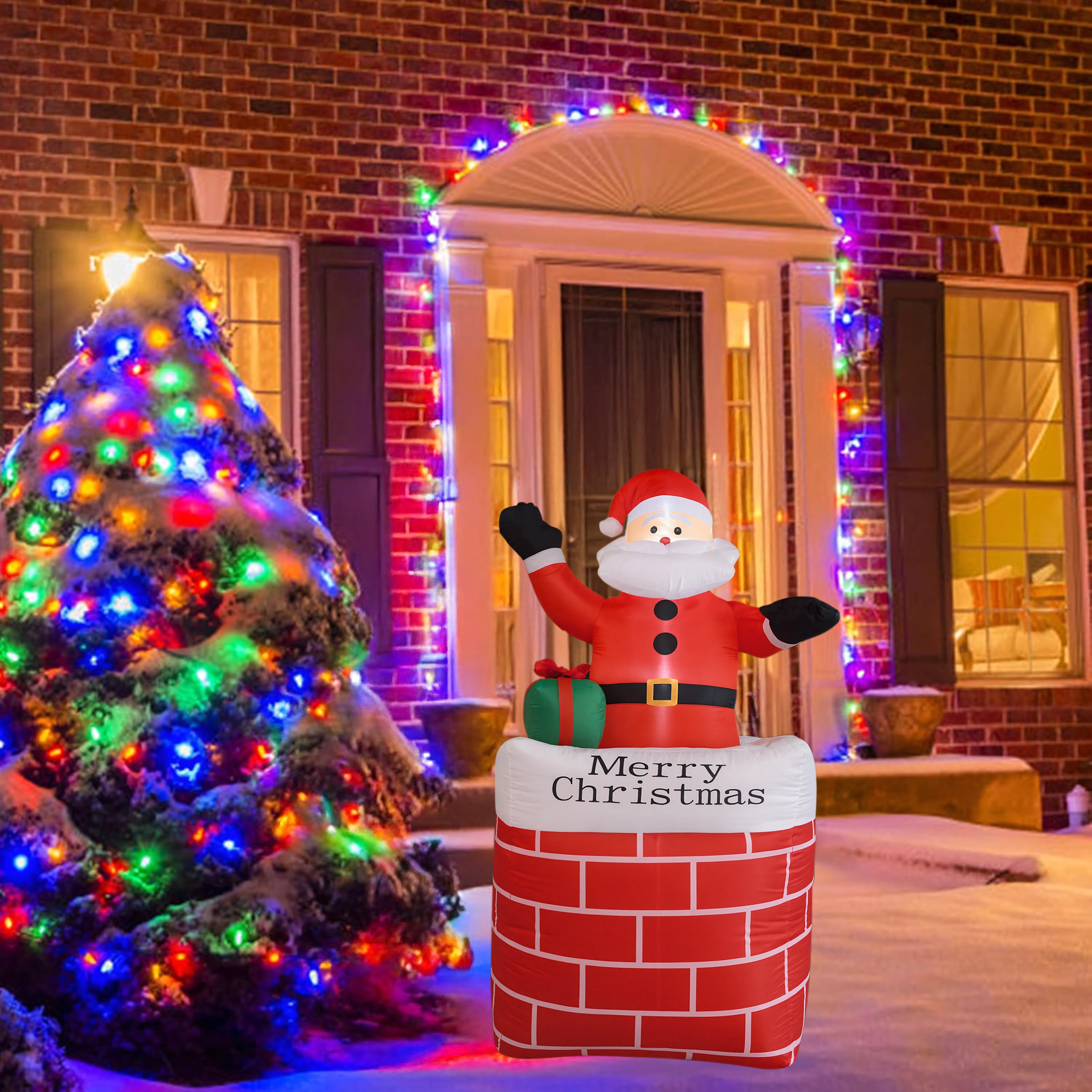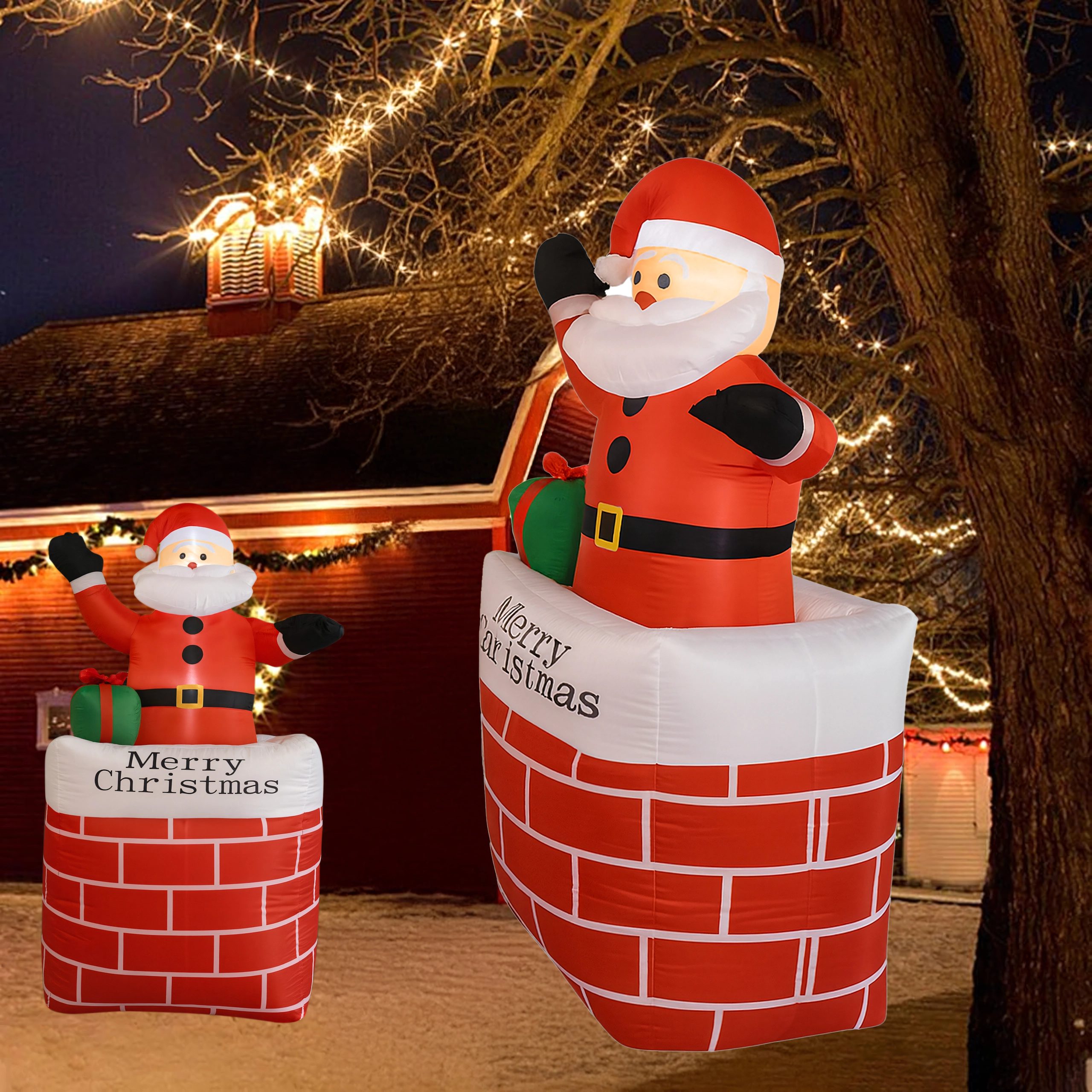 Ustvarite čarobno praznično vzdušje z dekoracijo napihljivi Božiček v dimniku v višini 150 cm. Zahvaljujoč vgrajeni LED osvetlitvi in samodejnemu napihovanju je ta okras učinkovit, varen in preprost za uporabo. Odlično se poda v dom, na vrt, v trgovino in na božične dogodke ter razveseli tako otroke kot odrasle.