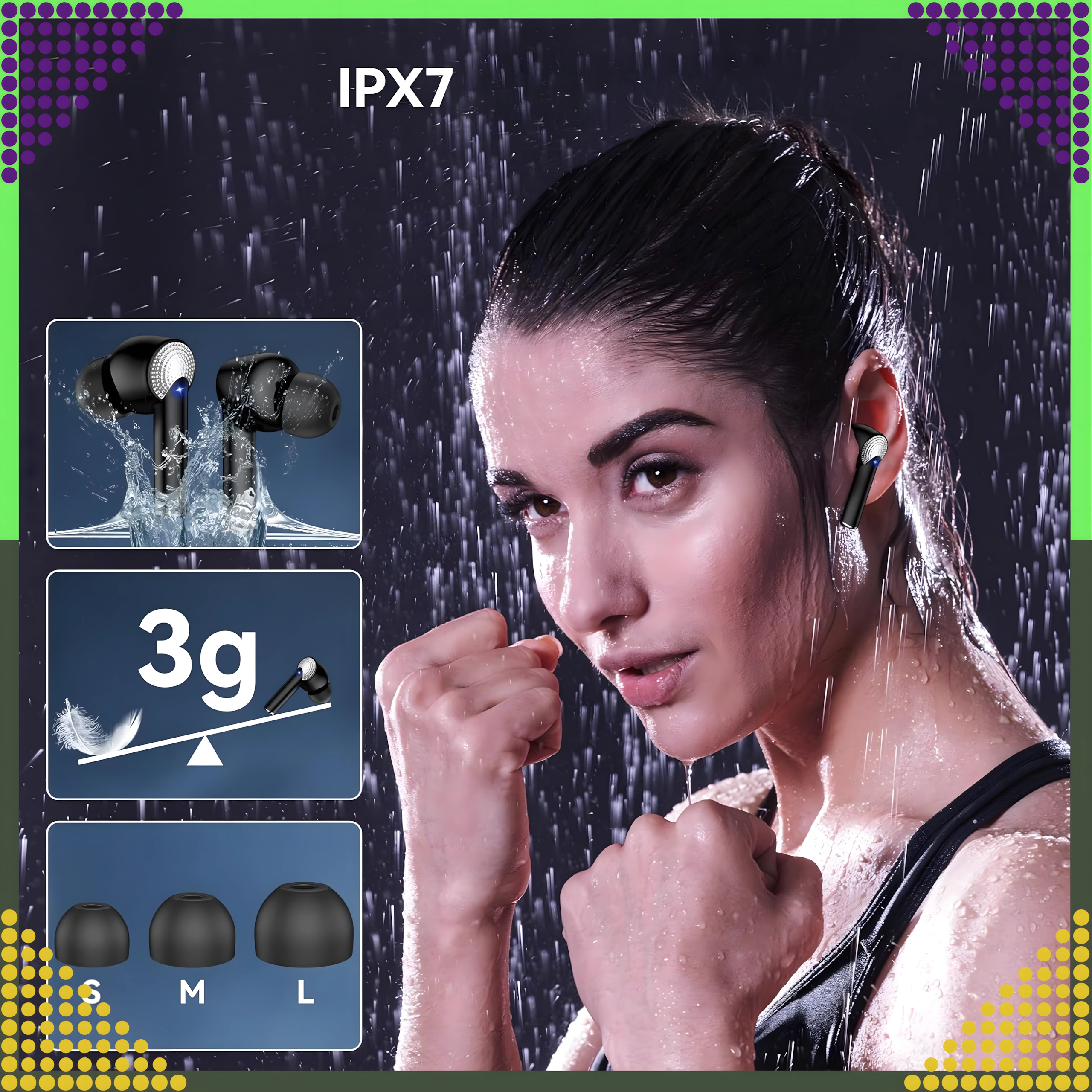 - Športna zasnova odporna na znoj in dež (IPX7).