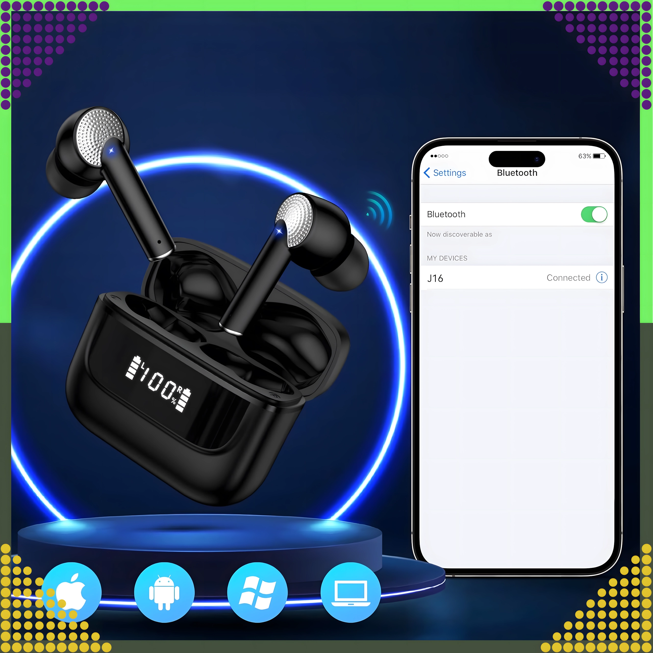 Uživajte v svobodi gibanja s športnimi brezžičnimi slušalkami s tehnologijo Bluetooth 5.3 + EDR, napredno ENC odpravo šumov in vodoodpornostjo IPX7. Stabilna povezava, hiter odziv, čisti klici ter priročno polnilno ohišje z LED zaslonom za nadzor stanja baterije – idealno za tek, fitnes in vsakodnevno poslušanje.