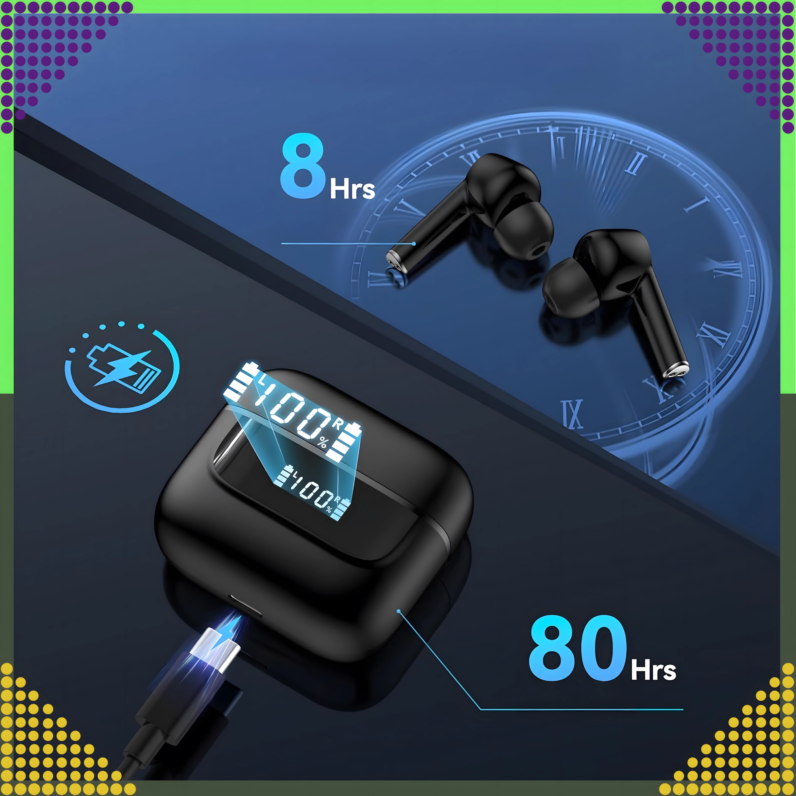 Te vrhunske brezžične ušesne slušalke ponujajo zanesljivo in hitro povezavo zahvaljujoč Bluetooth 5.3 + EDR, zato glasba in klici potekajo gladko in brez prekinitev do razdalje pribl. 15 metrov. Vgrajeni mikrofon z ENC odpravo šumov zagotavlja jasne prostoročne klice tudi v hrupnem okolju.