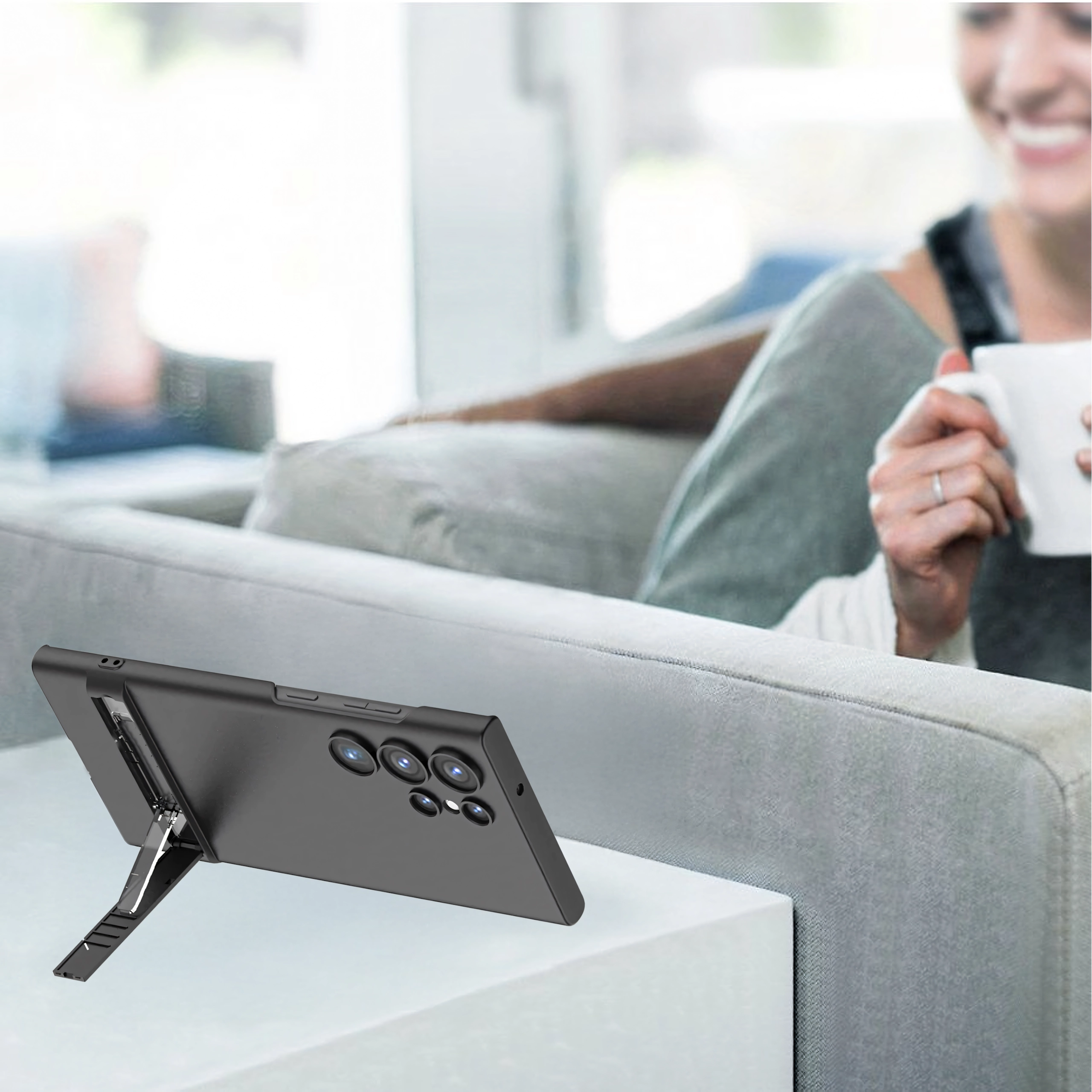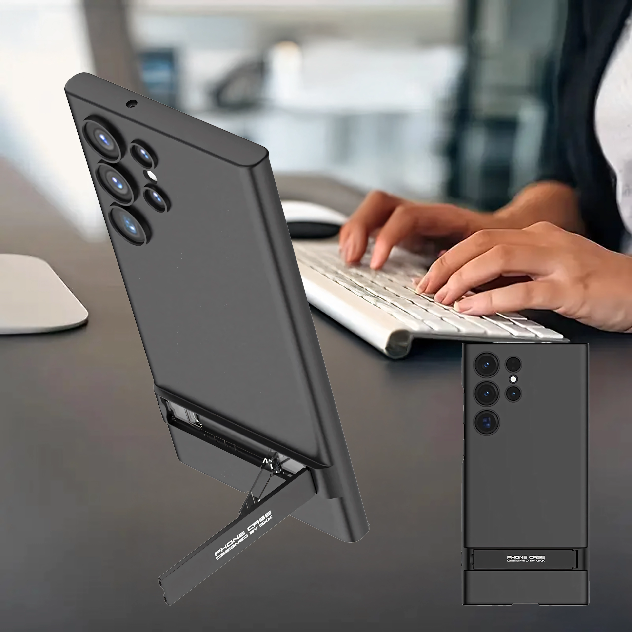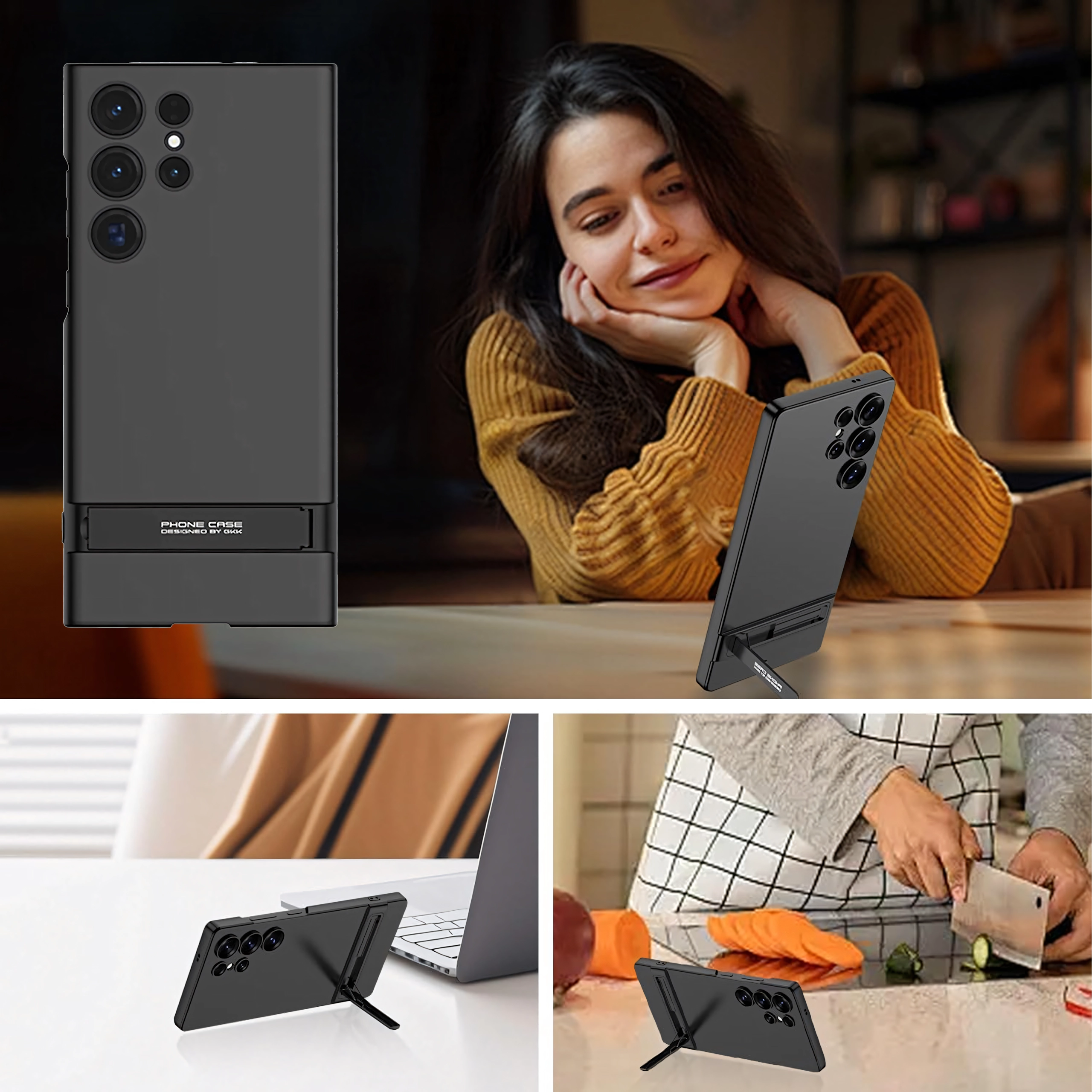 Vgrajeno stojalo omogoča udobno gledanje vsebin v ležečem in pokončnem načinu, idealno za filme, igre ali video klice. Natančni izrezi zagotavljajo lahek dostop do vseh priključkov in gumbov, zato lahko telefon uporabljate brez omejitev.