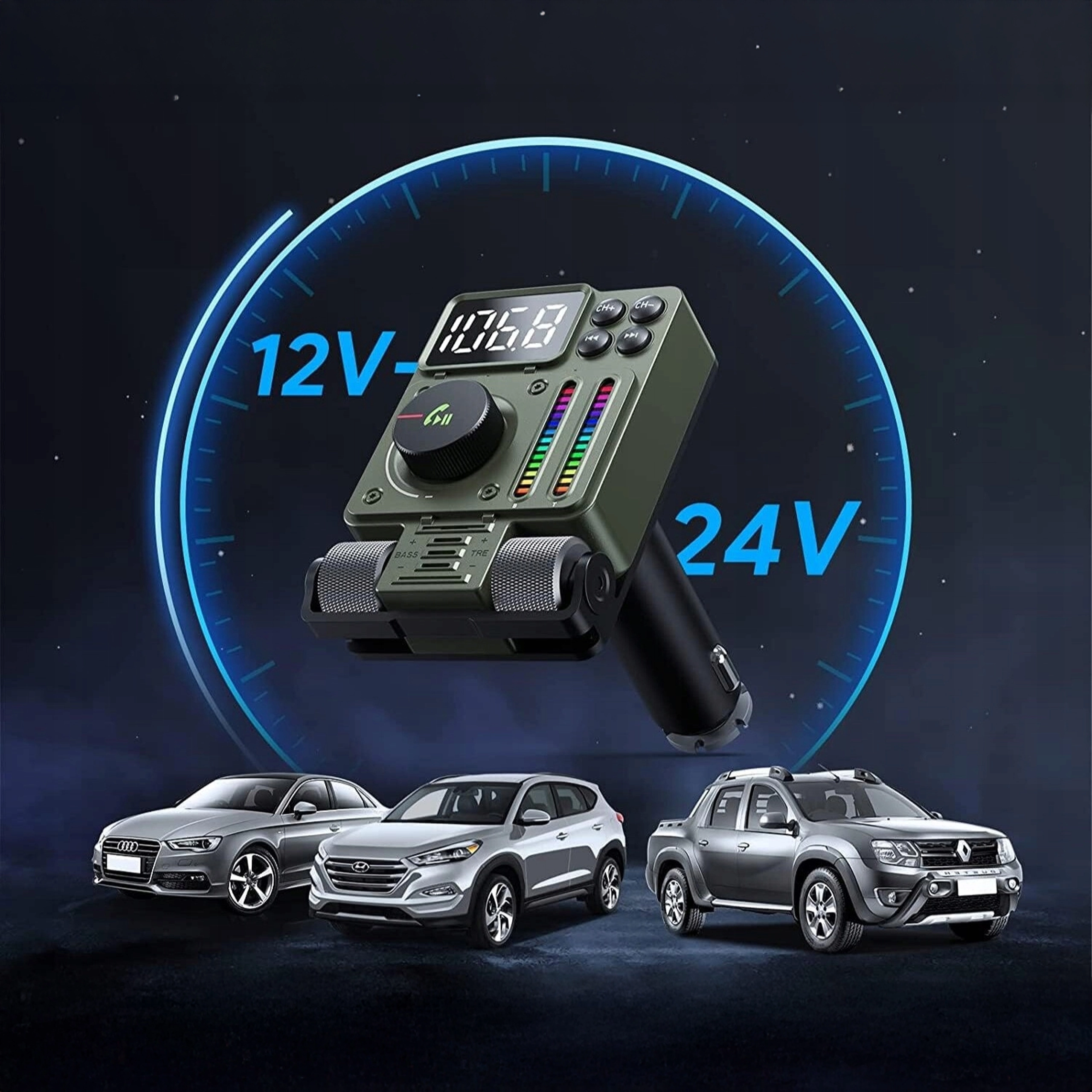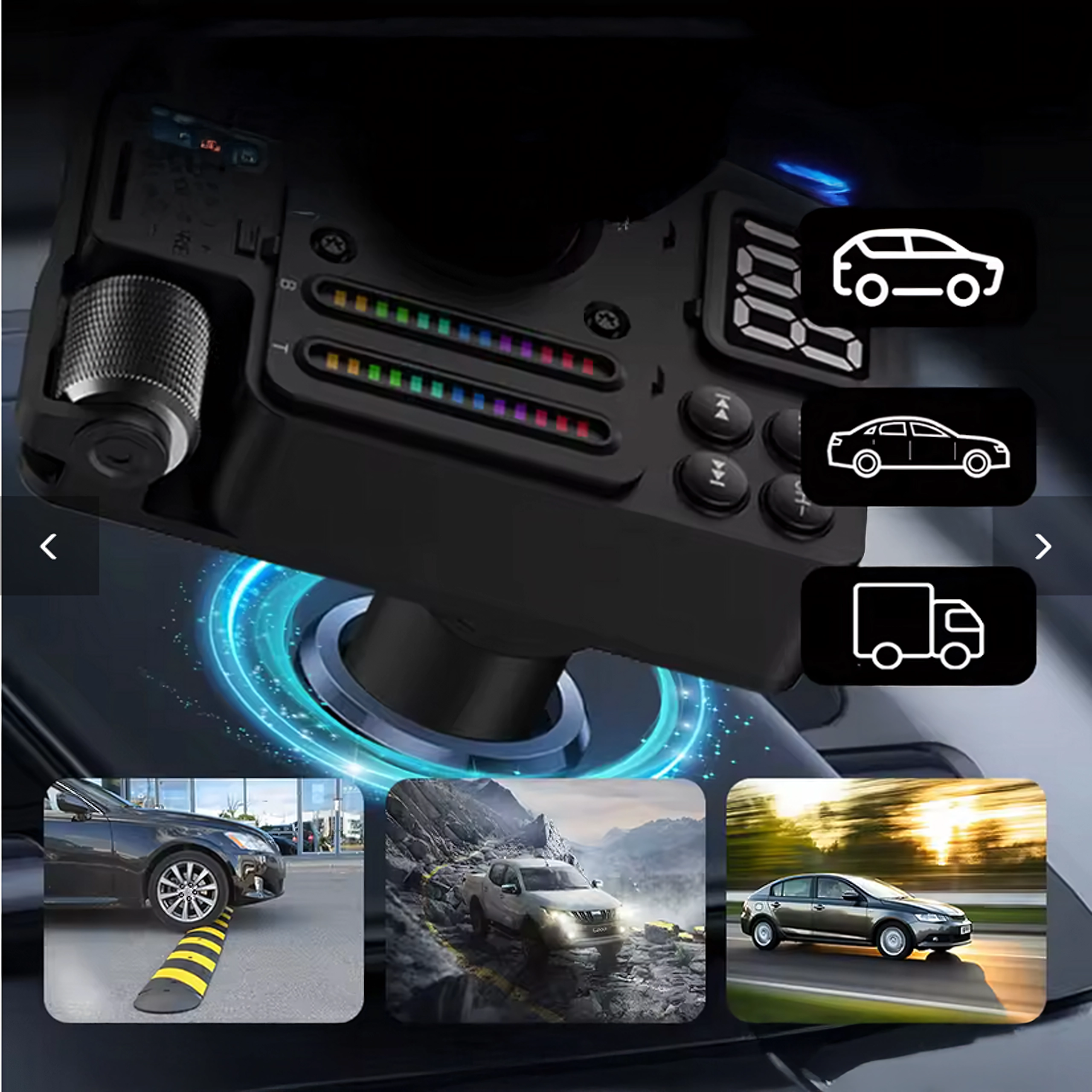 Stilska LED osvetlitev izboljša orientacijo v temi in doda notranjosti moderen videz. Upravljanje je intuitivno – enostavno preklapljanje postaj, skladb in sprejemanje klicev z enim gumbom.