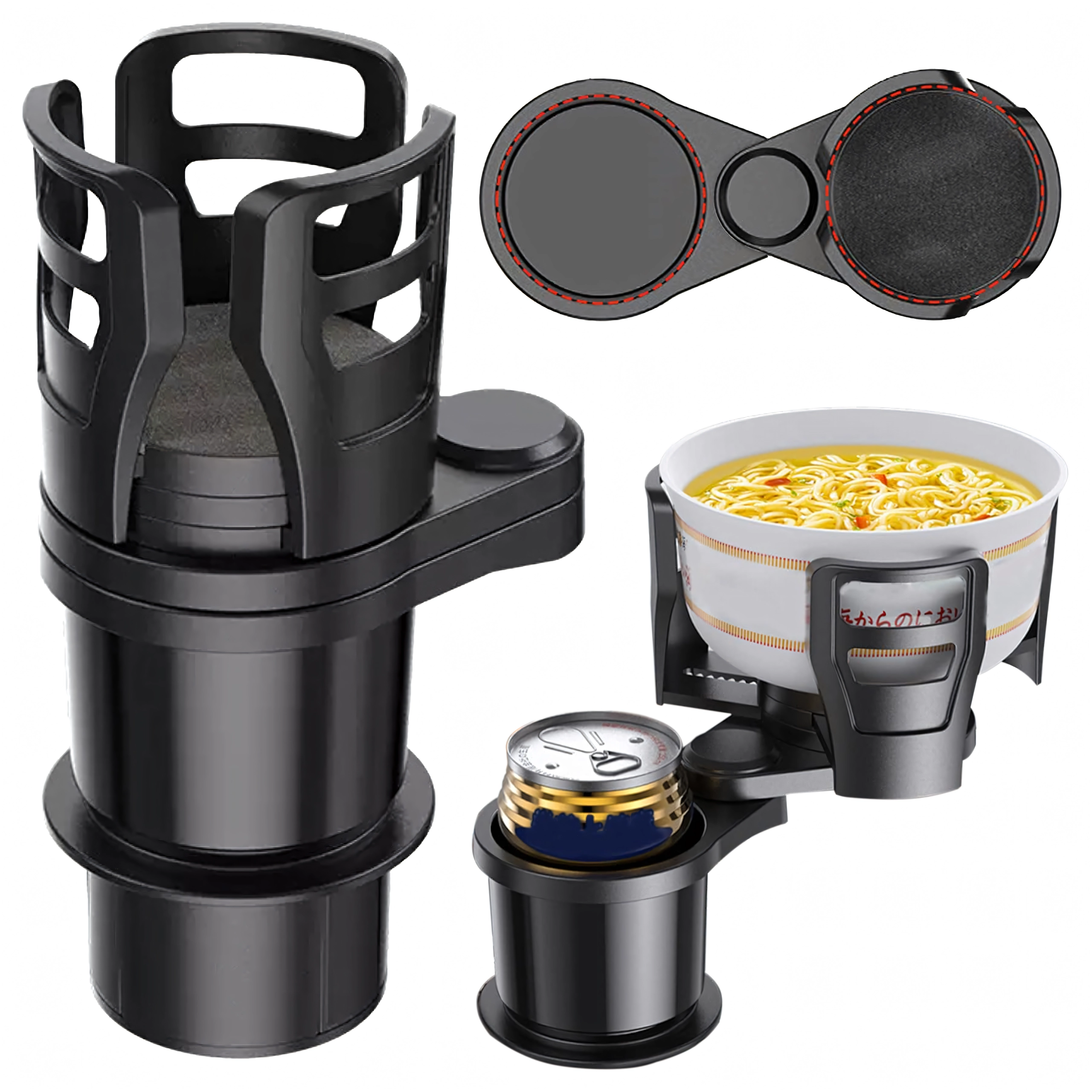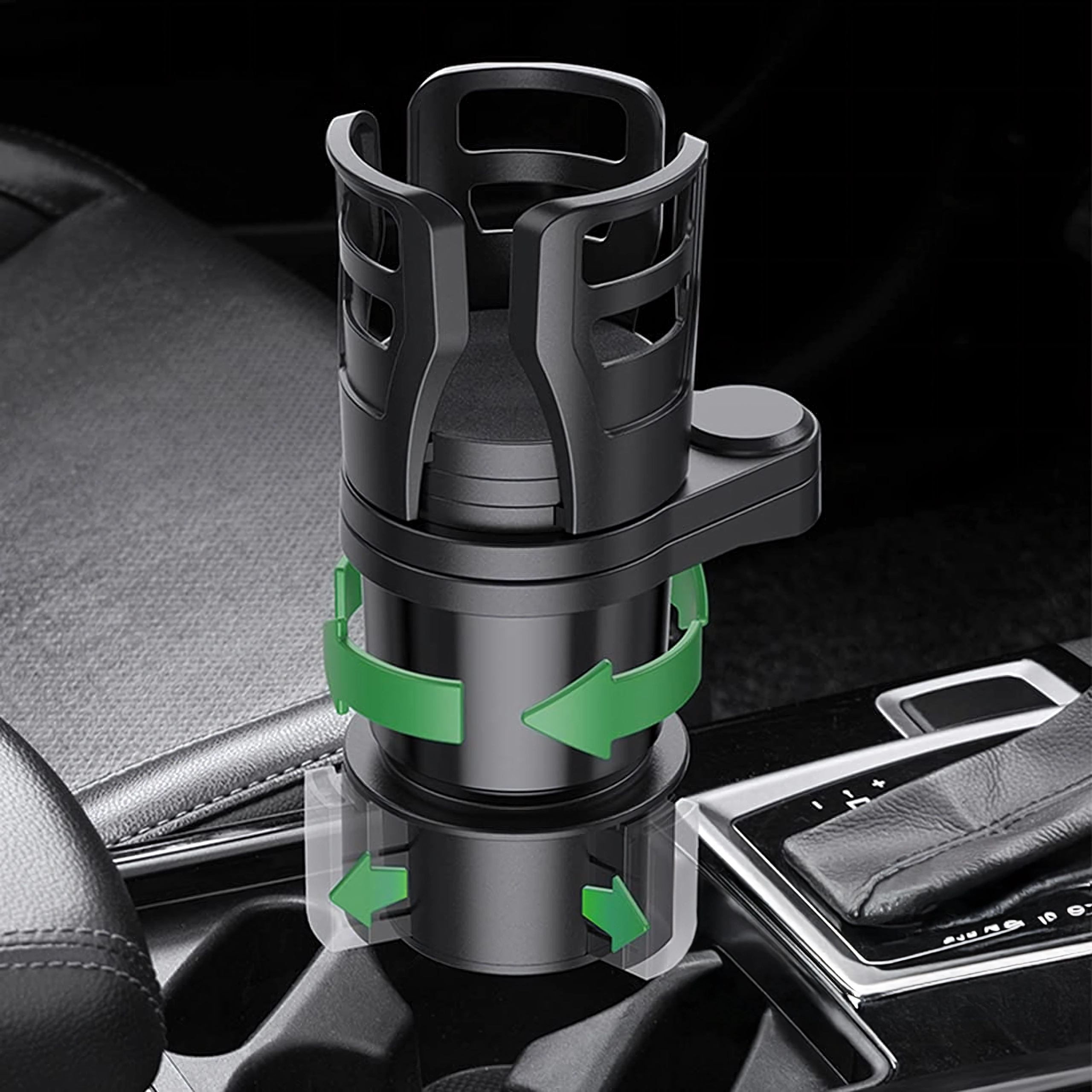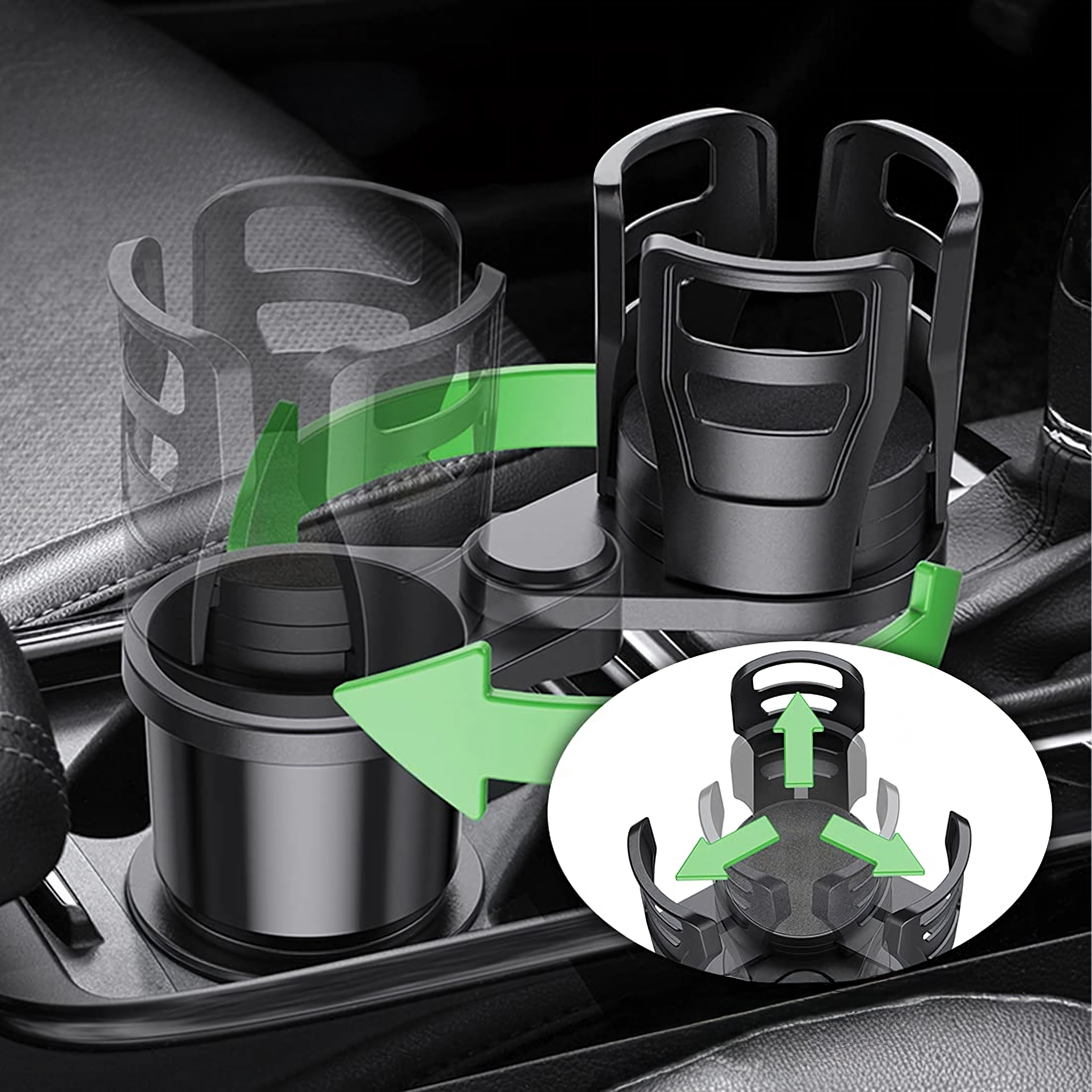 Ohranite red in udobje v vozilu s pametnim 2v1 držalom. Glavni prostor z nastavitvijo premera sprejme različne vrste lončkov in steklenic, medtem ko je manjše dodatno držalo idealno za pločevinke, kavo ali manjše stekleničke. 360° vrtljivi mehanizem omogoča enostavno obračanje za voznika in sovoznika.