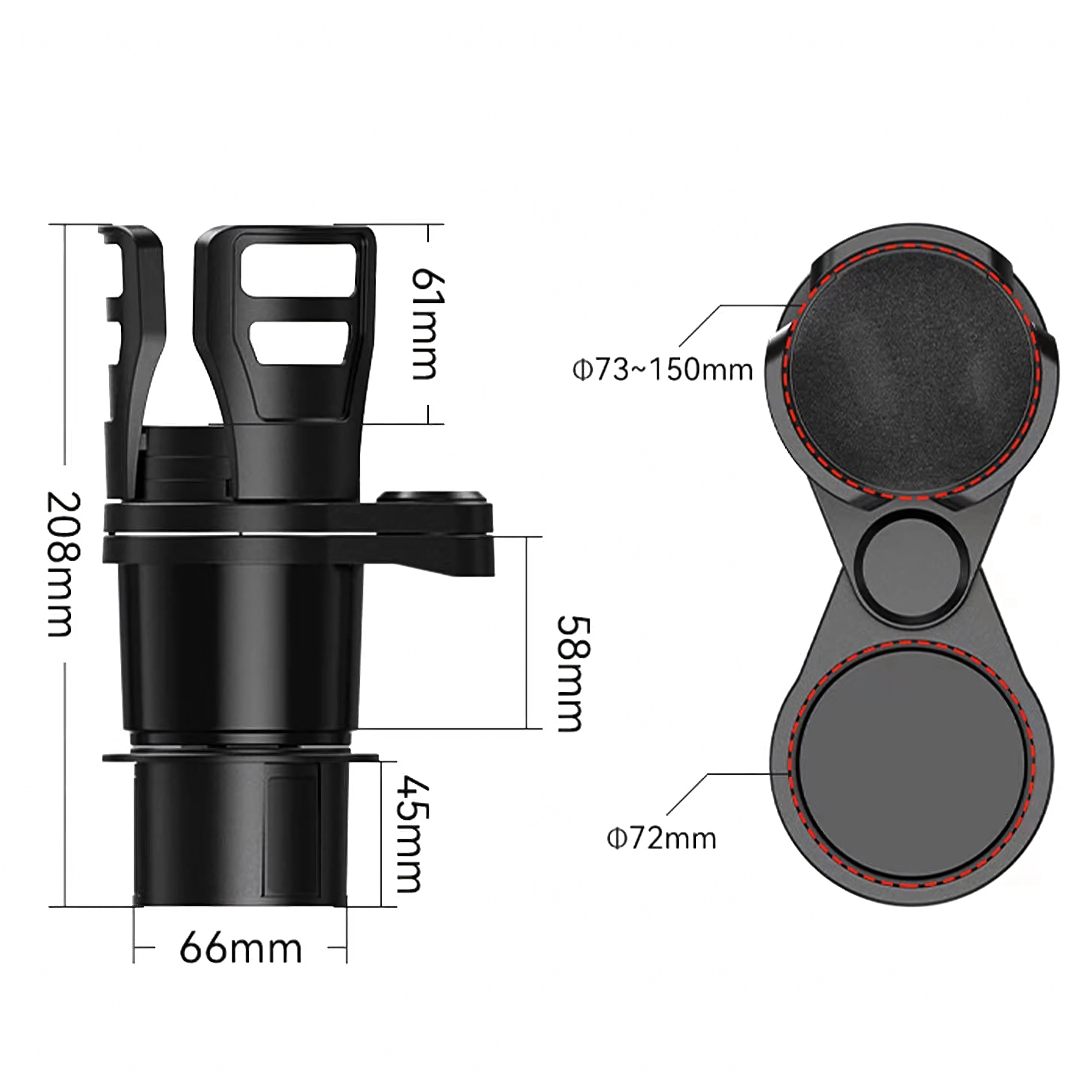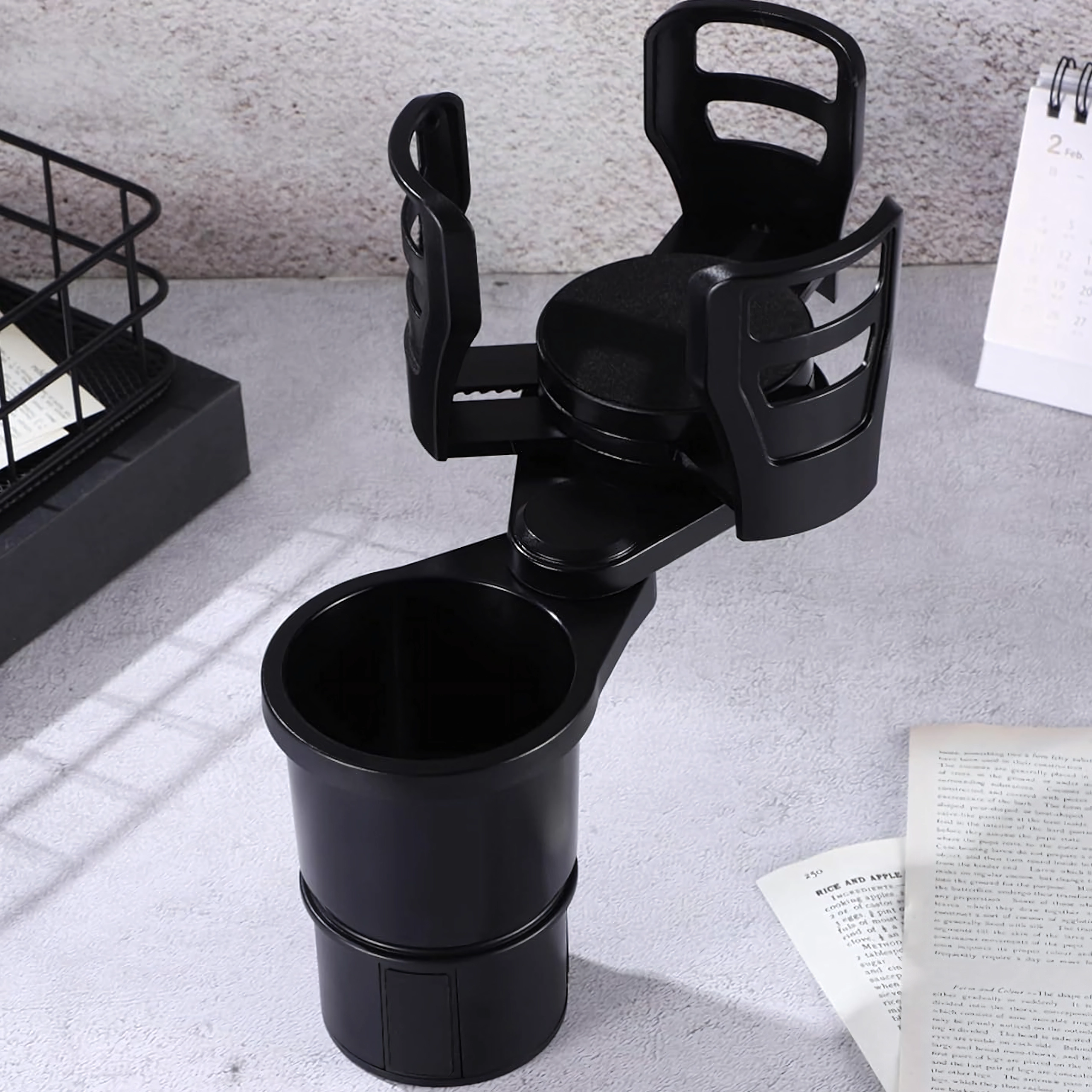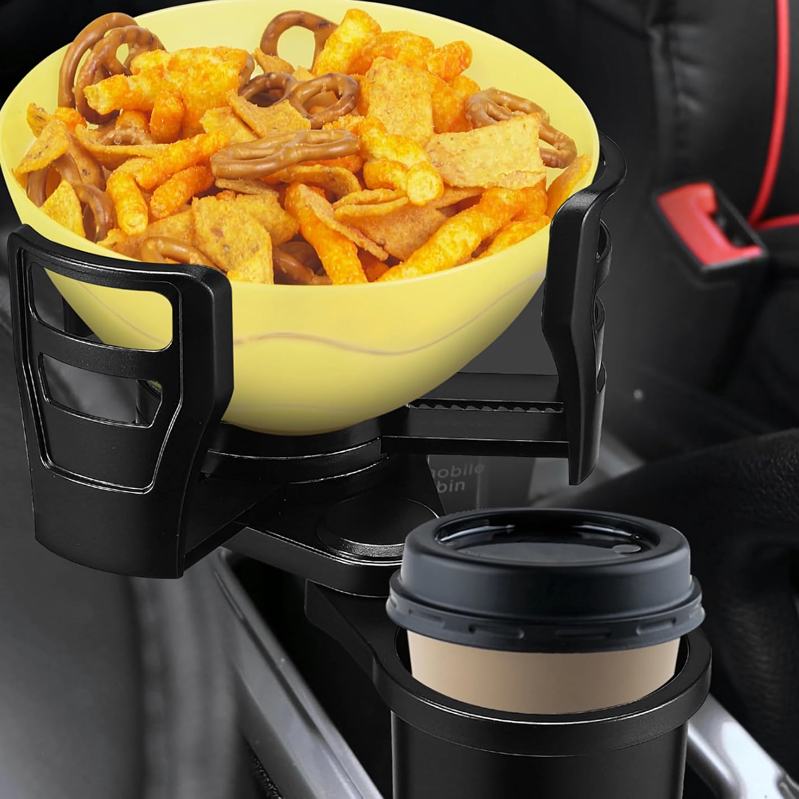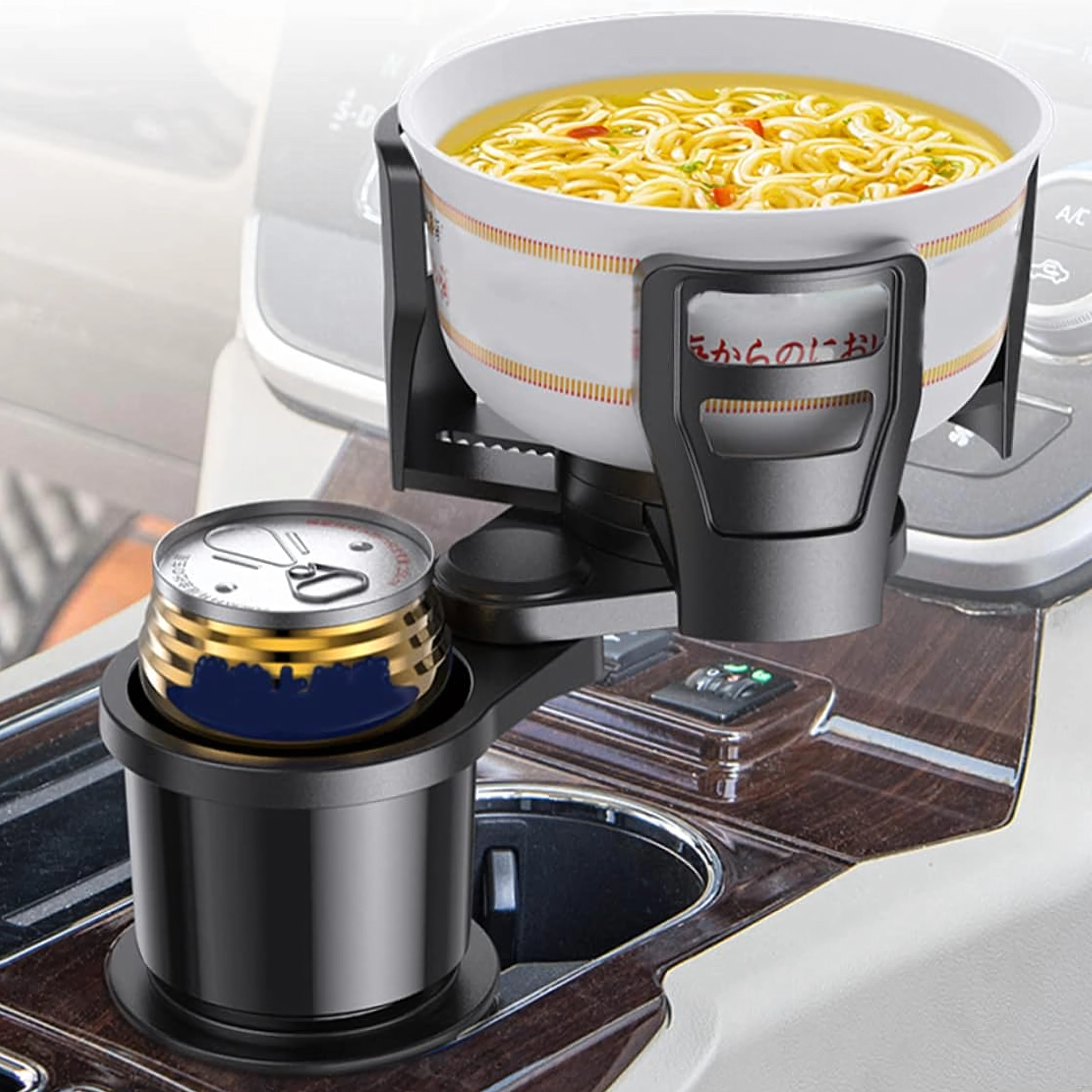 Ohranite red in udobje v vozilu s pametnim 2v1 držalom. Glavni prostor z nastavitvijo premera sprejme različne vrste lončkov in steklenic, medtem ko je manjše dodatno držalo idealno za pločevinke, kavo ali manjše stekleničke. 360° vrtljivi mehanizem omogoča enostavno obračanje za voznika in sovoznika.
