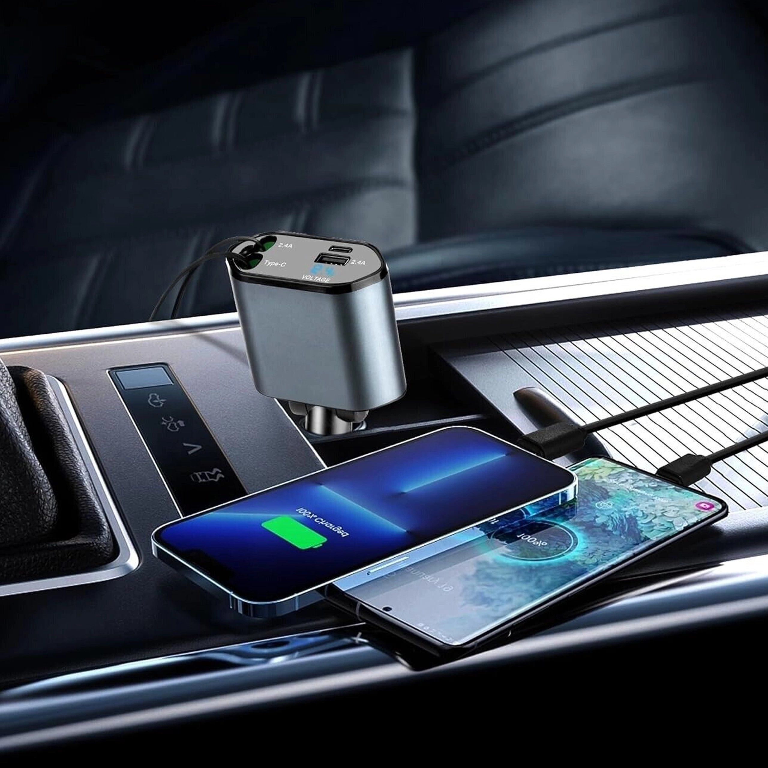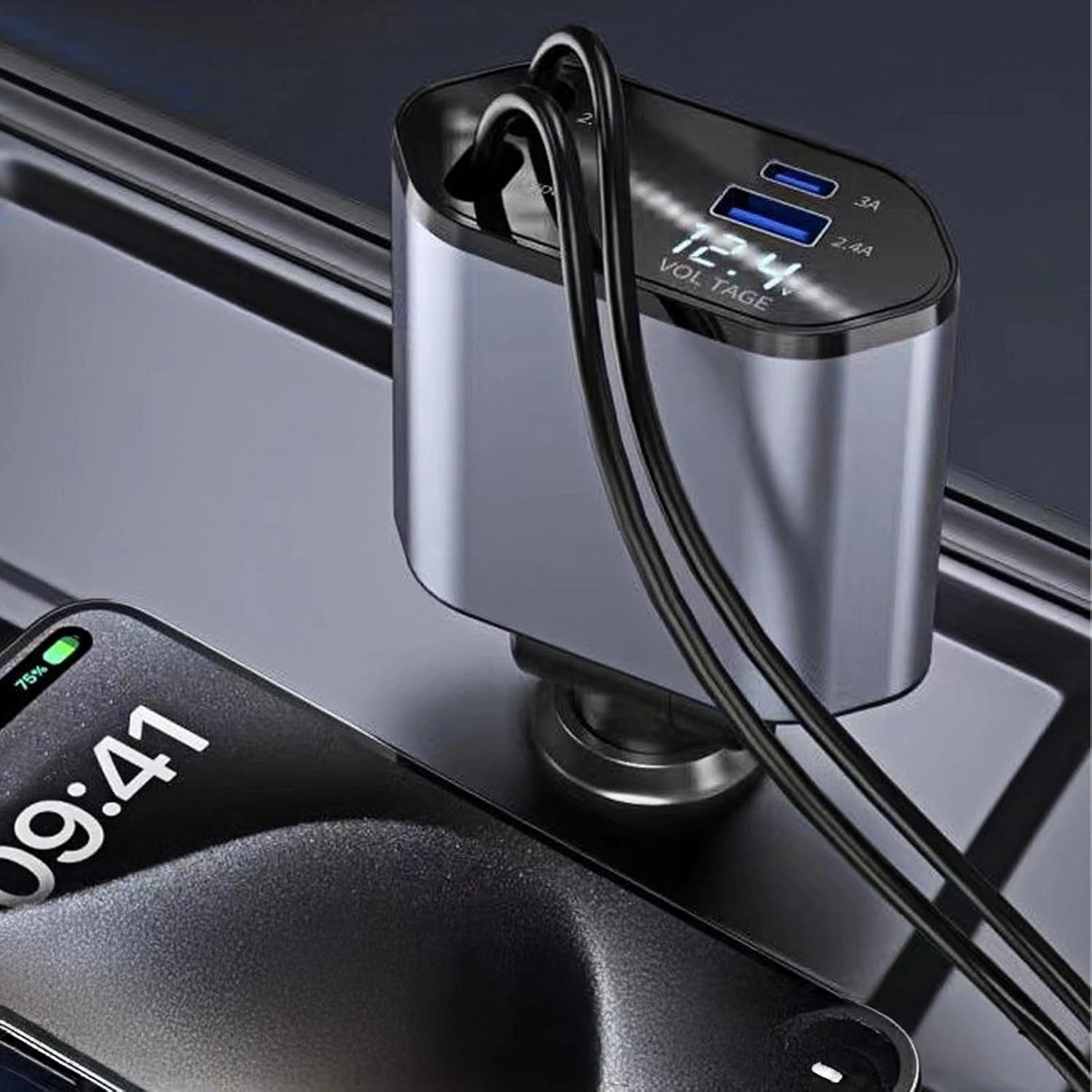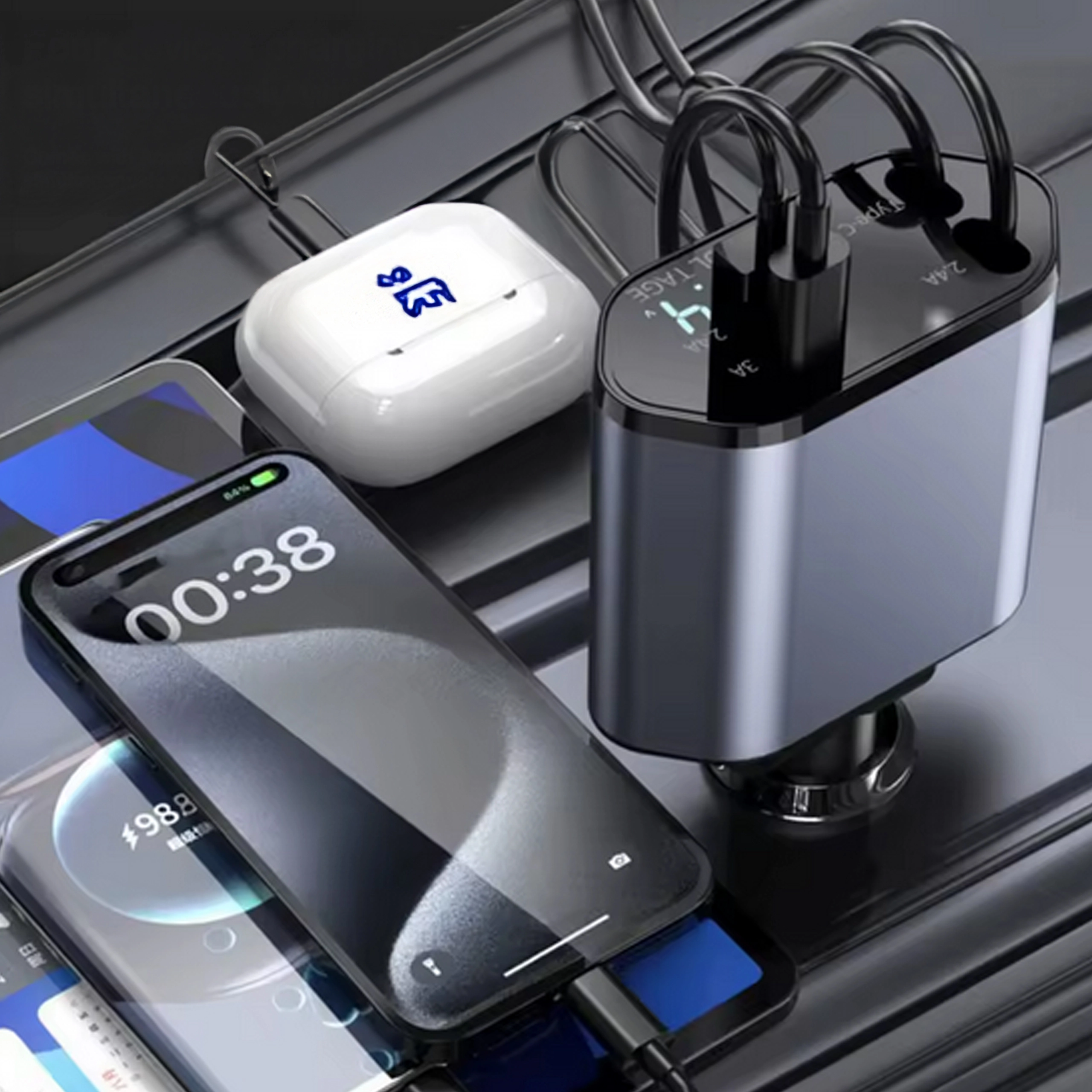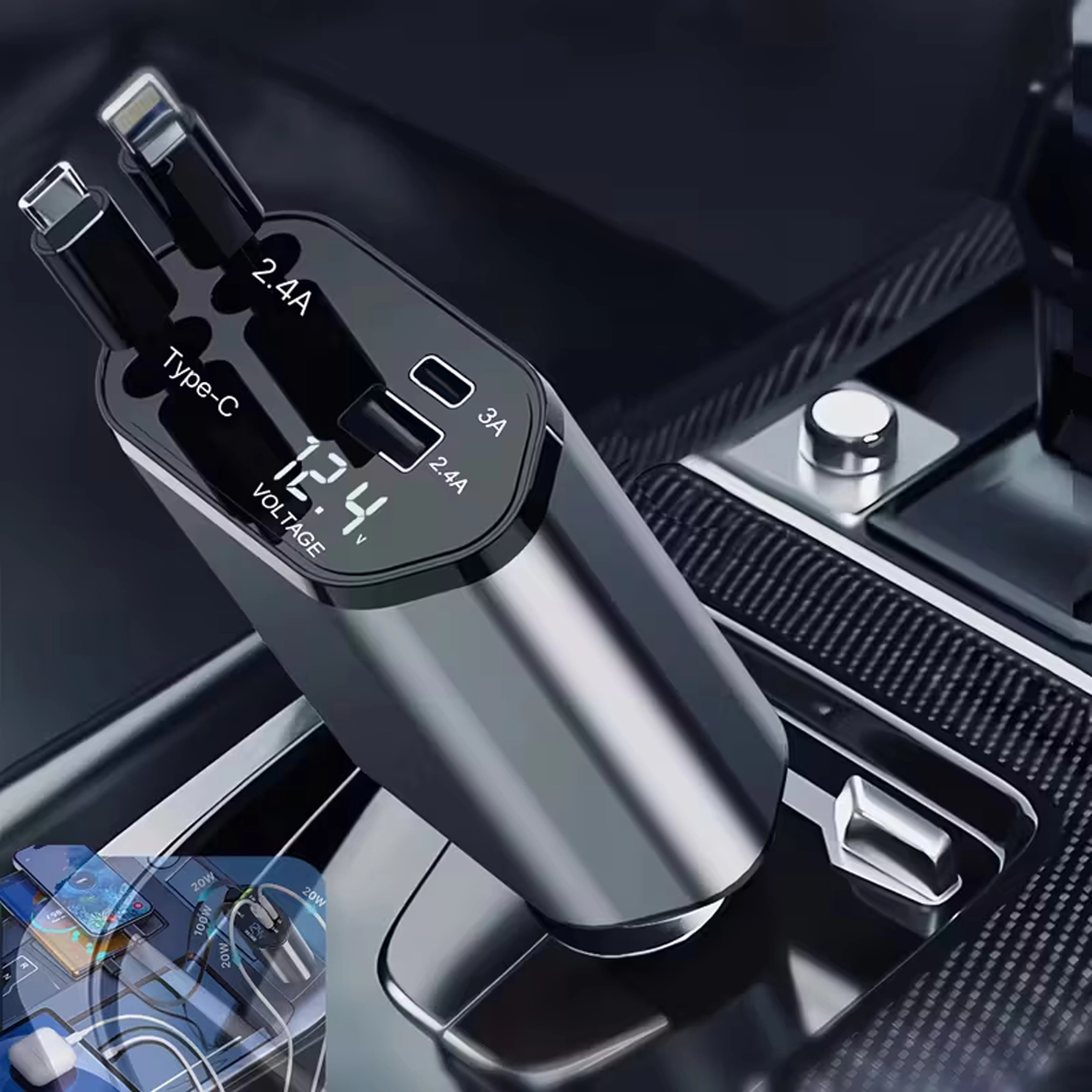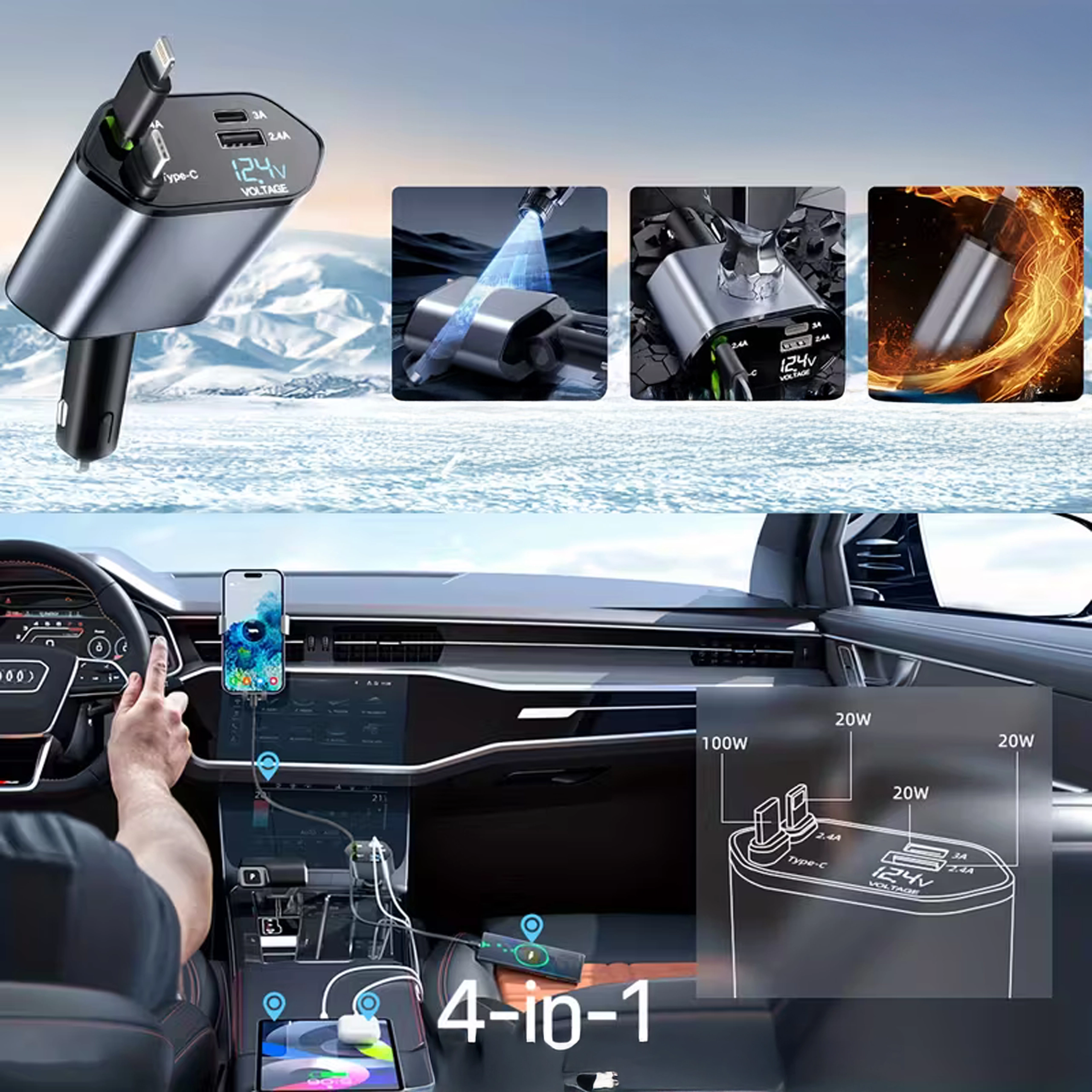 Ta sodoben avtopolnilec 4v1 združuje visoko zmogljivost in praktičnost. Hitro polnjenje 100 W zagotavlja energijo tudi za zahtevnejše naprave, medtem ko inteligentni čip ščiti pred prenapetostjo, pregrevanjem in kratkim stikom. Z navijalnimi kabli ohranite notranjost vozila urejeno, kabli pa so vedno v idealni dolžini.