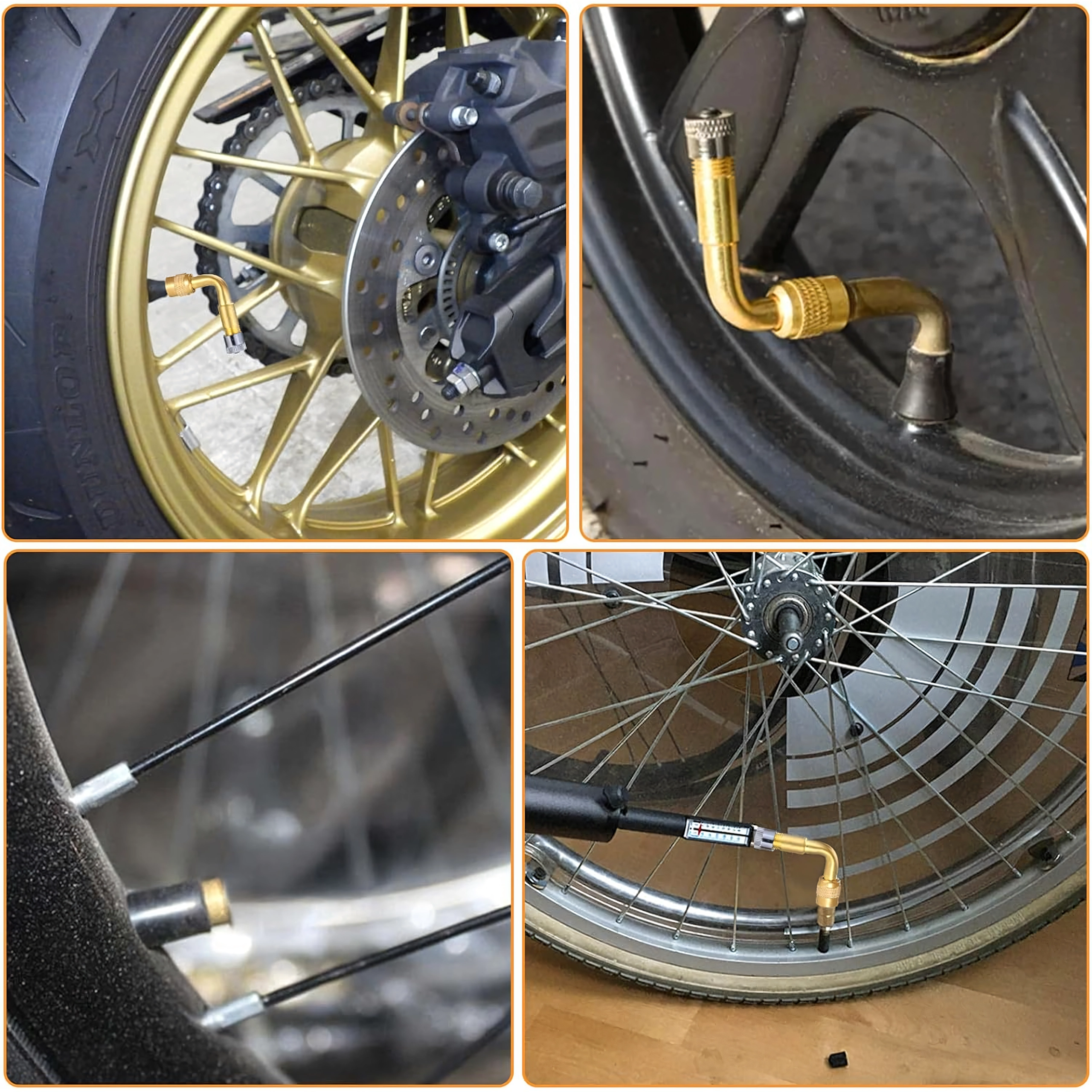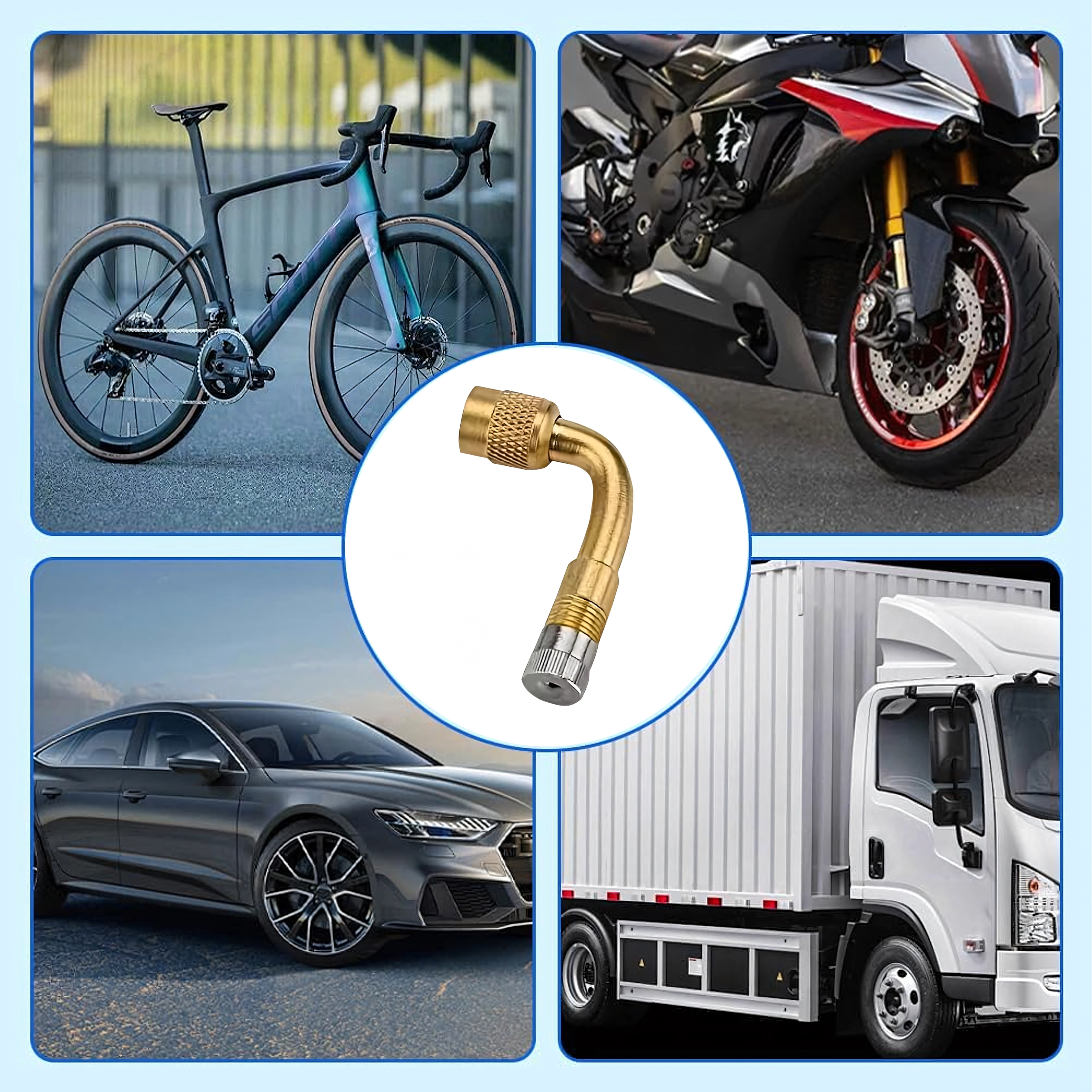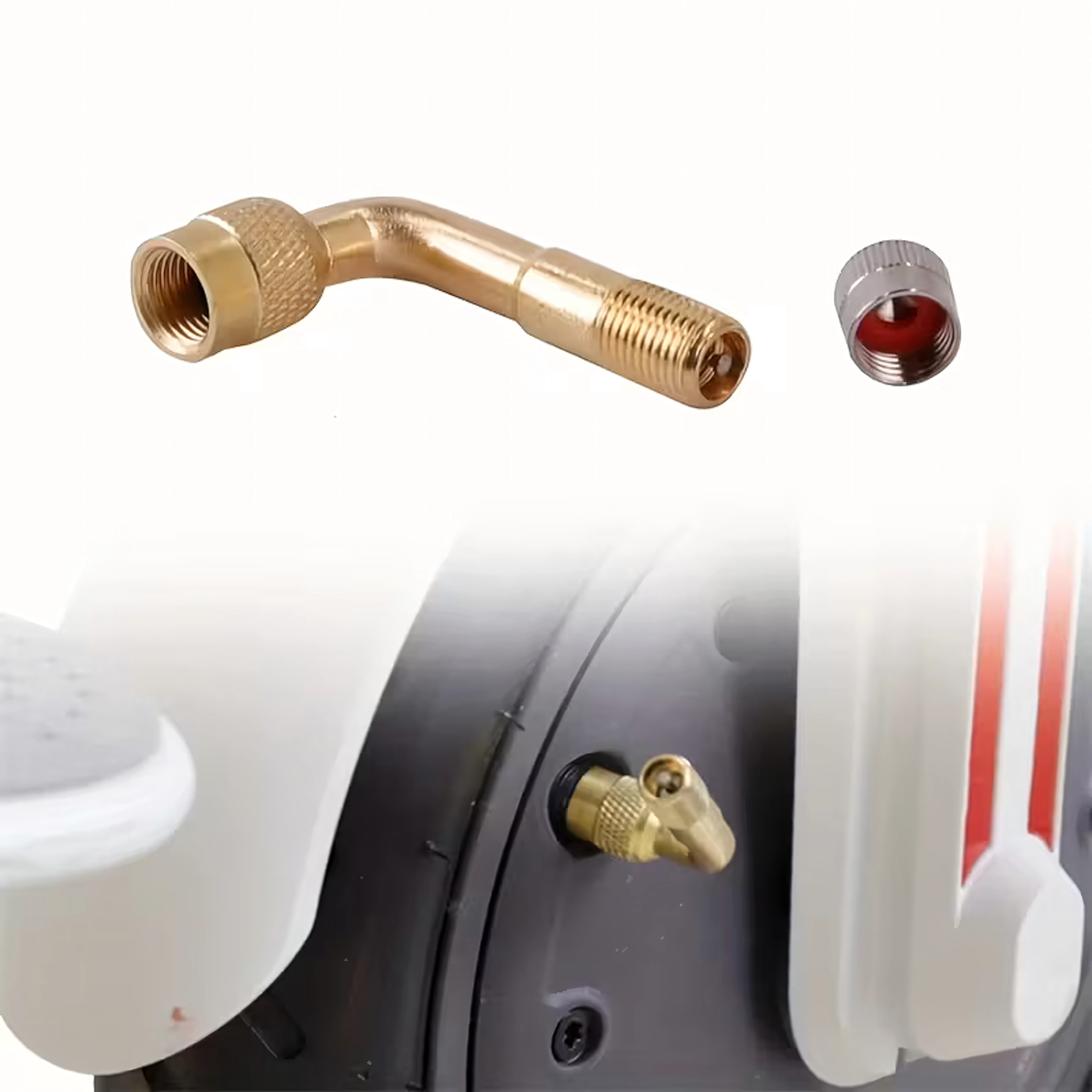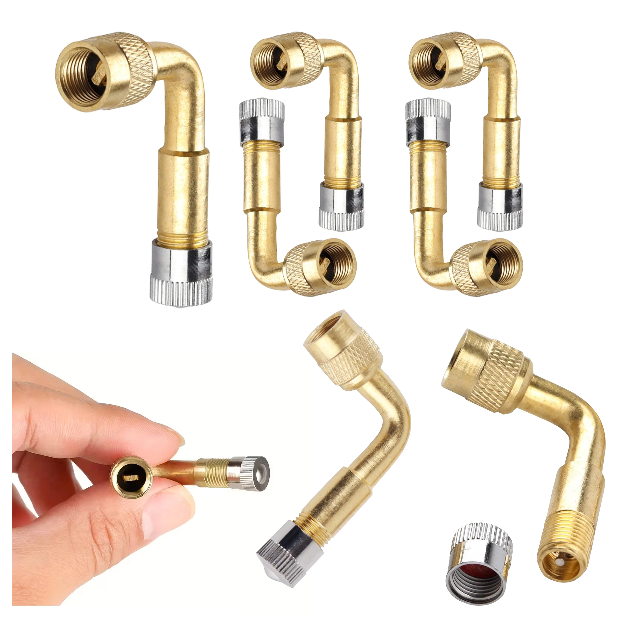 Praktičen in trpežen kovinski podaljšek ventila s kotom 90° za lahek dostop do težje dostopnih ventilov. Idealen za preverjanje tlaka in polnjenje pnevmatik pri dostavnih vozilih, tovornih vozilih, avtobusih ter kolesih in motornih kolesih. Pakiranje vsebuje 100 kosov.
