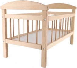 Lesena posteljica za punčke je idealna igrača za razvoj otroške domišljije in skrb za njihove igrače. S čudovitim naravnim dizajnom in robustno konstrukcijo iz kakovostnega lesa ponuja varnost in stabilnost.